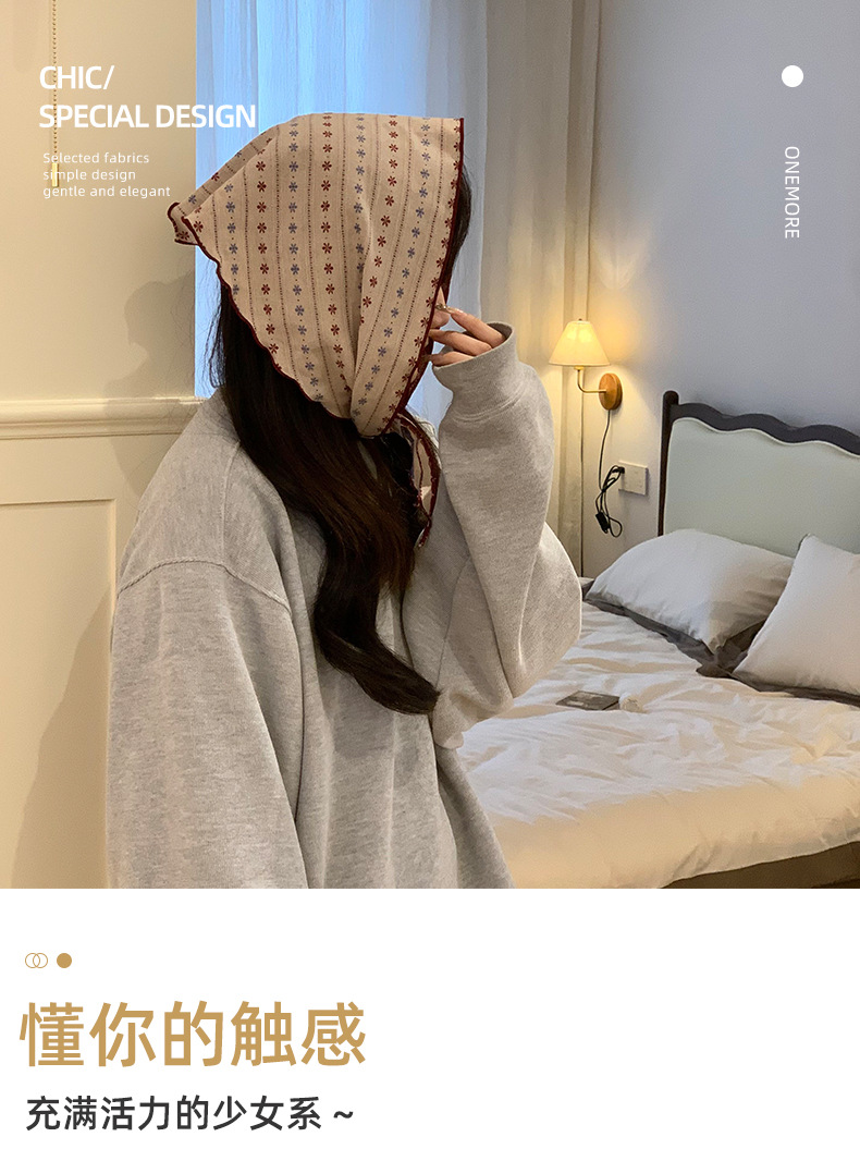 Bufandas triangulares mujeres primavera y verano nuevo estilo japonés y coreano estilo retro bufandas de moda universal bufandas pastorales bufandas de seda correa de pelo