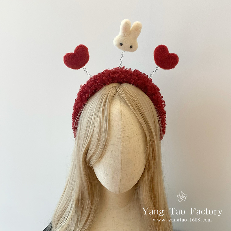 Año Nuevo serie de conejo de peluche rojo conejo de peluche anillo de cabello de dibujos animados casero tocado estrella Liu