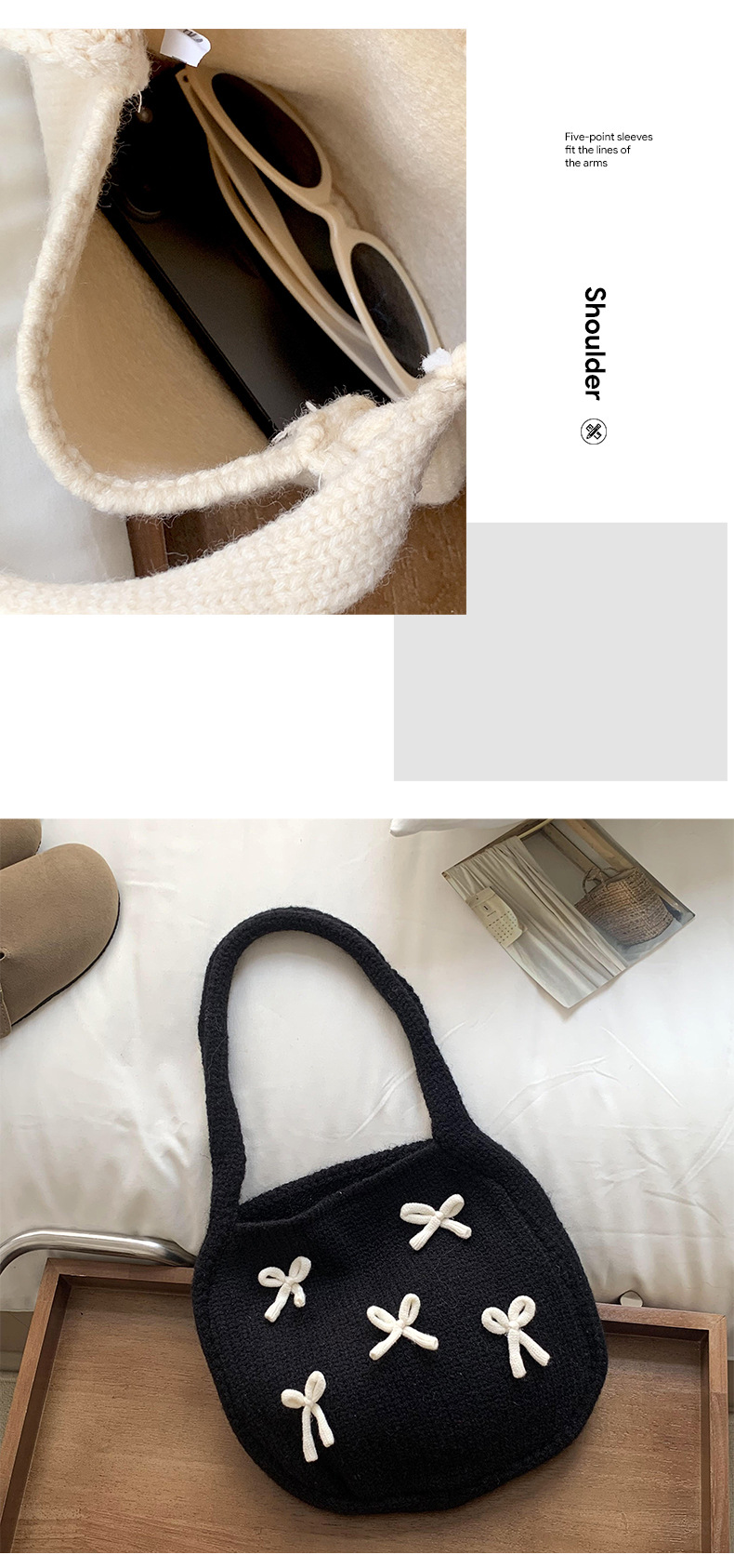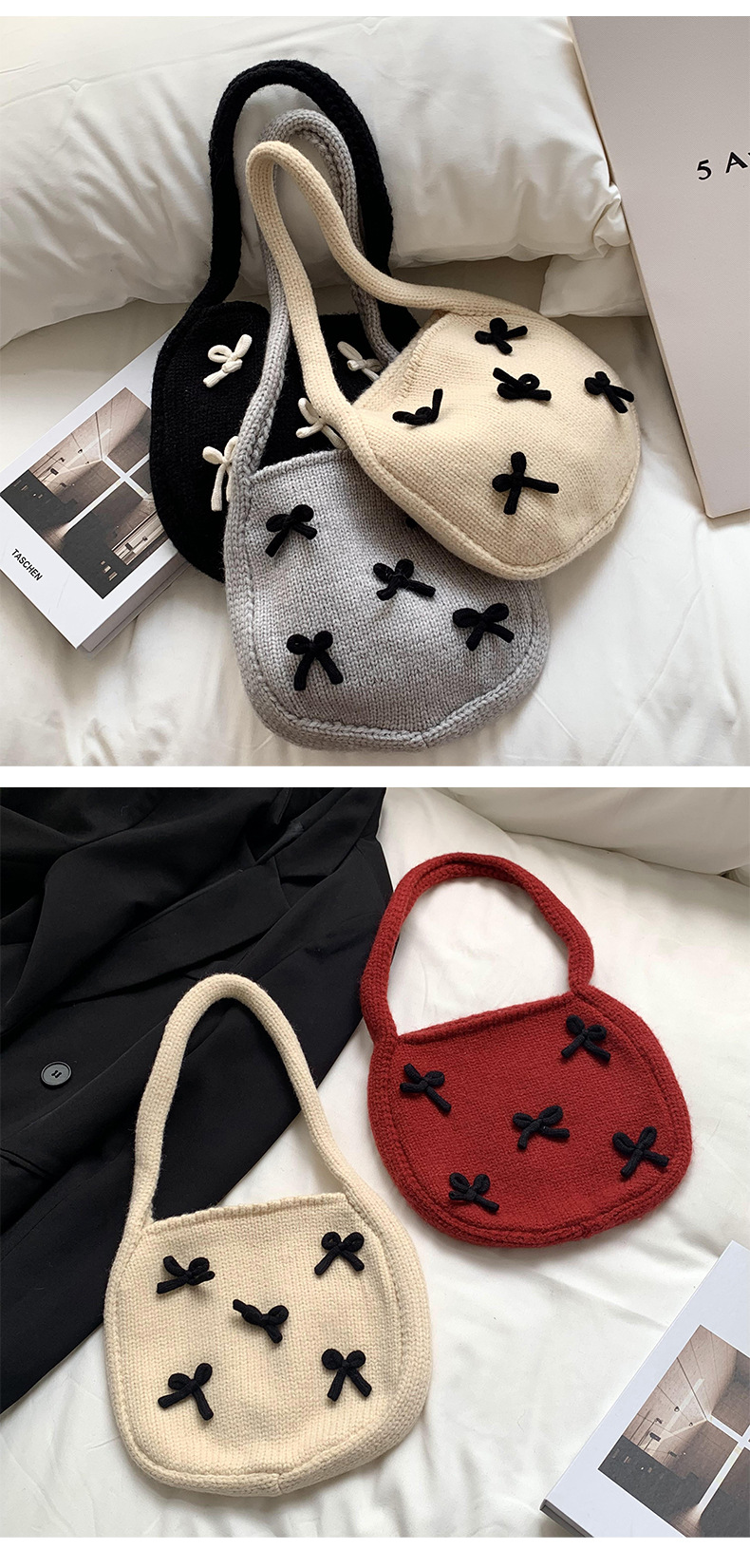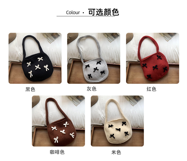 Bolsa de mano de mujer otoño / invierno nuevo estilo coreano atmósfera arco rojo tejido bolso de hombro lana