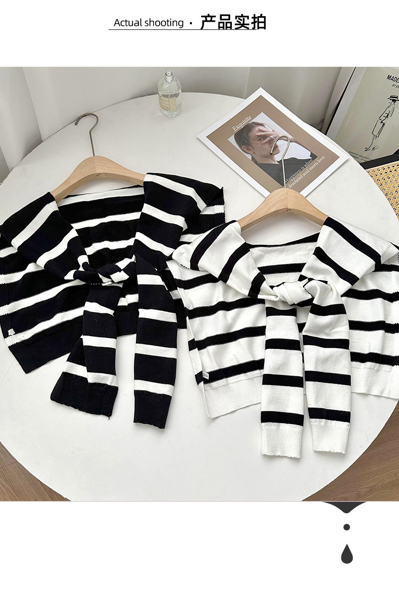 Challas de punto a rayas para mujeres 2025 aire acondicionado coreano aire acondicionado decoración cruzada pequeña camisa fábrica directa al por mayor