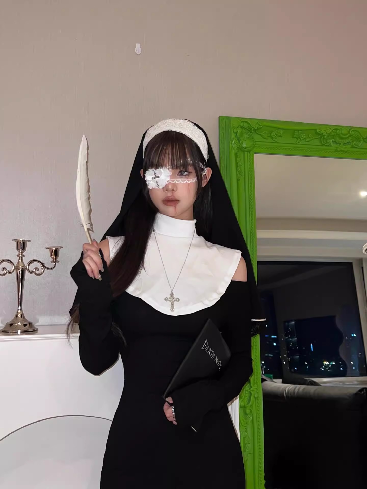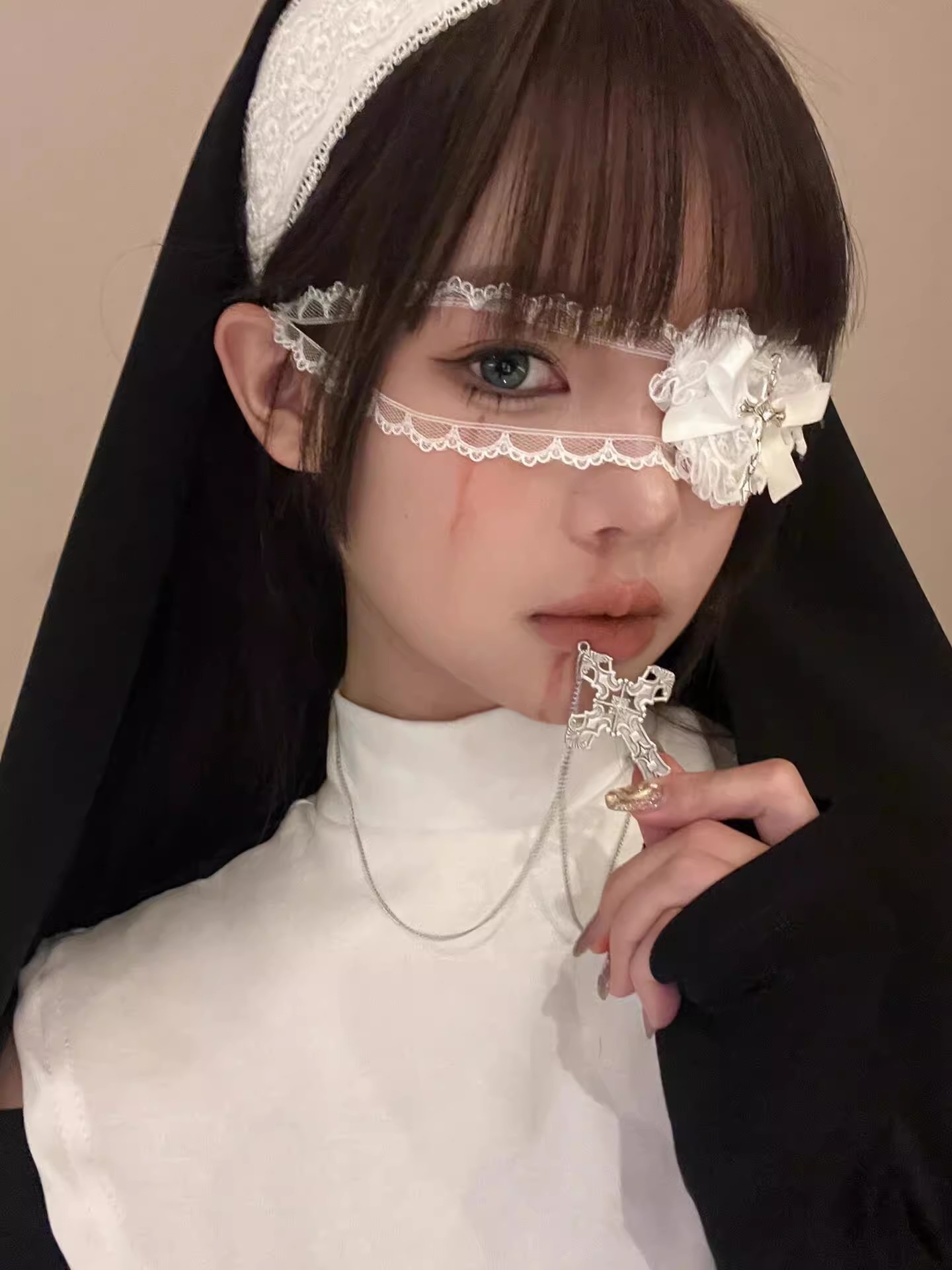 Gothic White Lace Love Eye Mask Punk Sweet Cool Halloween Decoración Cruces Oscuras Accesorios Fotográficos Cos