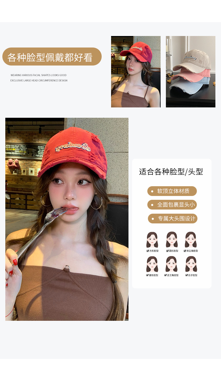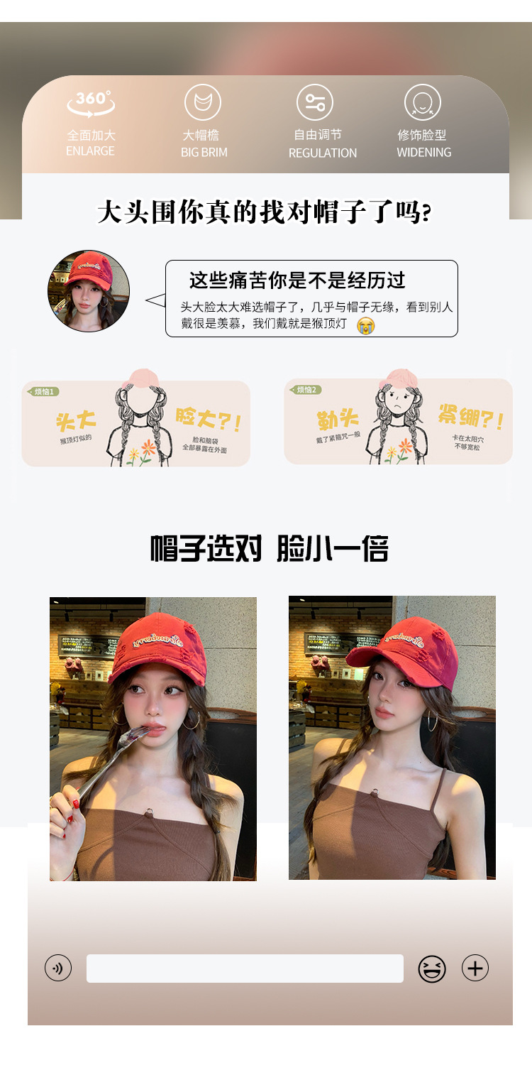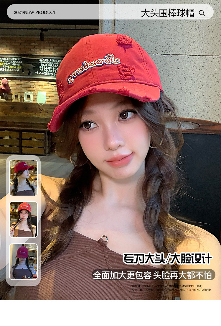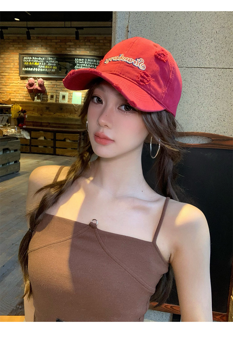 Carta roja bordada agujero gorra de béisbol mujer primavera 2025 nuevo aumento profundo gorra gor