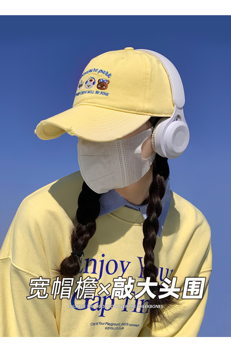 2025 nuevo sombrero de sombrero de protección solar, sombrero de béisbol, sombrero de cabeza grande, sombrero de lengua ancha, sombrero de mujer, cara pequeña y profunda