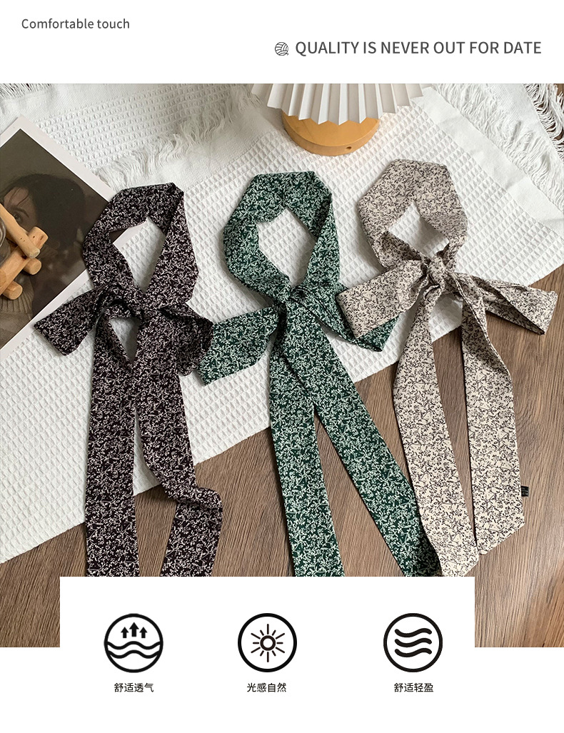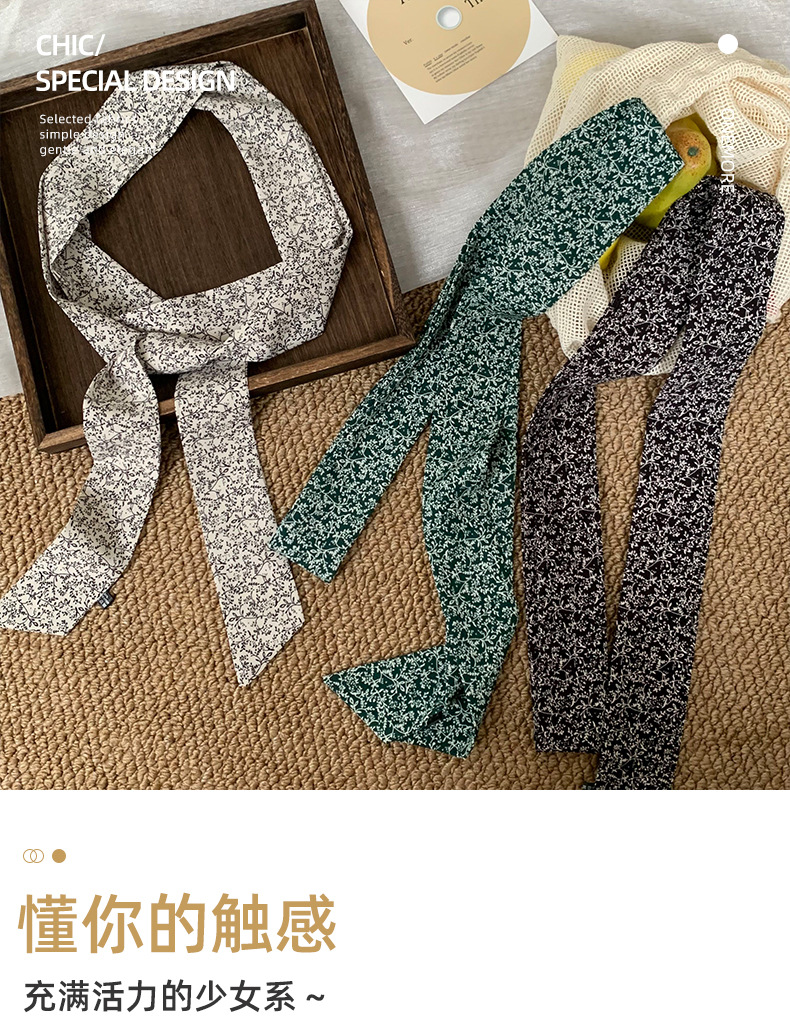 Pañuelo de seda, tira larga, sentido de alta gama, sentido de la atmósfera coreana, bufanda estrecha, bufanda, diadema, cinta, bolsa, cinta