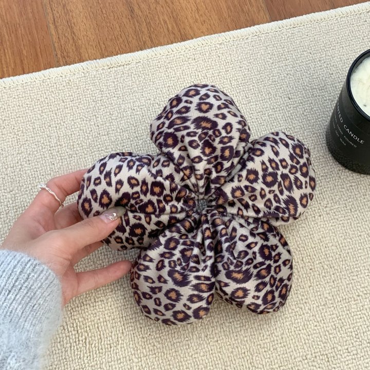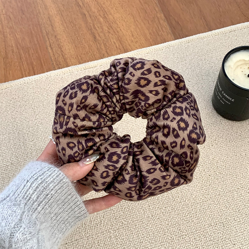Otoño y invierno nuevo patrón de leopardo flor de algodón anillo de cabello femenino de alto nivel detrás de la cabeza flor temperamento bola de cabello adornos de cabello
