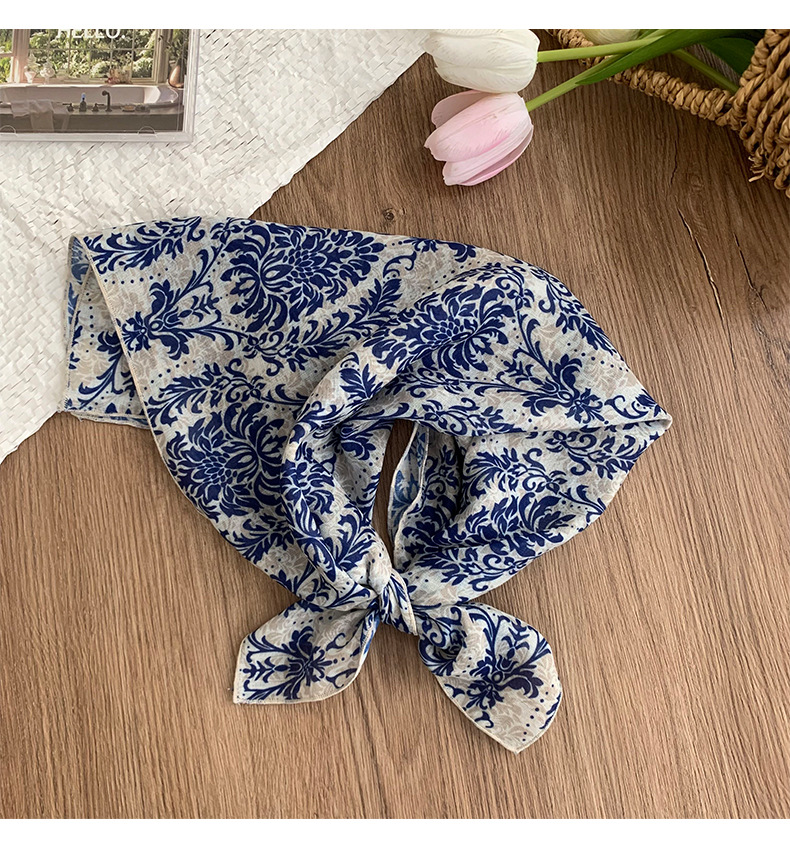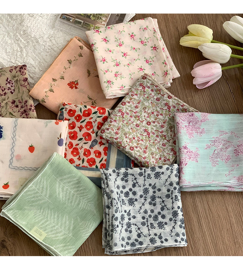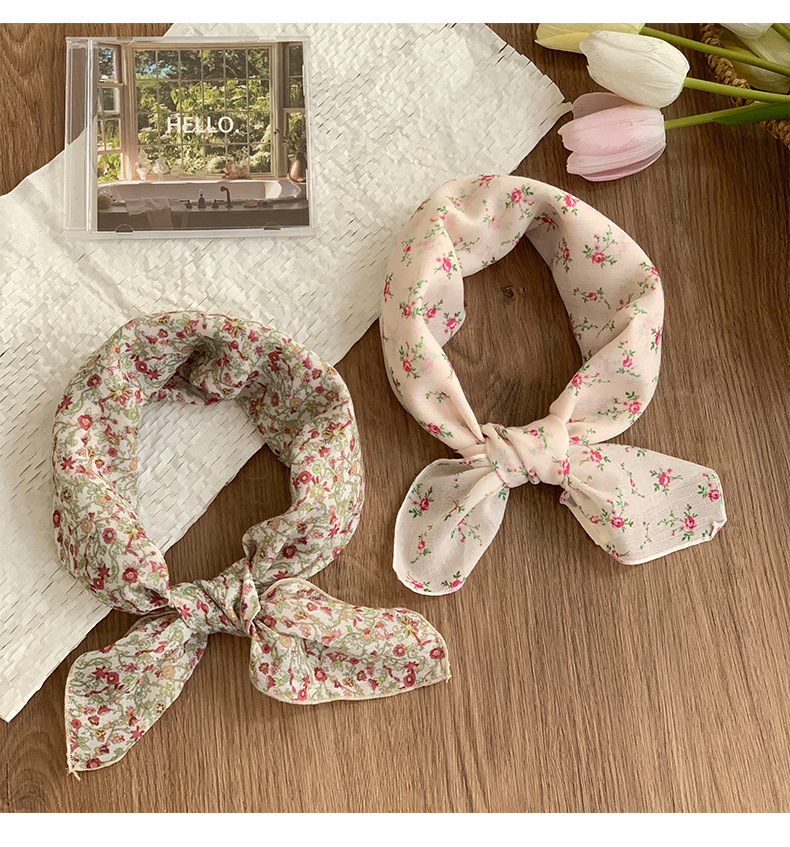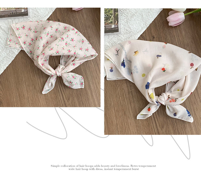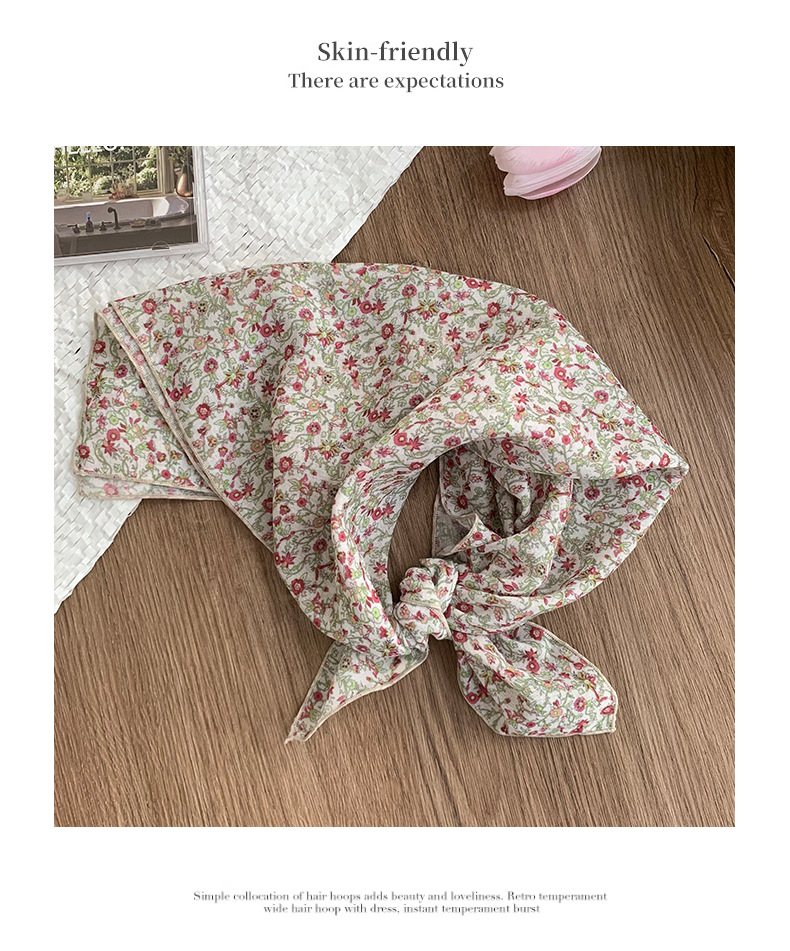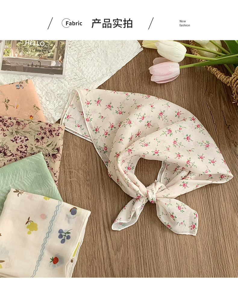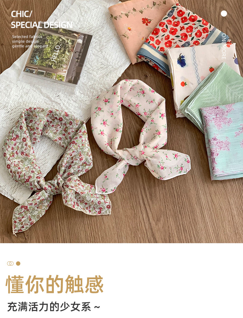 Pañuelo cuadrado pequeño, bufanda de seda, pañuelo floral de moda de verano para mujer, cinturón para el cabello de estilo pastoral, bufanda pequeña de alta calidad, accesorios para el cabello multifuncionales