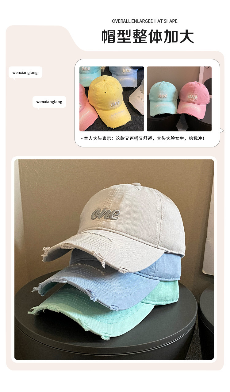 Coreano ins agujero letras sombrero de béisbol mujer 2025 nuevo sombrero de borde ancho grande perímetro de la cabeza para aumentar la profundización sombrero de béisbol