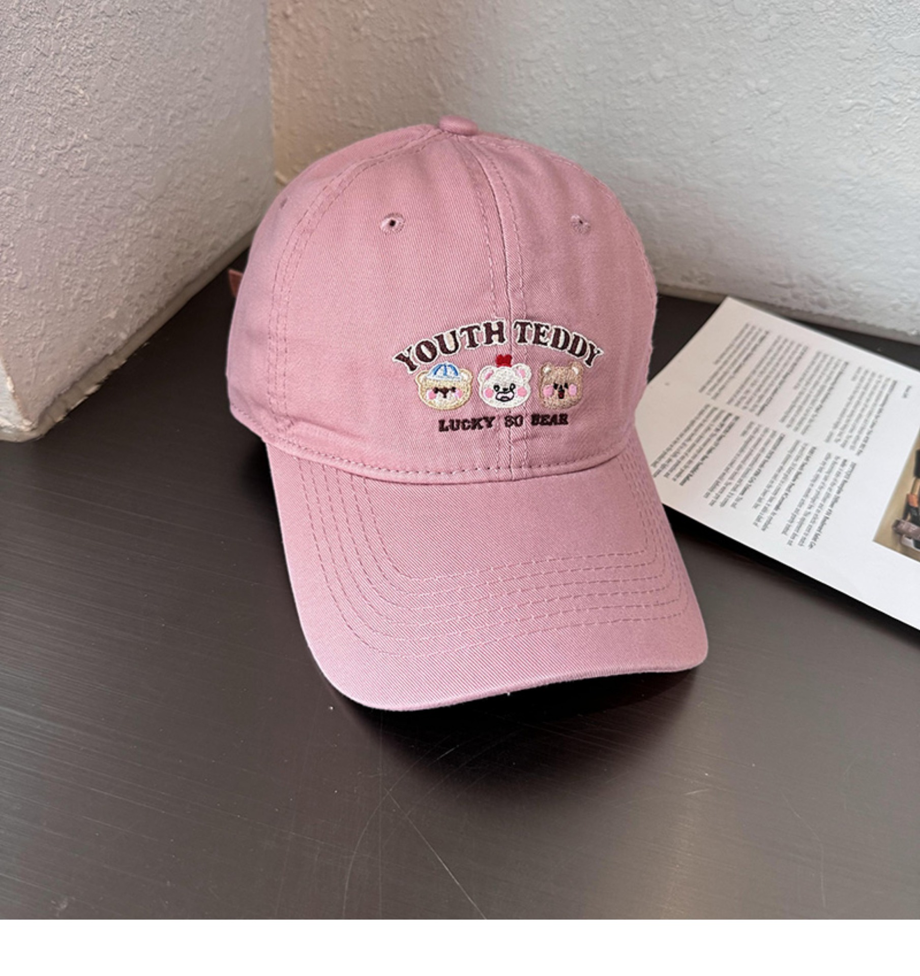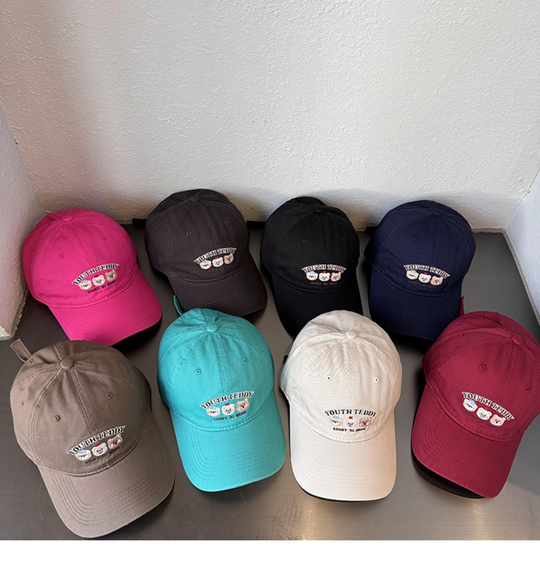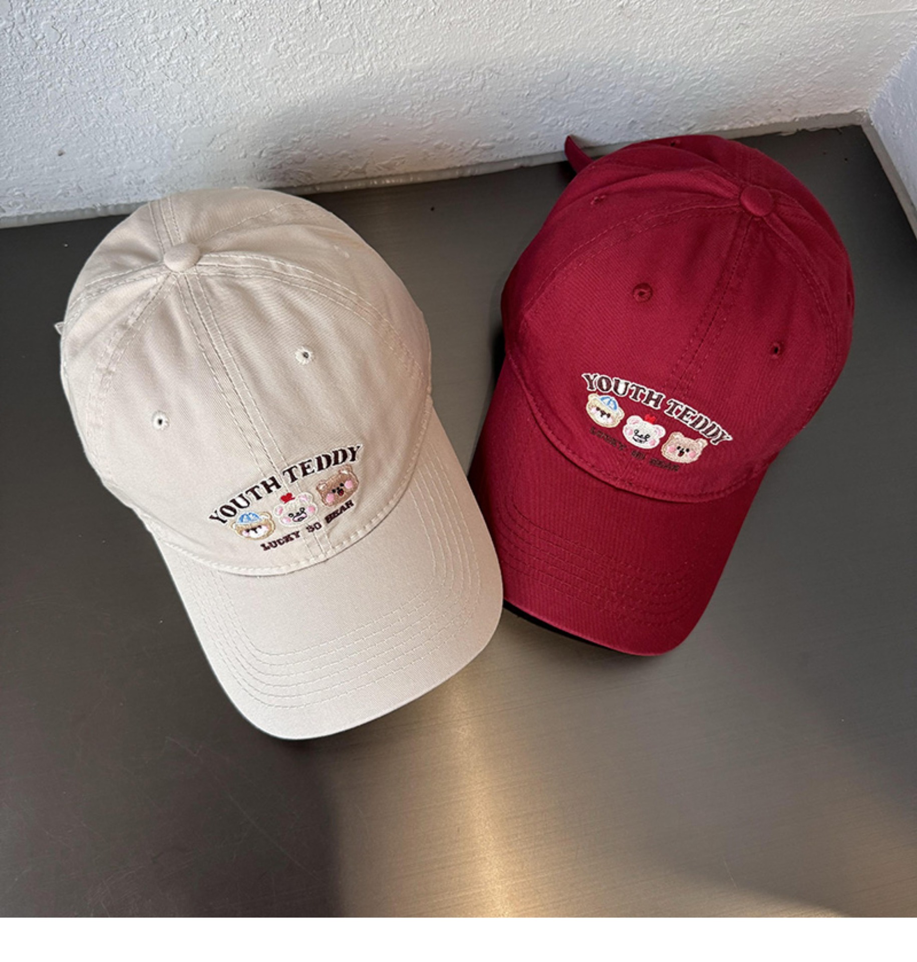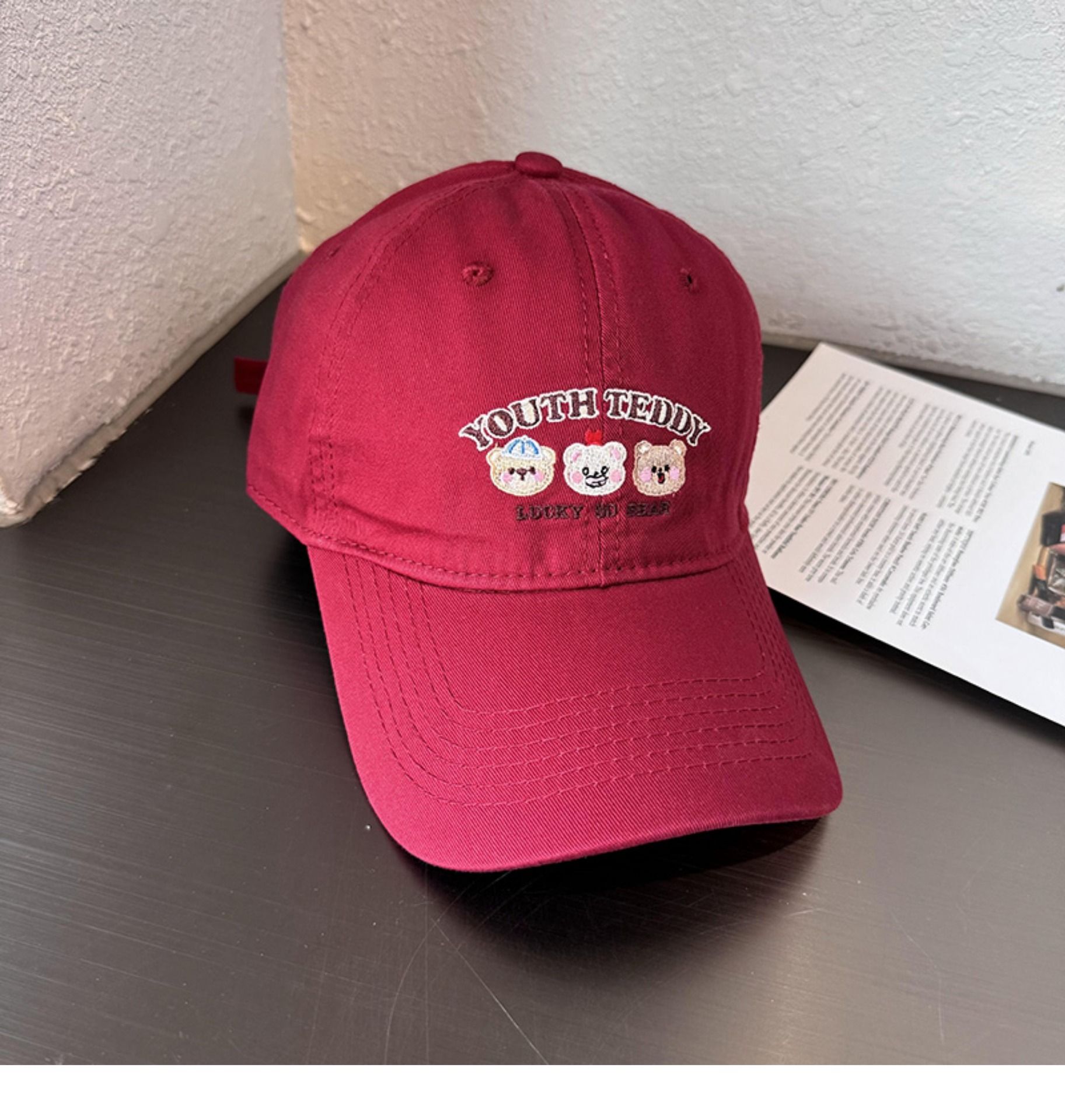 Sombreros de lengua bordados de dibujos animados coreanos para mujeres primavera y verano casuales versátiles parejas de estudiantes vino rojo sombrero de béisbol moda