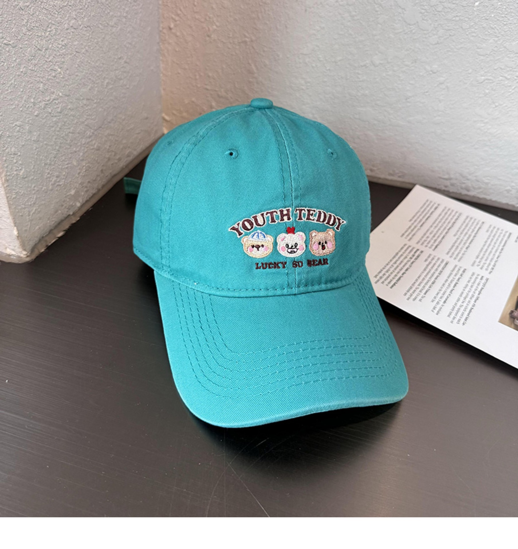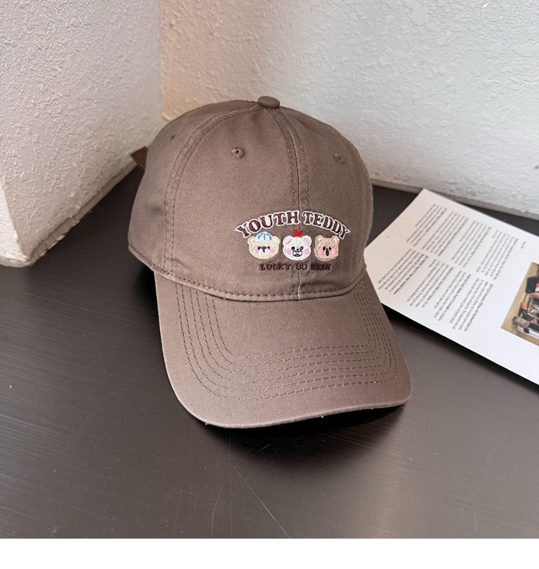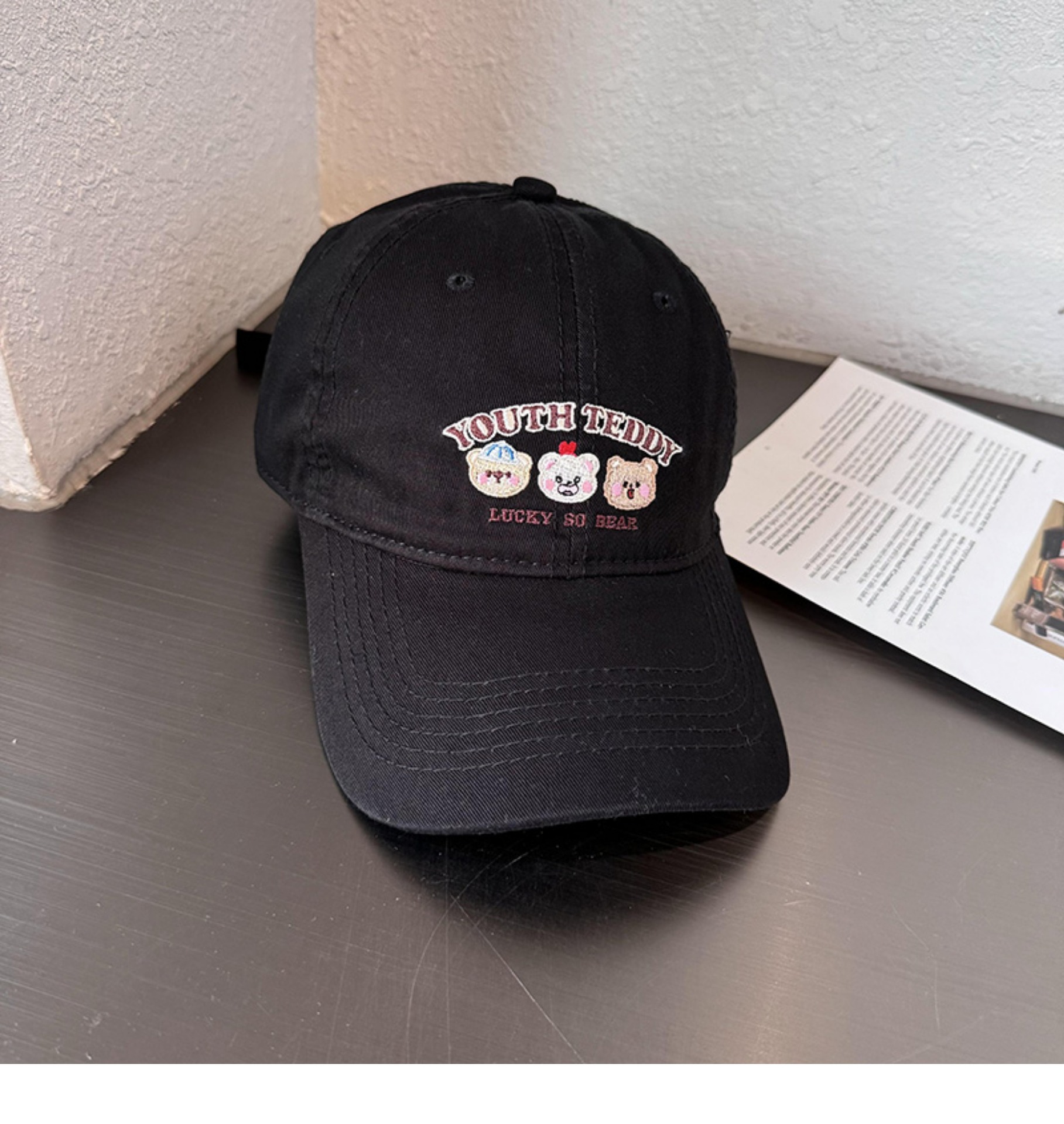 Sombreros de lengua bordados de dibujos animados coreanos para mujeres primavera y verano casuales versátiles parejas de estudiantes vino rojo sombrero de béisbol moda