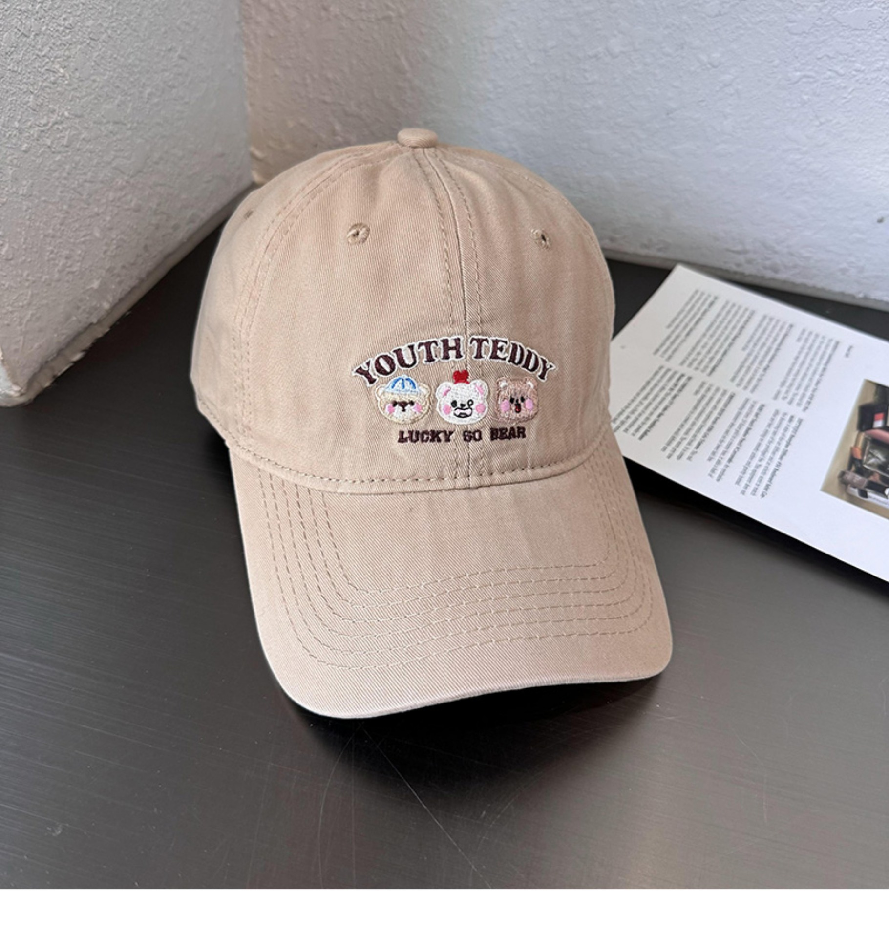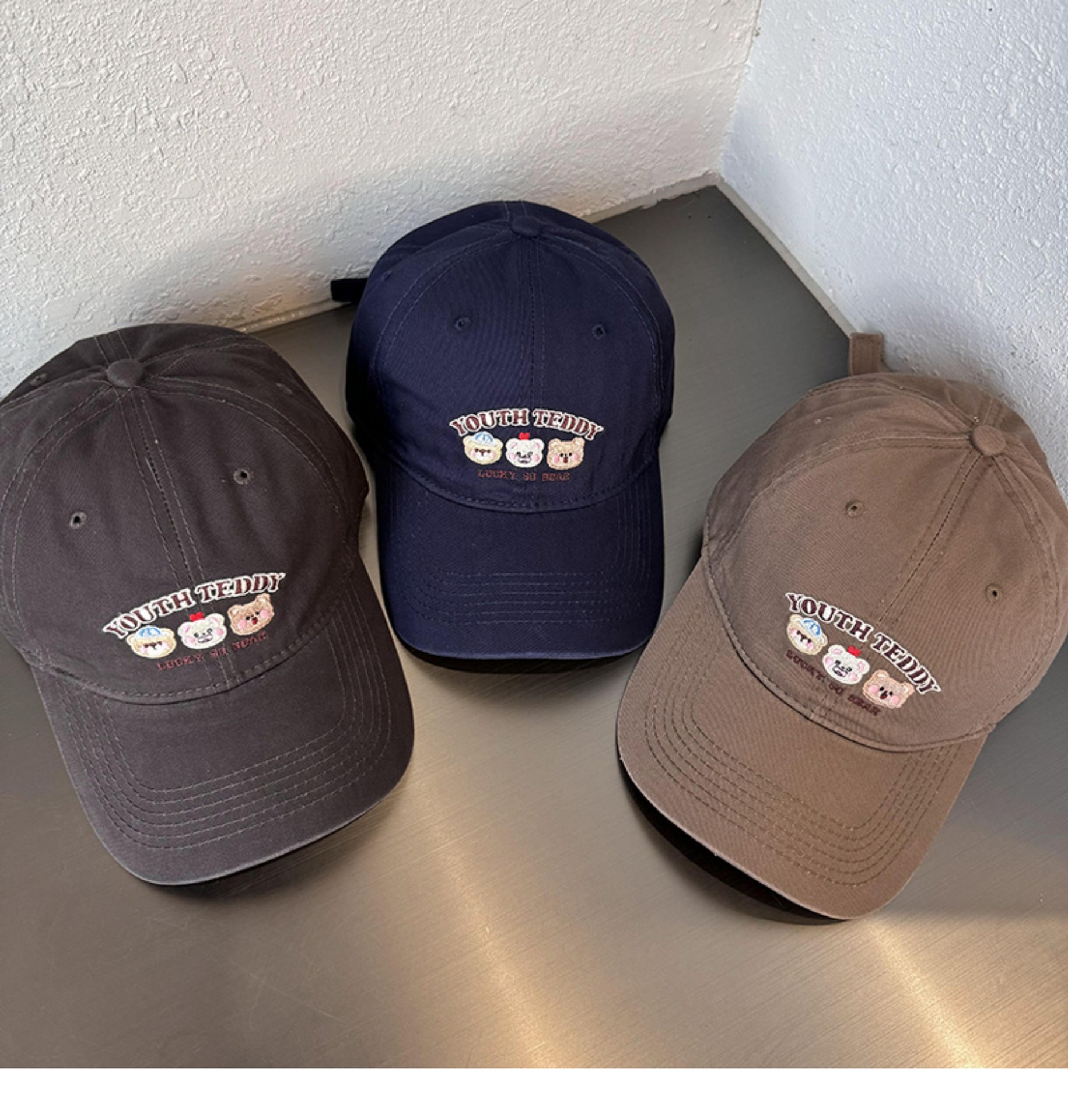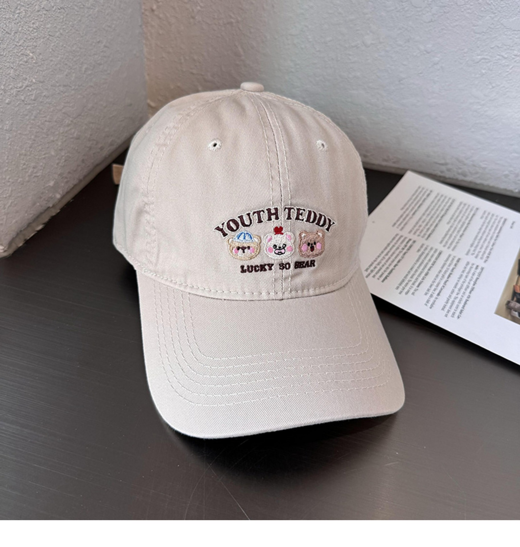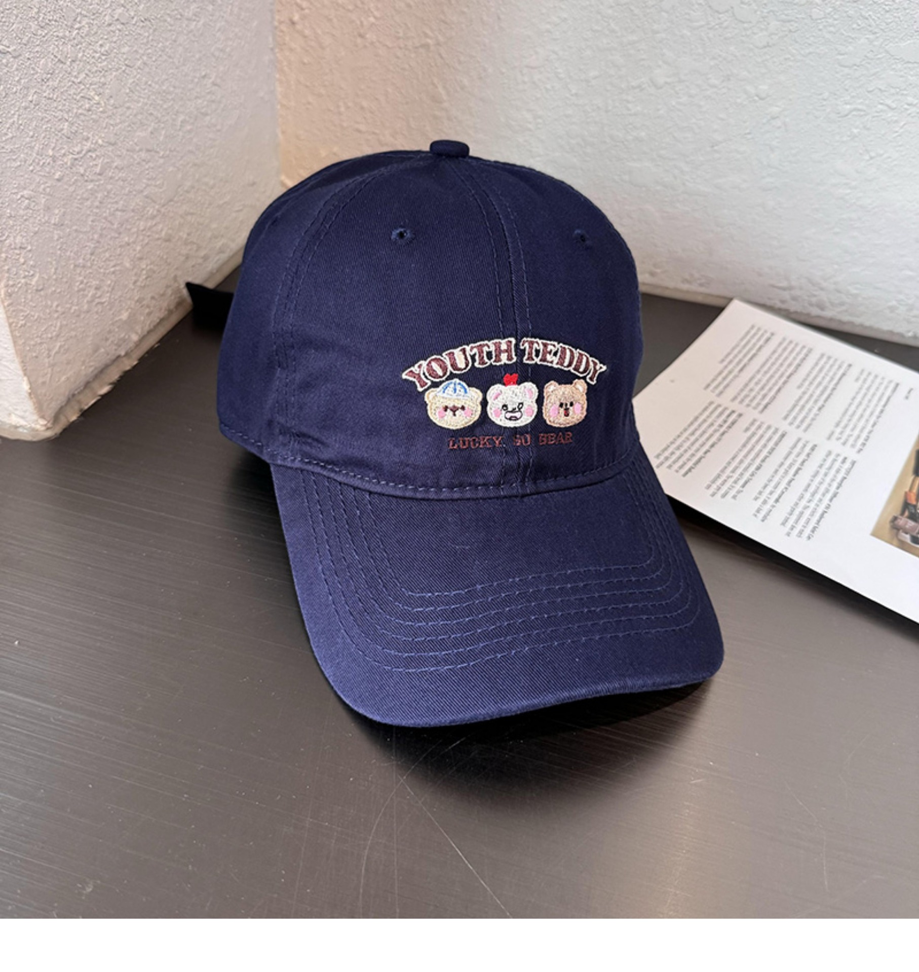 Sombreros de lengua bordados de dibujos animados coreanos para mujeres primavera y verano casuales versátiles parejas de estudiantes vino rojo sombrero de béisbol moda