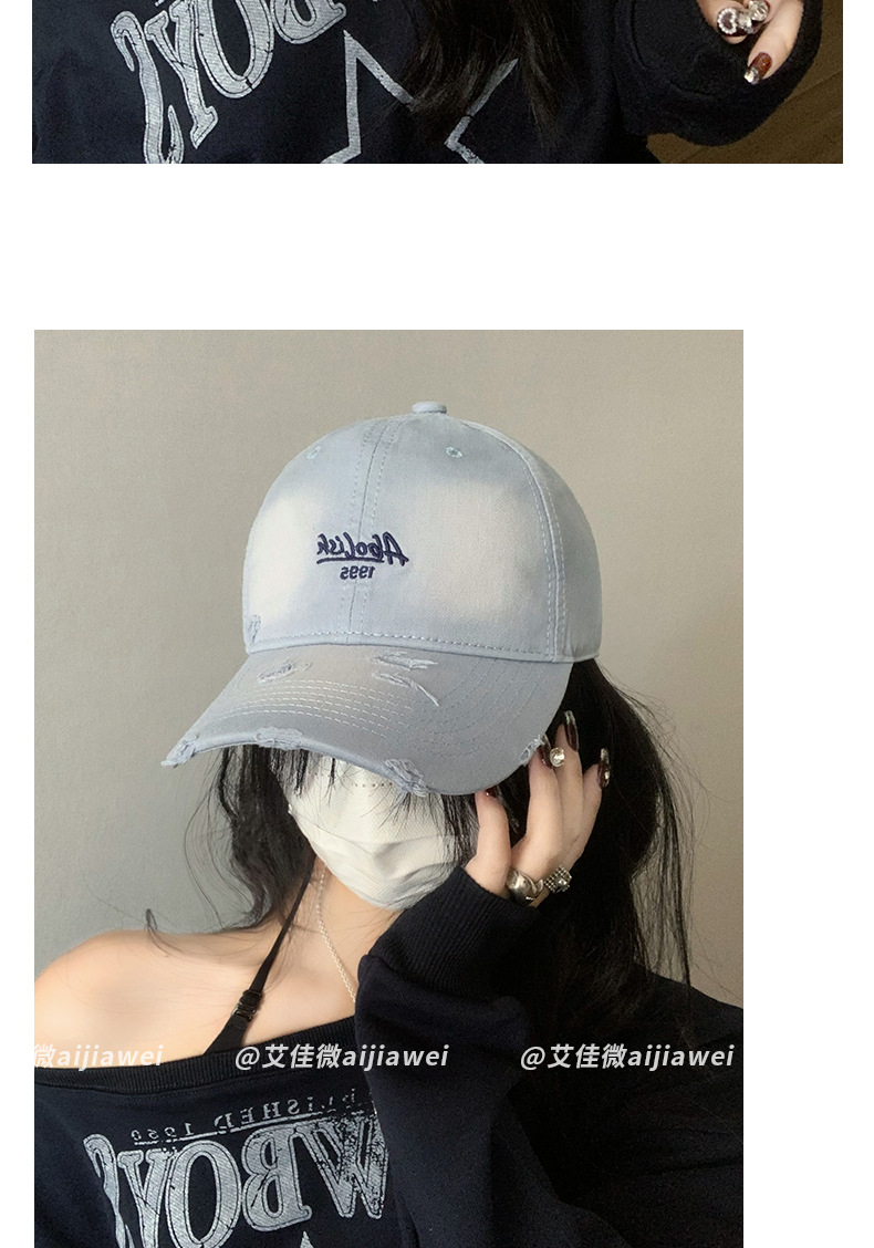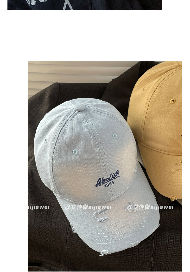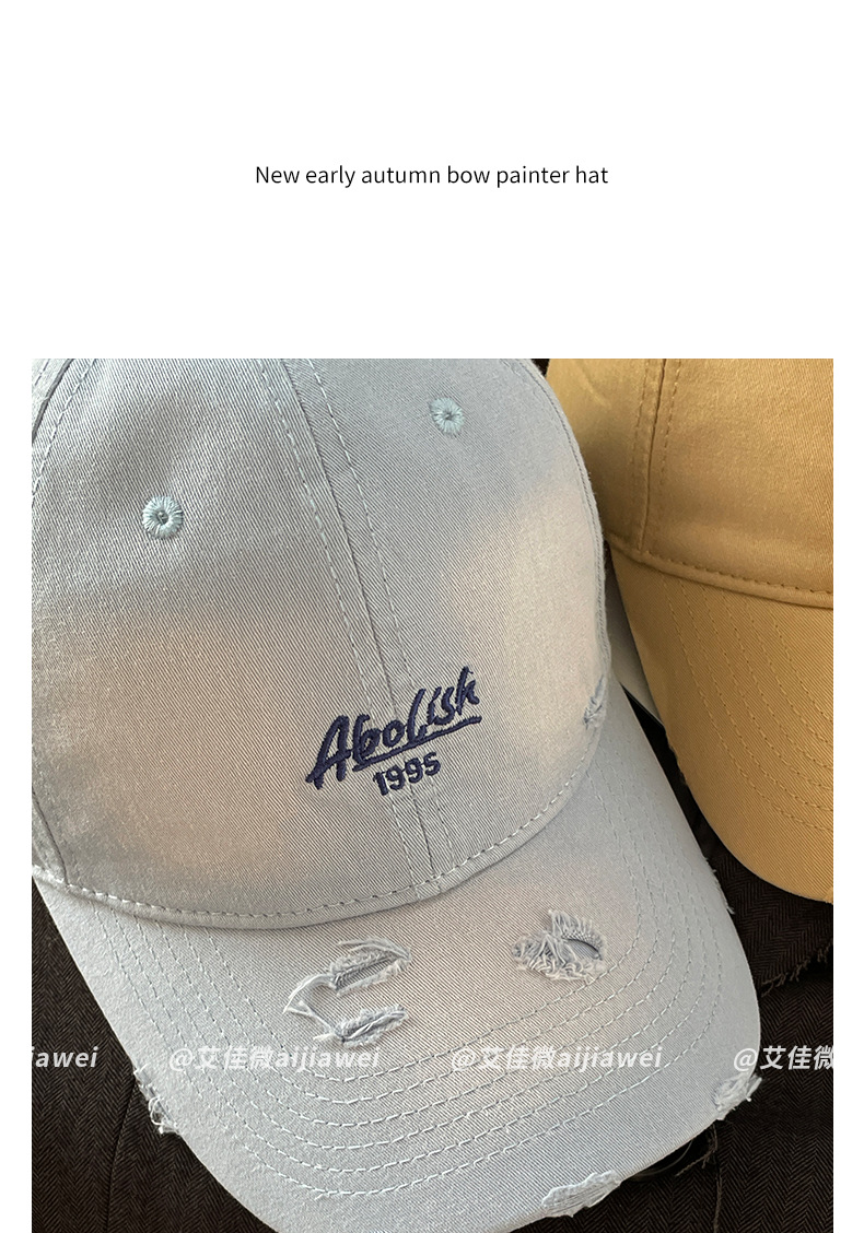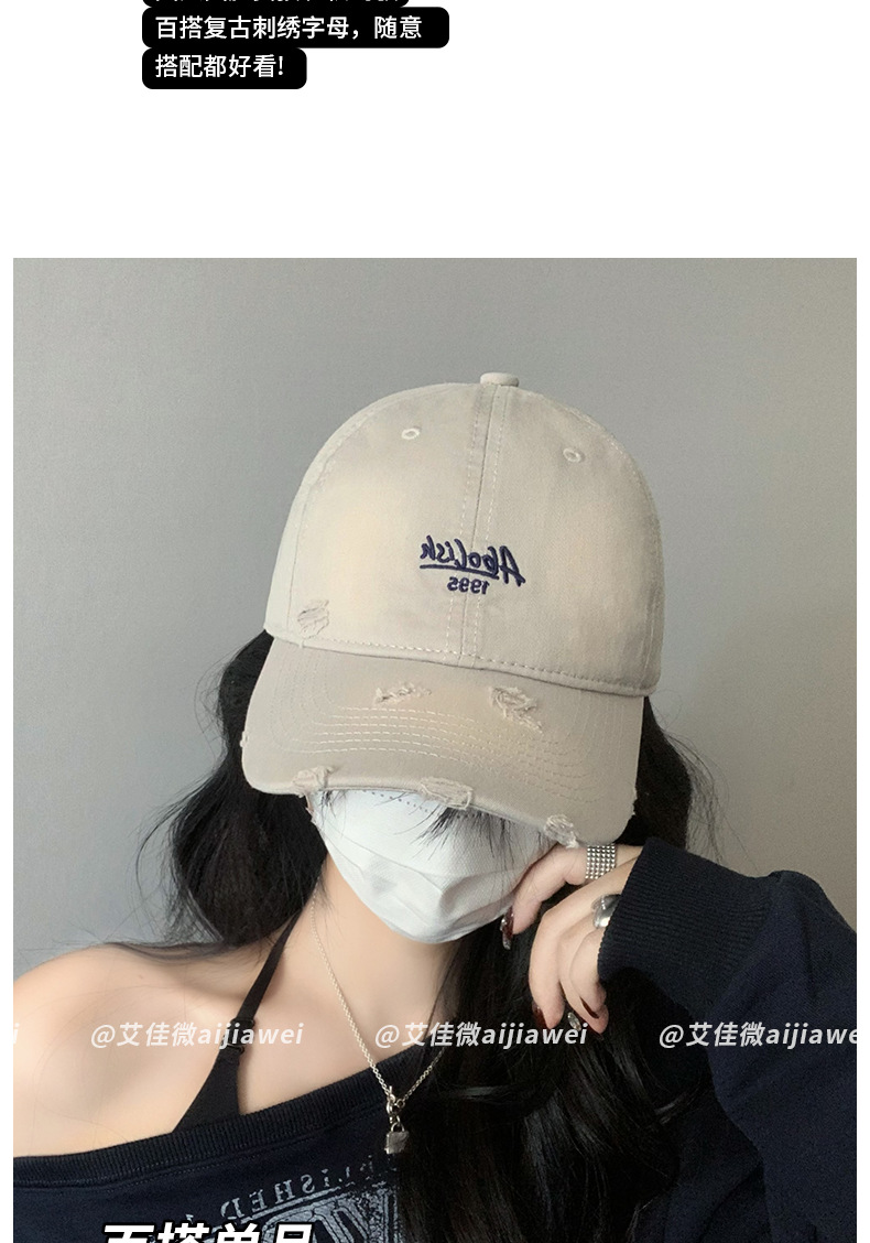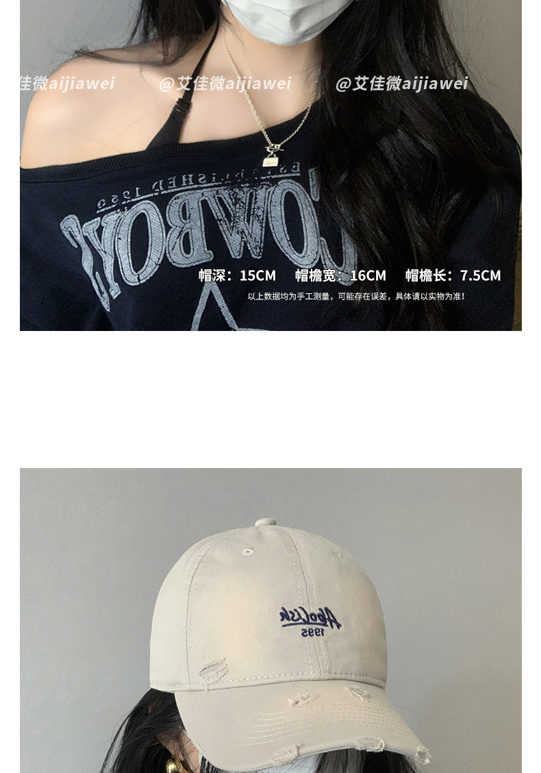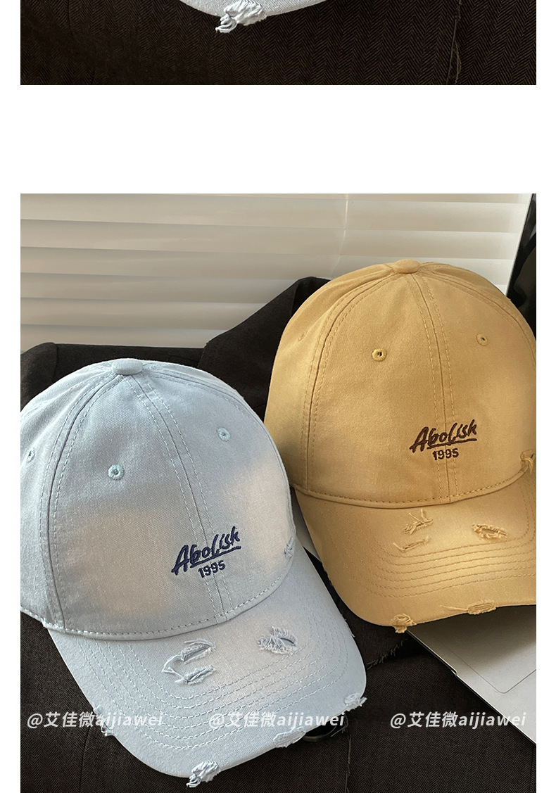 2025 nuevo agua lavada bordada gorra de boca de pato agujero gorra de primavera y verano mujer cabeza grande cara pequeña sombrera de béisbol versátil sombrero de sombrero de sombrero de sombrero de béisbol