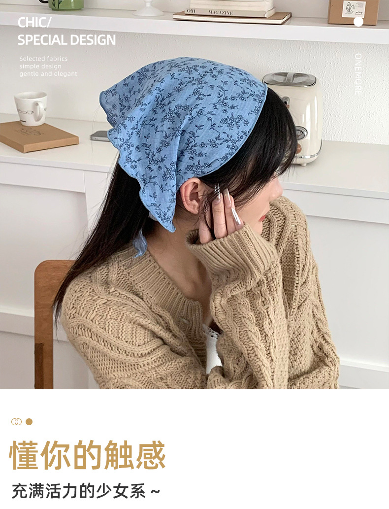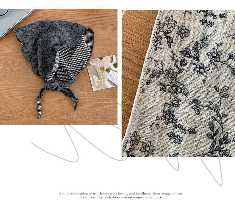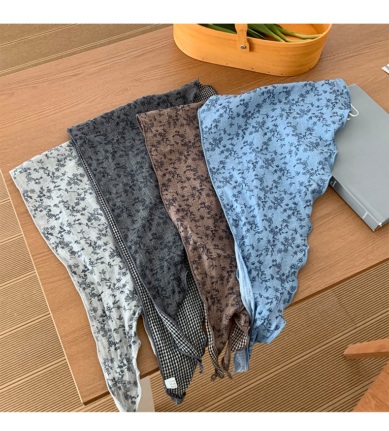 Bufanda triangular, babero, modelos de primavera y verano para mujer, pañuelo japonés de algodón y lino, diadema floral pastoral para mujer de verano, diadema de todo fósforo, accesorios para el cabello, sombreros