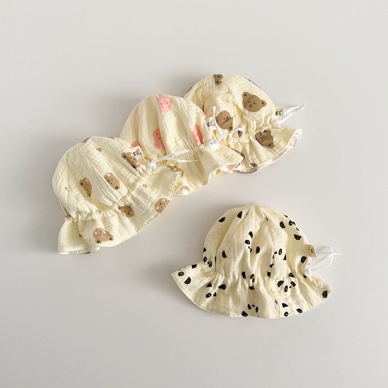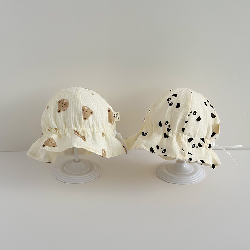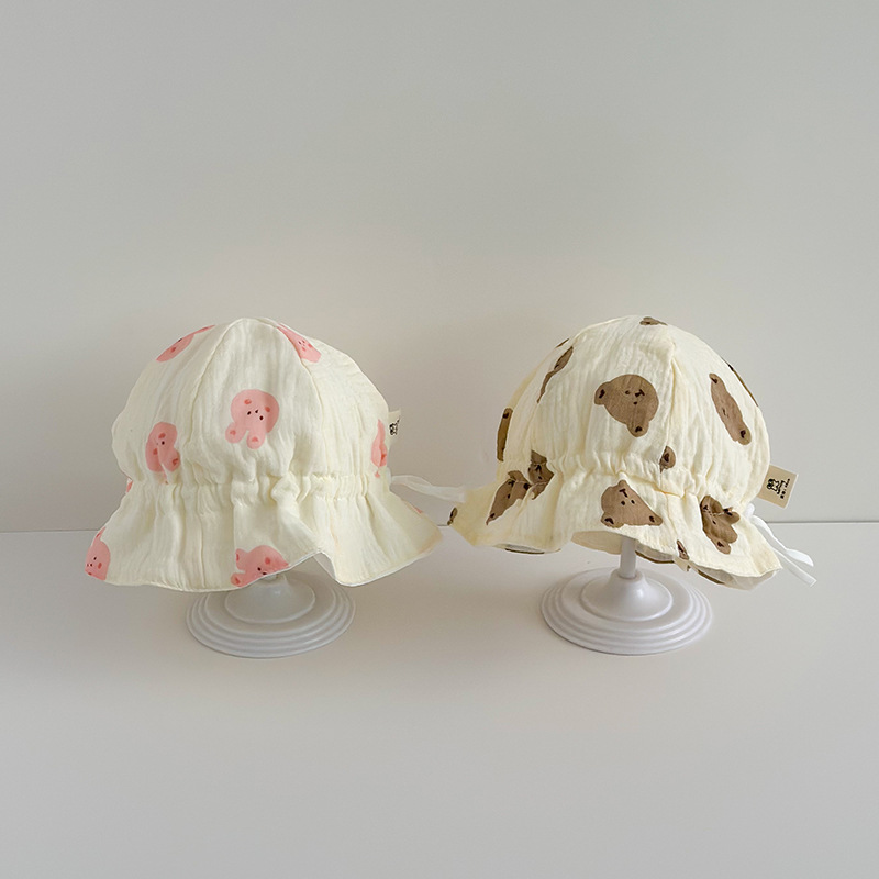 Sombrero para bebés primavera y otoño delgado algodón dibujos animados osos ajustables para bebés varillas sombrero pescador sombrero brotes