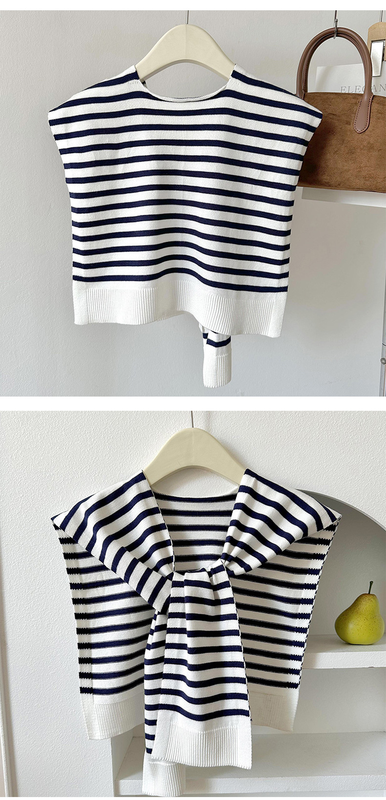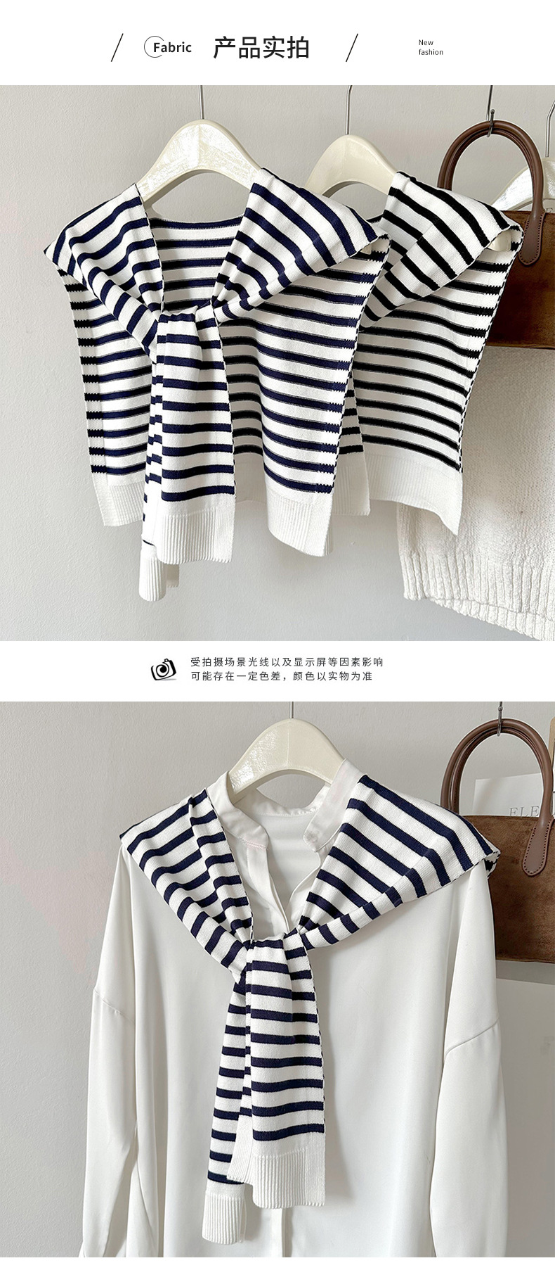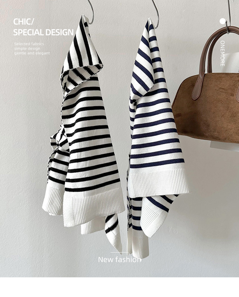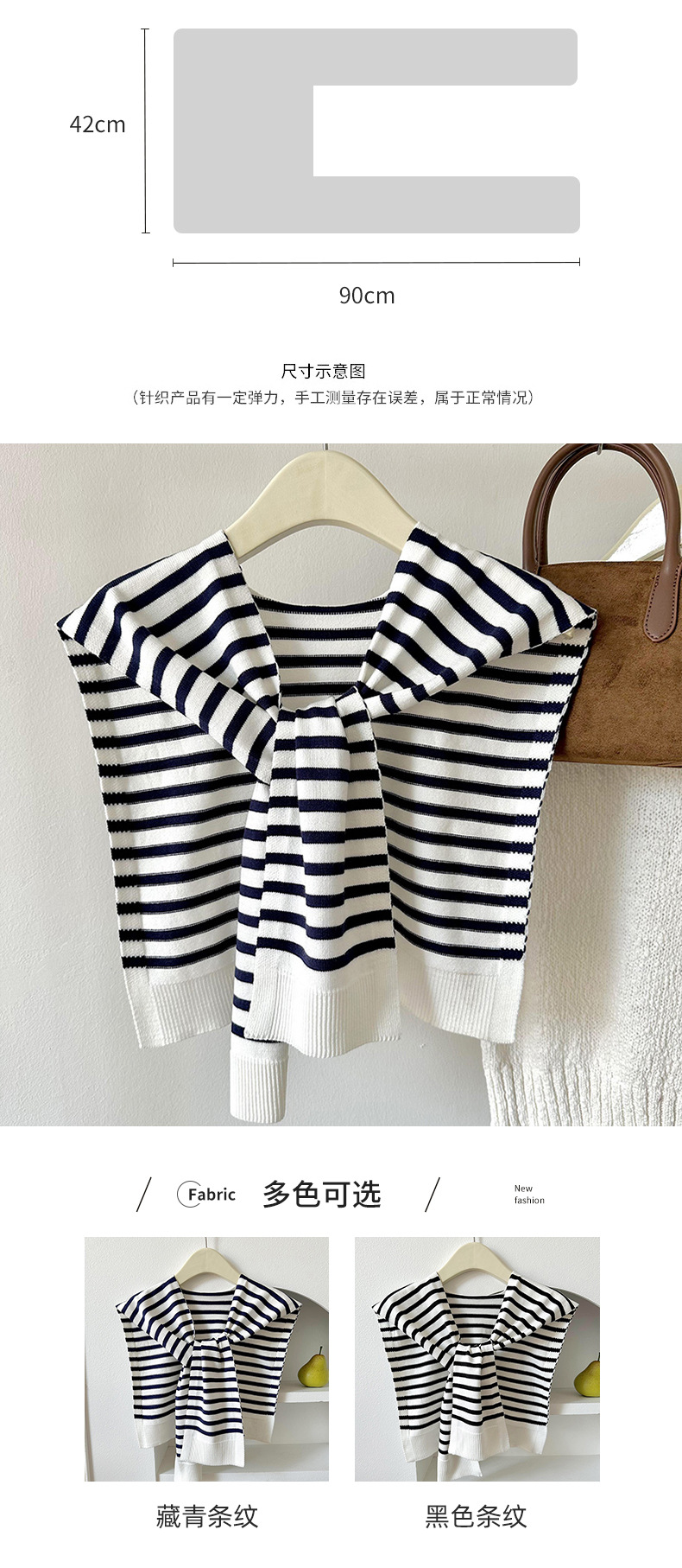 Estilo coreano primavera y otoño negro y blanco a rayas de punto falso collar chal desgaste exterior de las mujeres decorativo anudado habitación con aire acondicionado moda todo-coincidencia