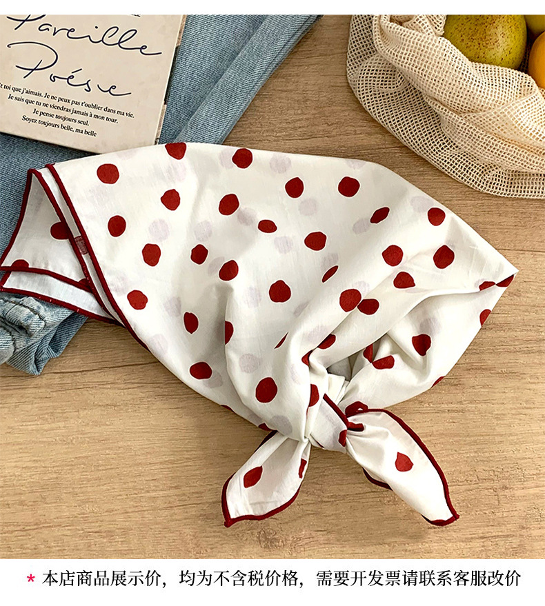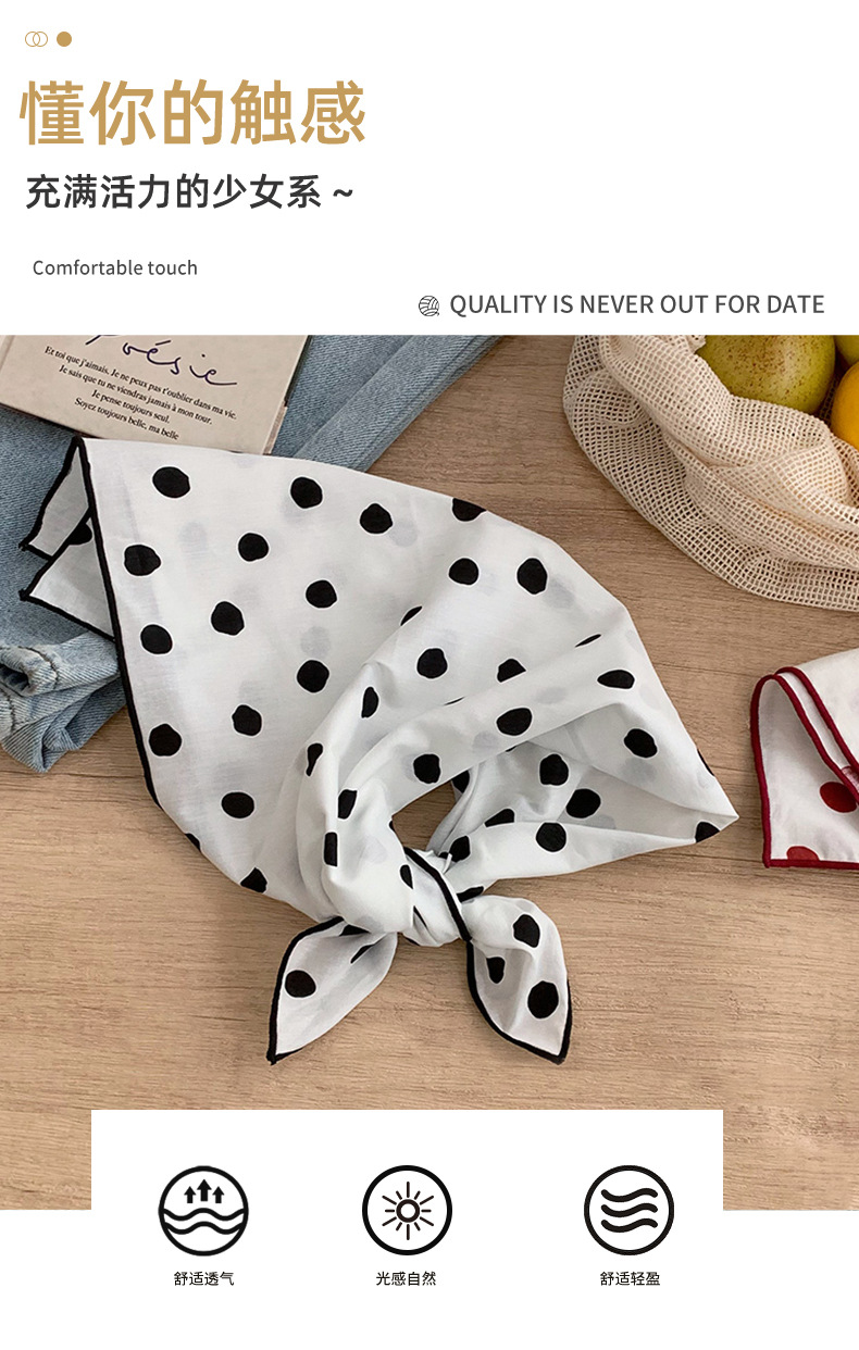 Pañuelo de seda Pañuelo cuadrado de algodón con lunares de alta calidad, bufanda decorativa de todo fósforo para mujer, pañuelo en la cabeza, bufanda delgada, chal pequeño