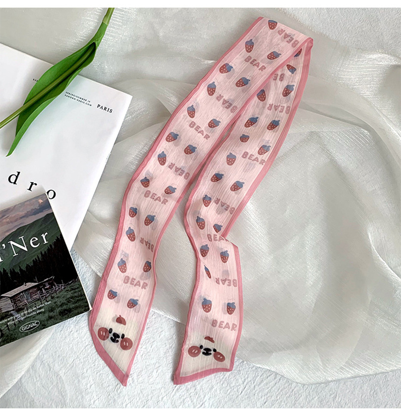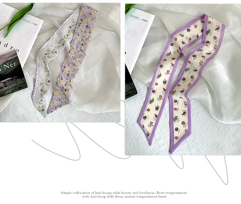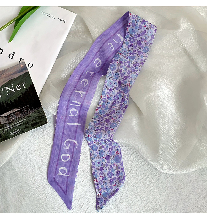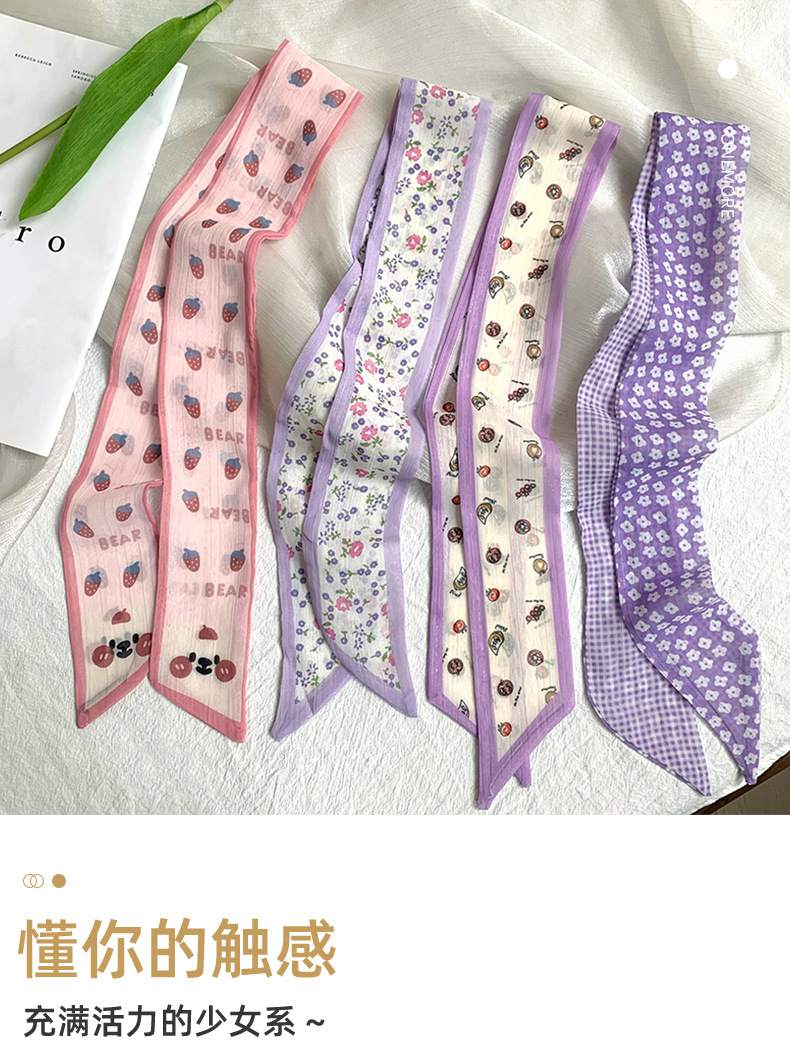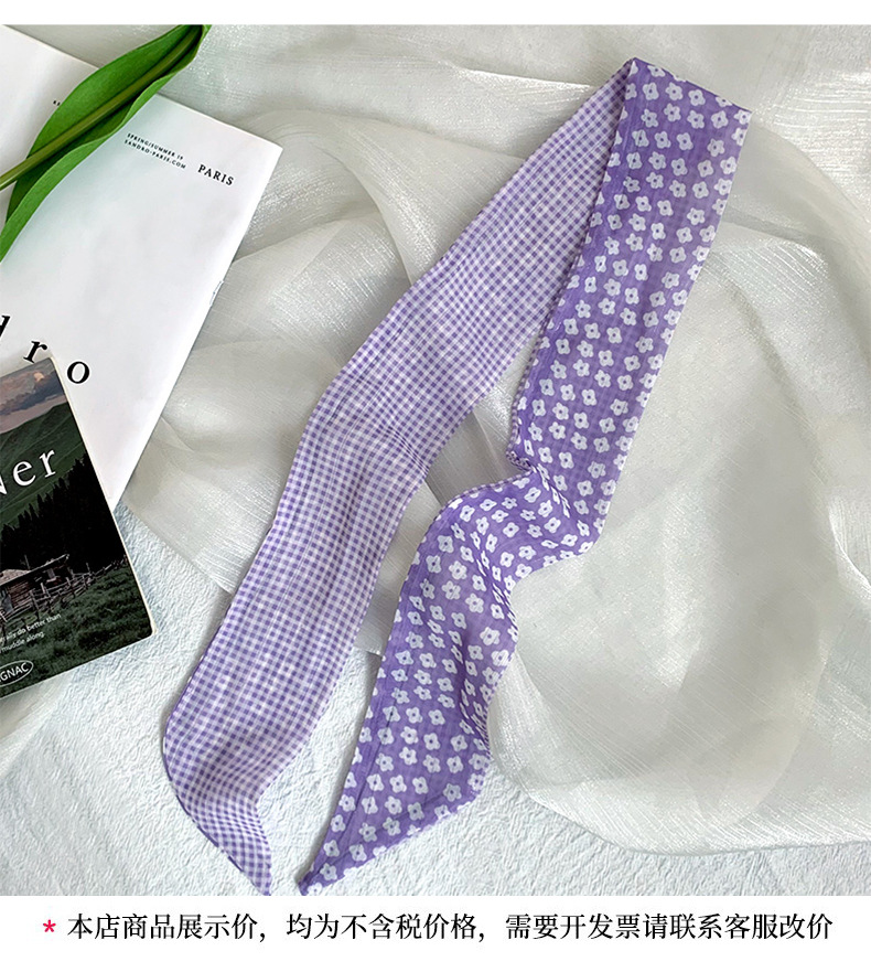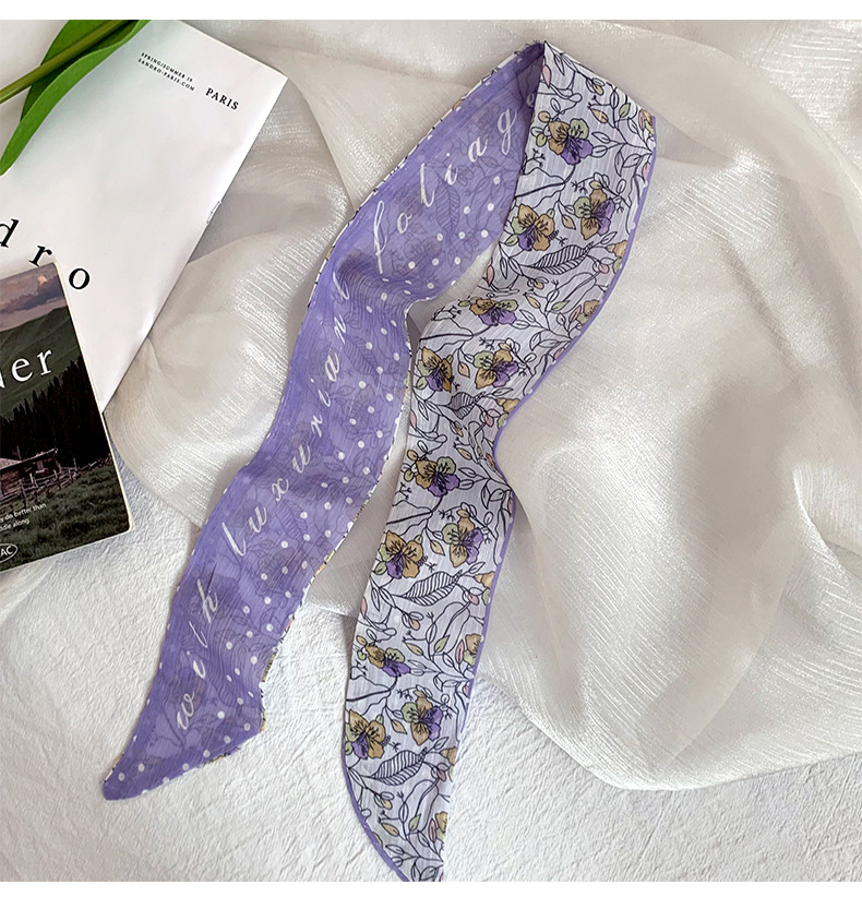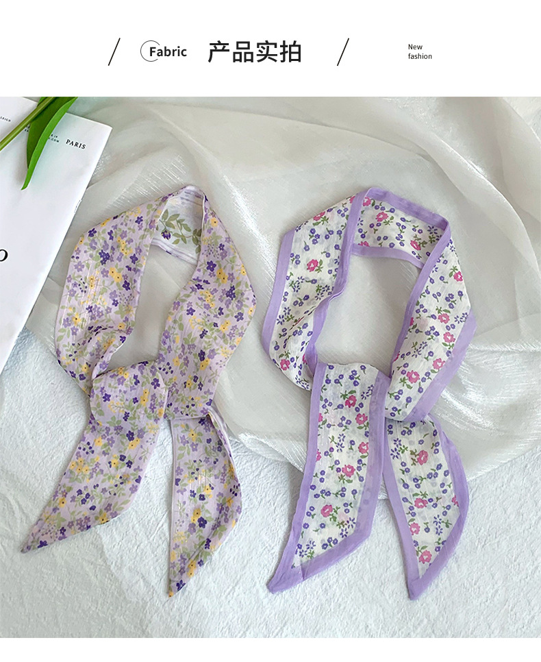 Pañuelo de seda pequeño largo francés de verano, cinturón de pelo floral pequeño, paquete de cabello trenzado, bufanda de cinta fina de gasa