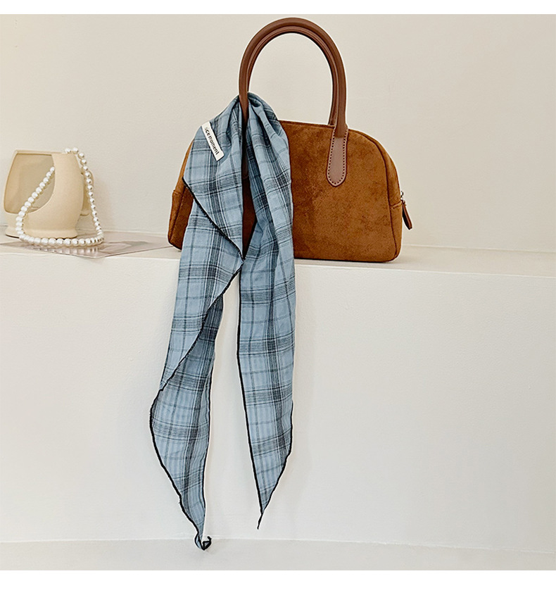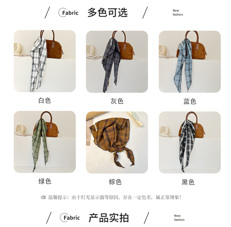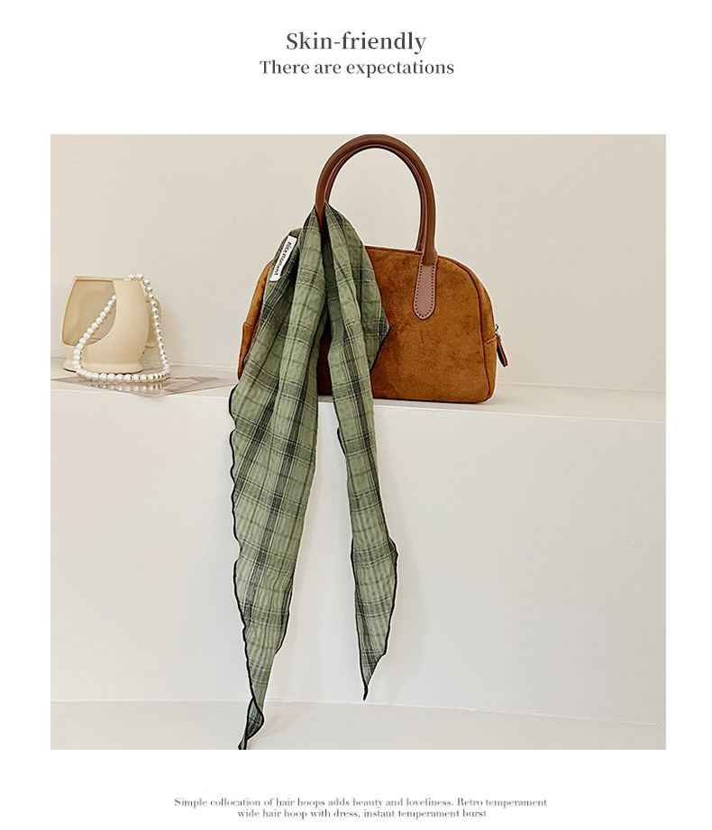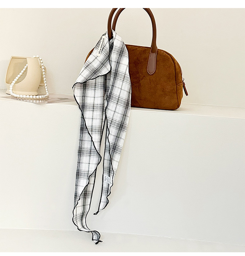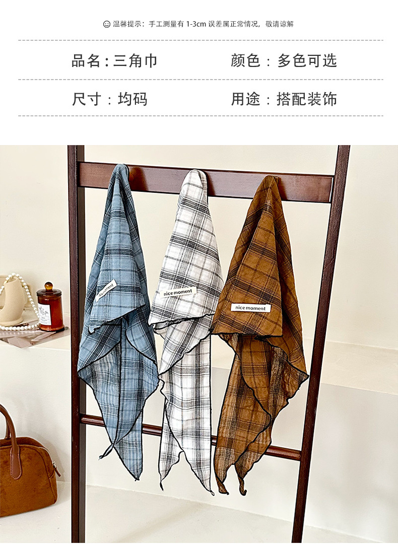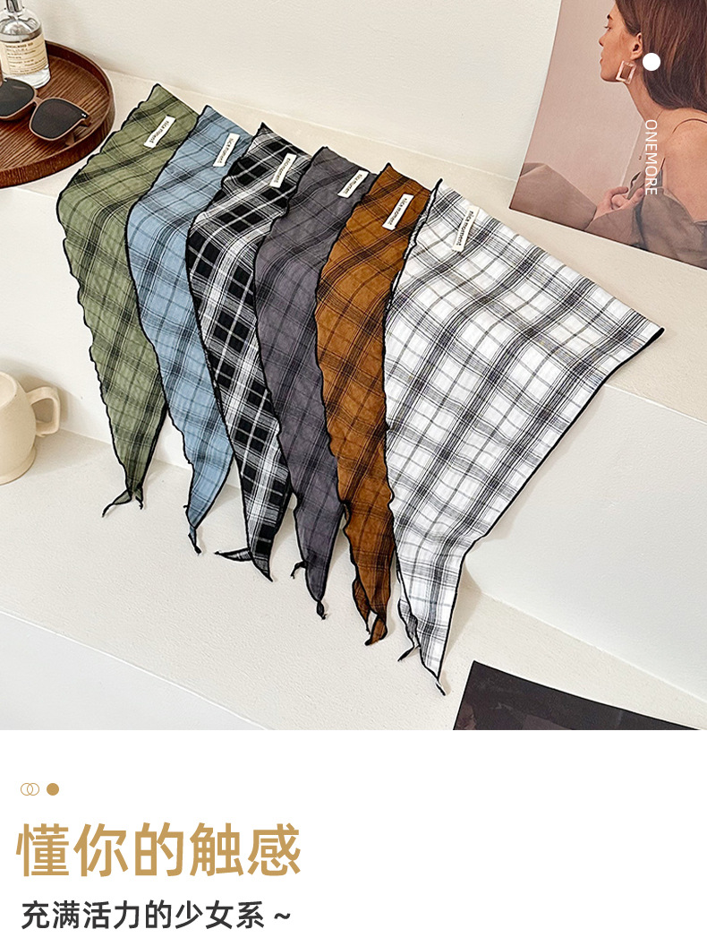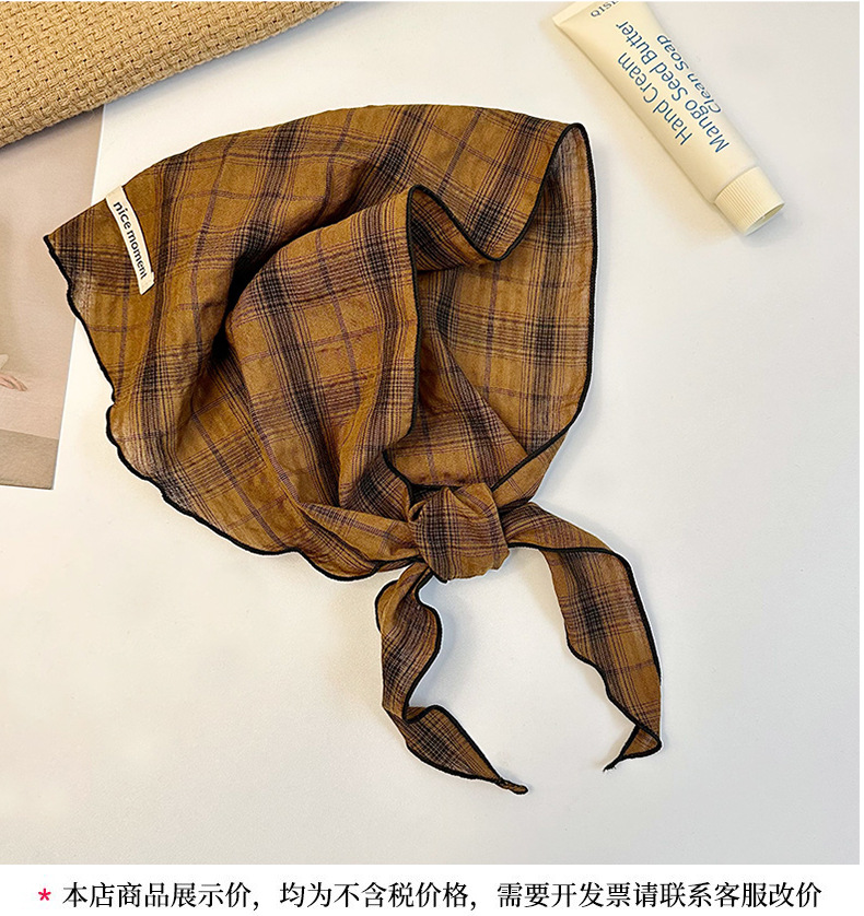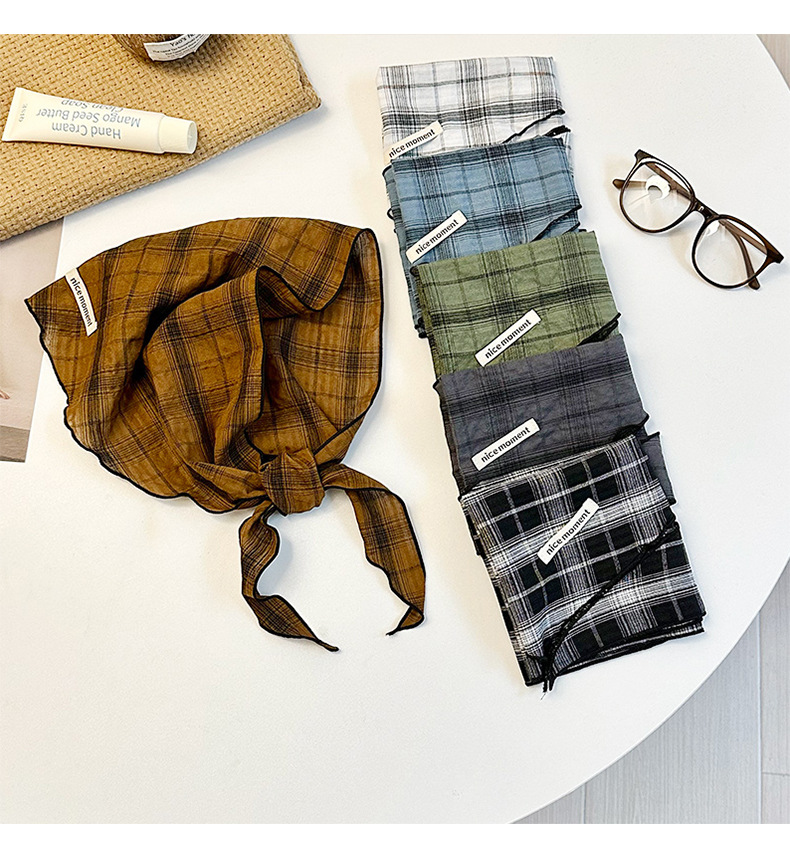 Bufanda triangular para mujer, estilo fino de primavera y verano, bufanda de seda literaria retro, bufanda para el cuello, pañuelo japonés a cuadros de algodón y lino, cinturón para el cabello, cabello atado