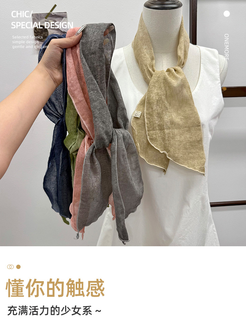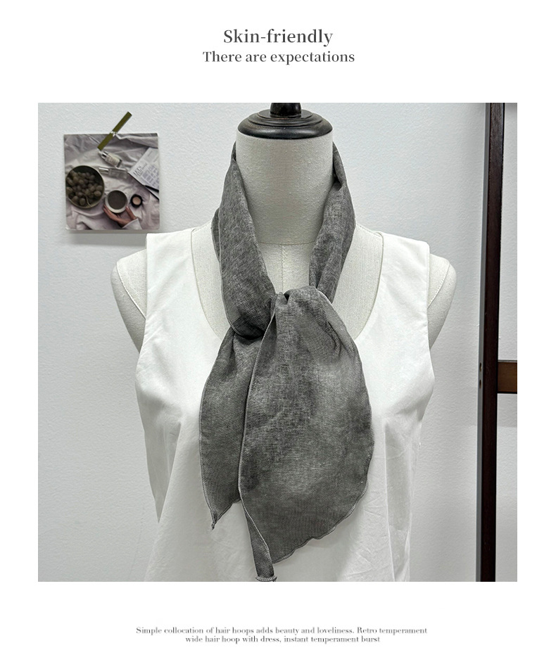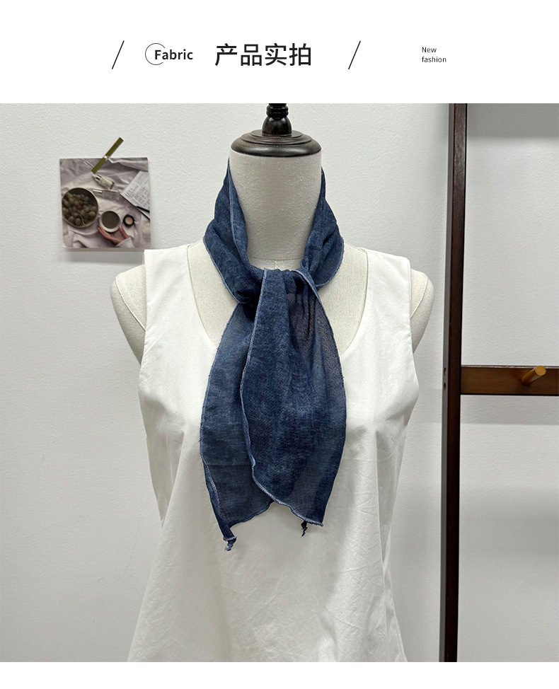 Pañuelo de seda, tira larga, sentido de alta gama, nuevo azul marino, retro, color sólido, protector de cuello literario, bufanda pequeña, accesorios, diadema, cinturón para el cabello, cabello atado