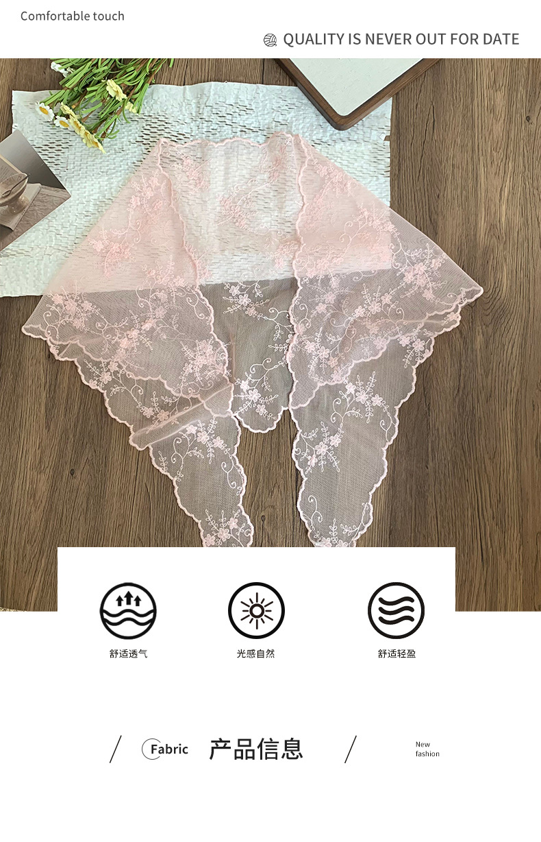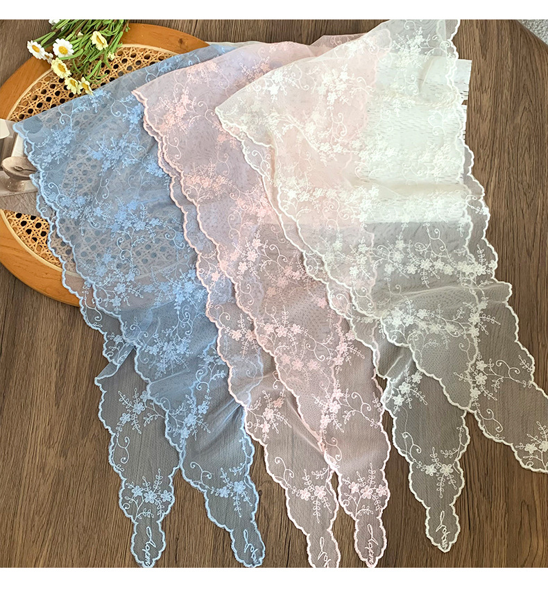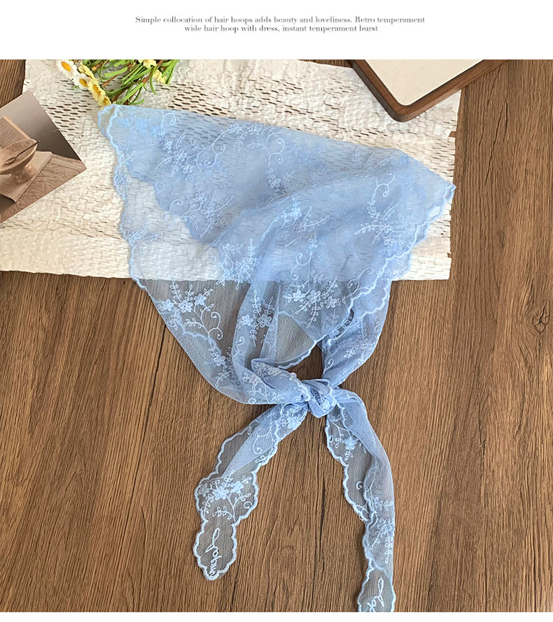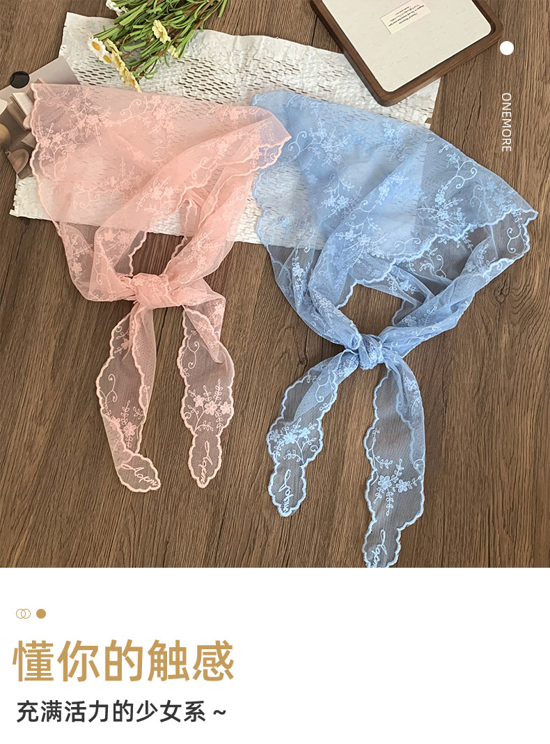 Bufanda triangular de encaje Nuevo estilo Bufanda de cuello Bufanda de seda Bufanda de seda Sensación de alta calidad Bufanda de estilo pastoral femenino Cinturón para el cabello Tragando serpentinas para el cabello