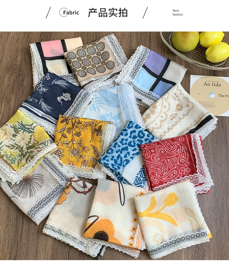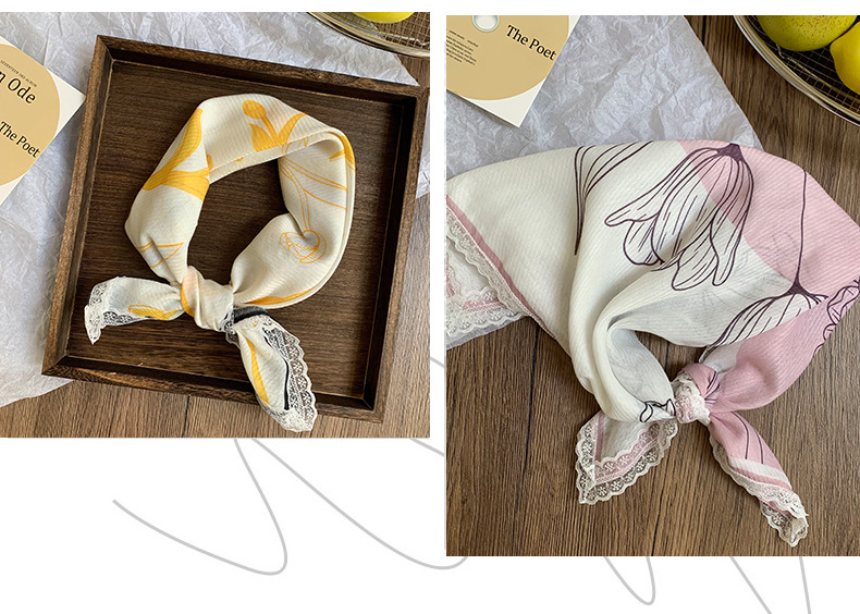 Buñuelo de seda cuello pequeño buñuelo cuadrado primavera y verano nueva moda decoración buñuelo de cuello paquete buñuelo de cabeza buñuelo de verano buñuelo de cabello buñuelo de cabello