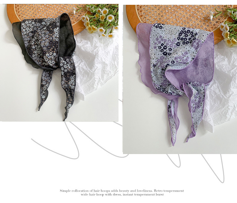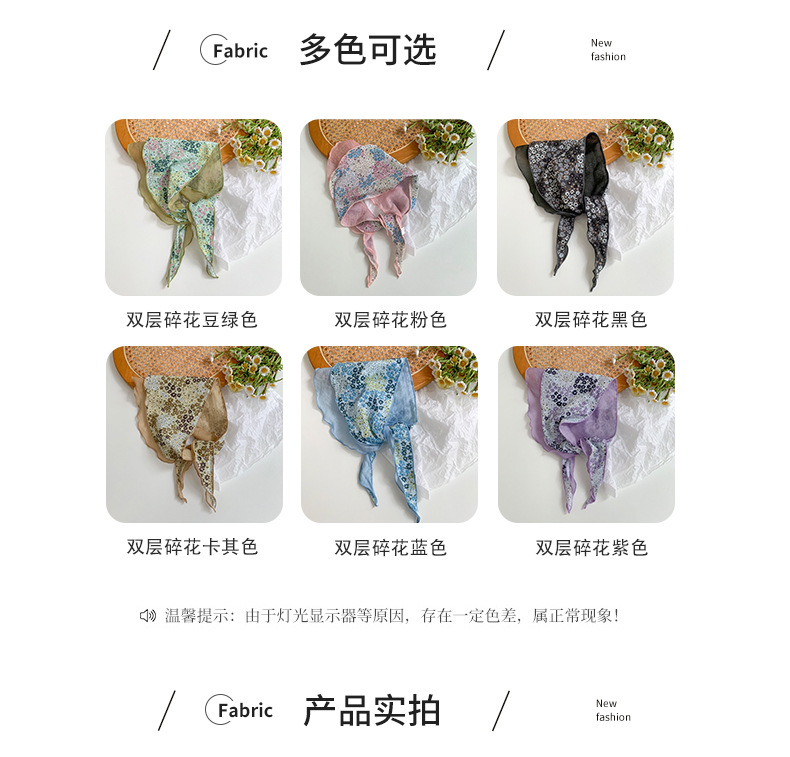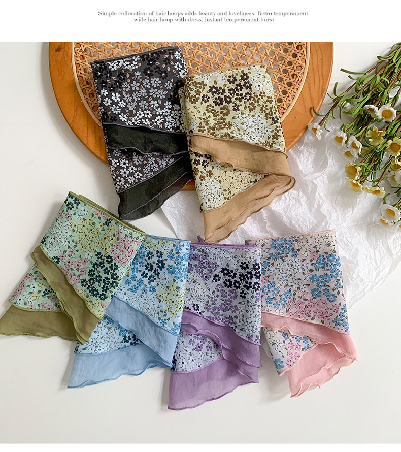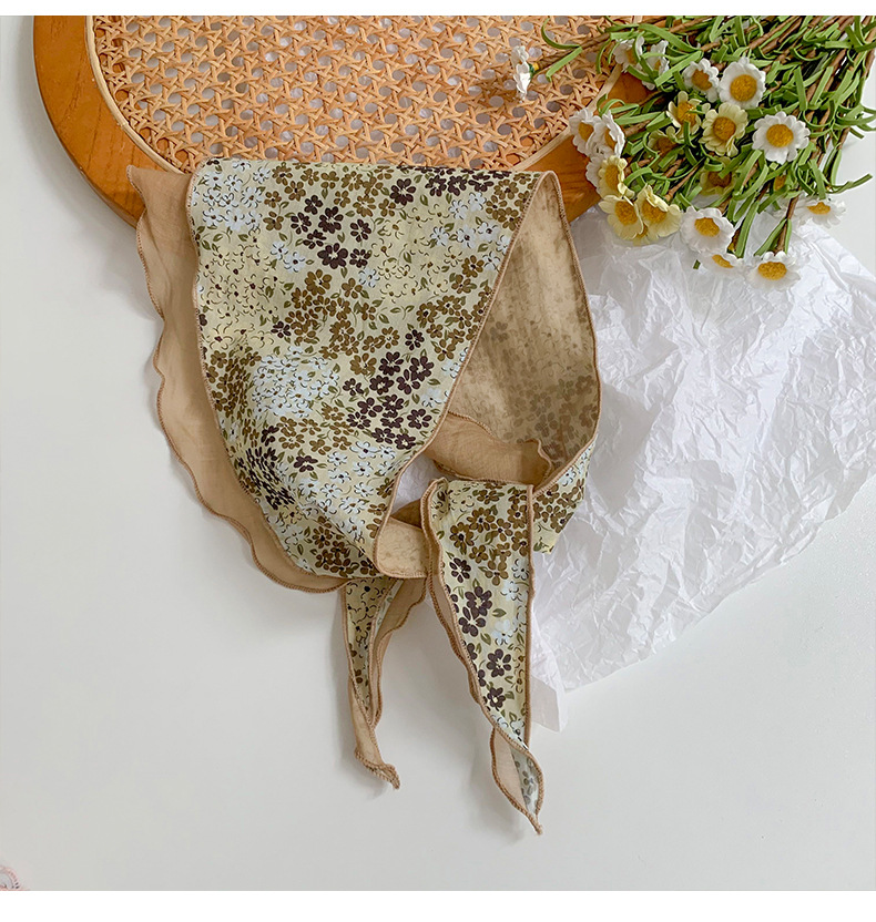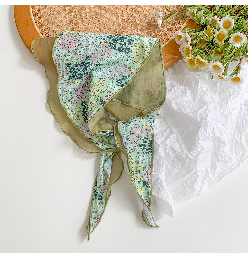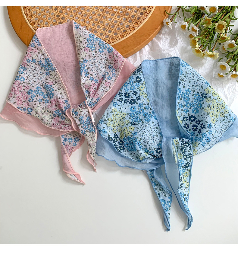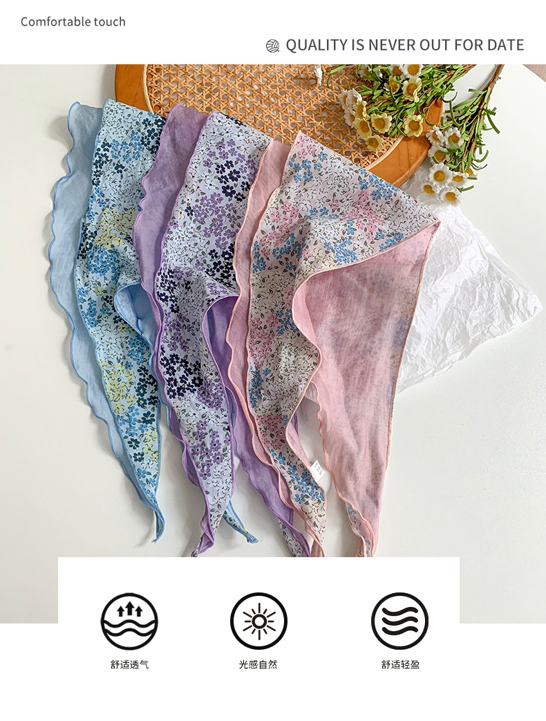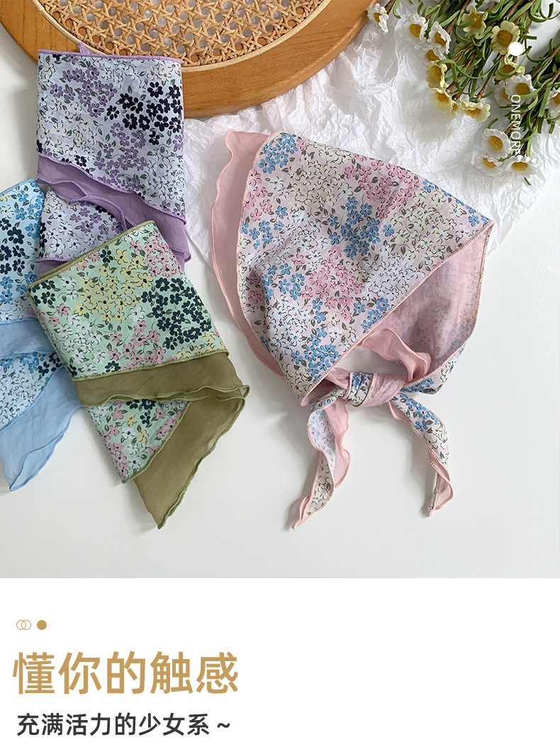 Estilo japonés y coreano arte fresco color a juego algodón de seda cielo en forma de diamante costura bufanda pequeña bufanda triangular bufanda transpirable floral femenina