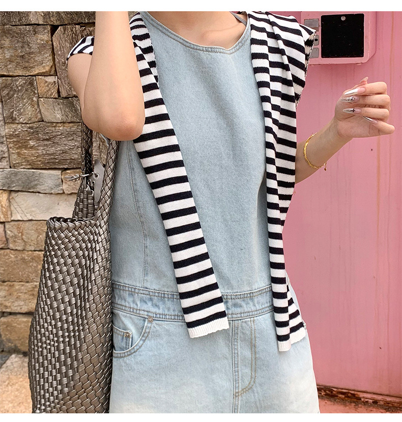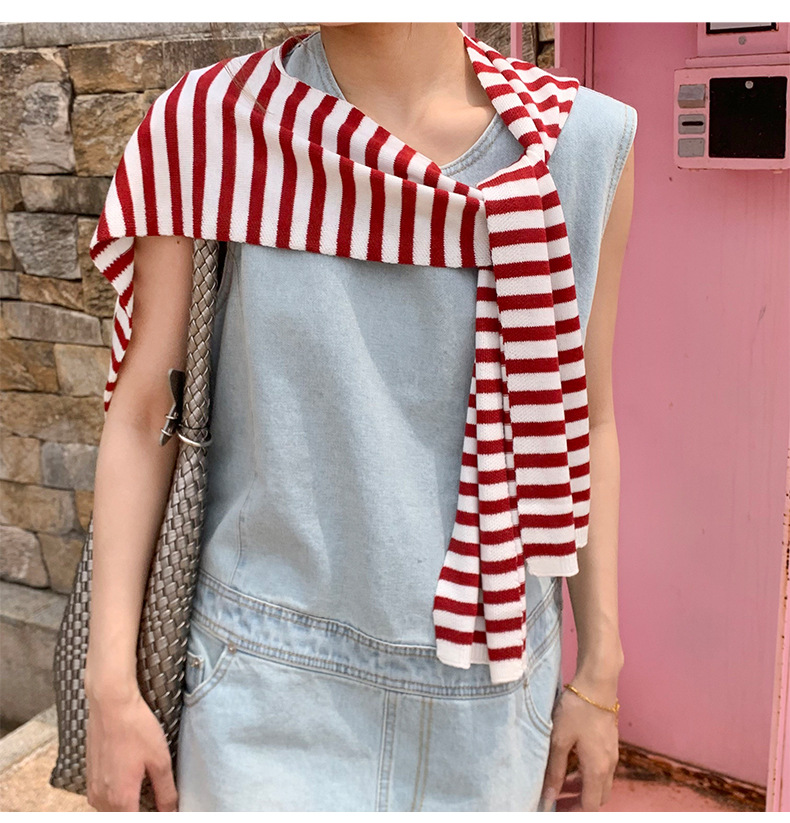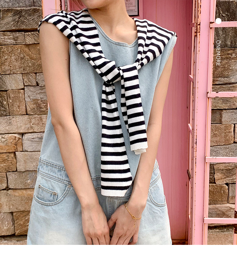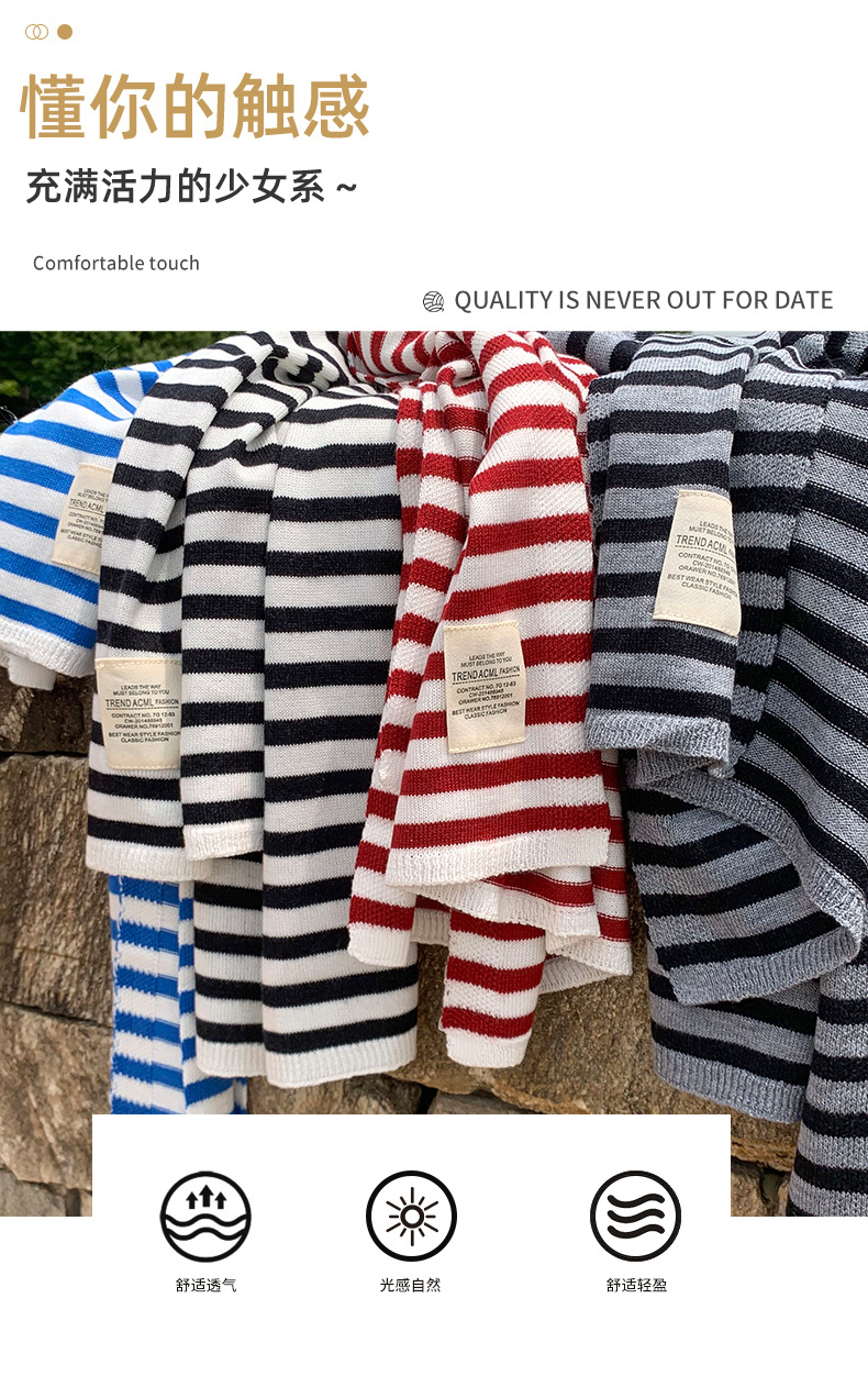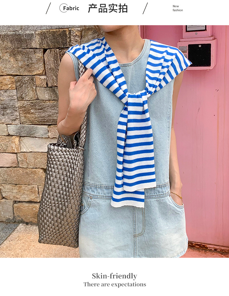 Primavera y verano fuera rayas de protección solar pequeña camisa de punto de alta calidad con aire extranjero estilo coreano aire acondicionado hombro