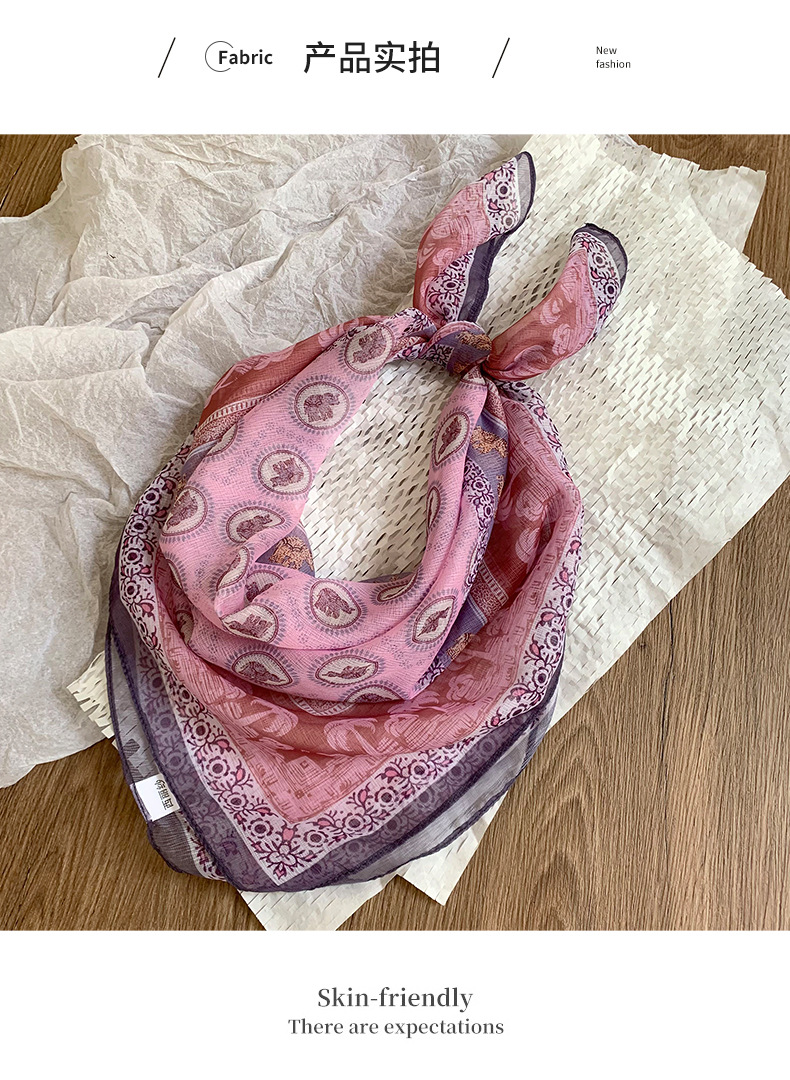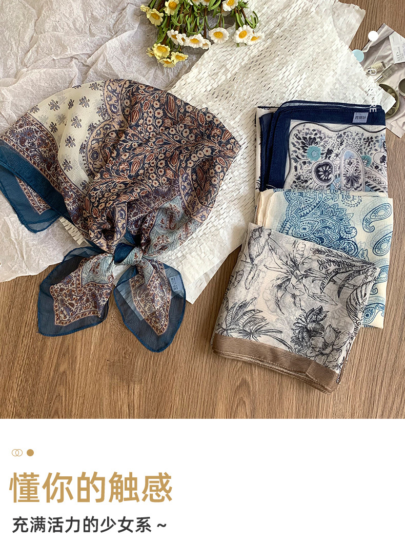 Bufanda de seda, bufanda cuadrada pequeña, personalidad retro, textura de algodón y lino, turbante, banda para el cabello, habitación con aire acondicionado de verano, protección para el cuello, chal exterior