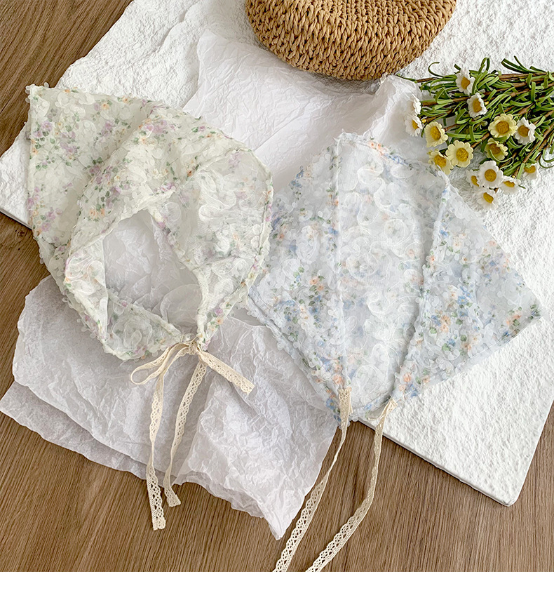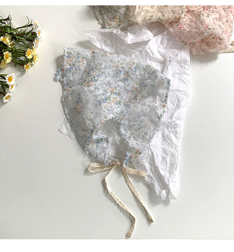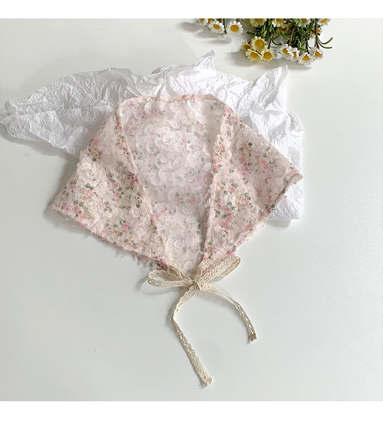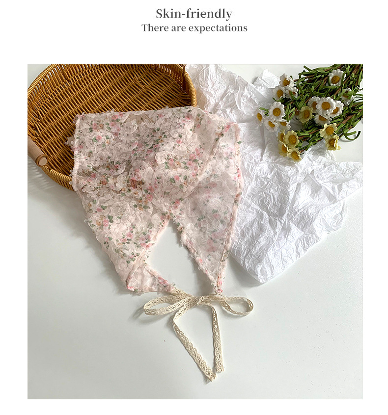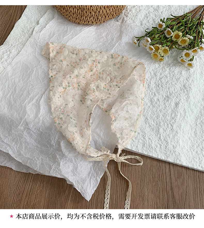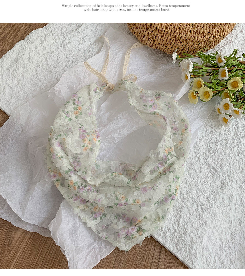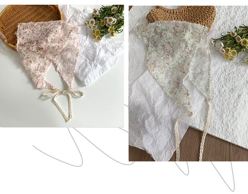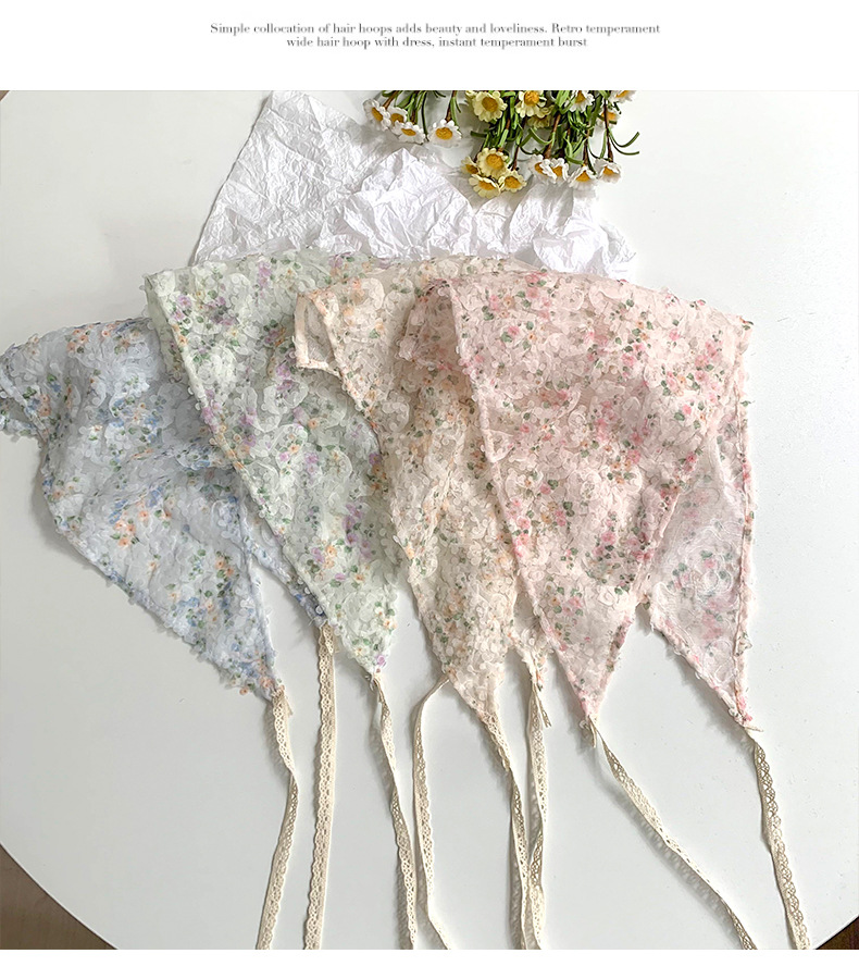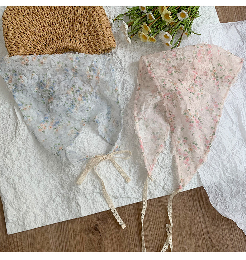 Bufanda triangular, bufanda de seda pequeña estampada para mujer, sentido avanzado, nueva versión coreana, bufanda pequeña de encaje decorativo, pañuelo en la cabeza, cinturón para el cabello, cabello atado