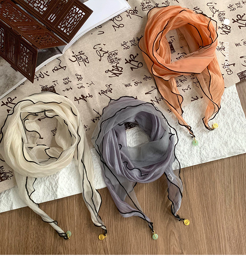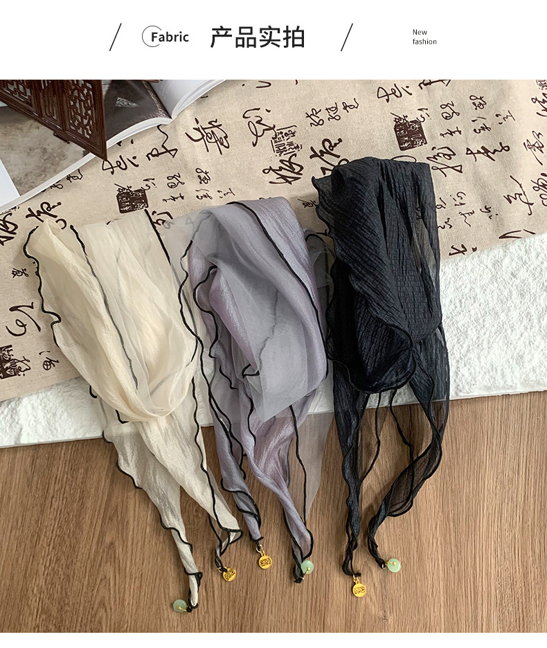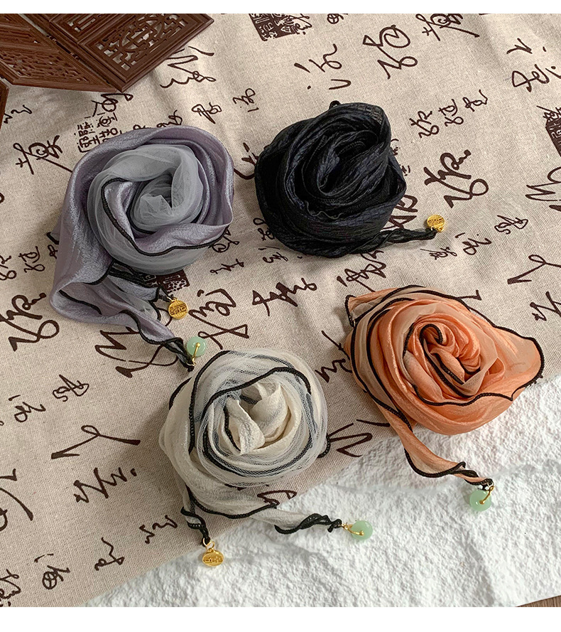 Pañuelo de seda de alta calidad nuevo estilo de verano en forma de diamante bufanda pequeña diseño de color sólido sentido colgante pequeño bufanda de estilo fino bufanda de gasa pañuelo en la cabeza