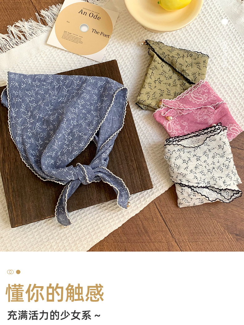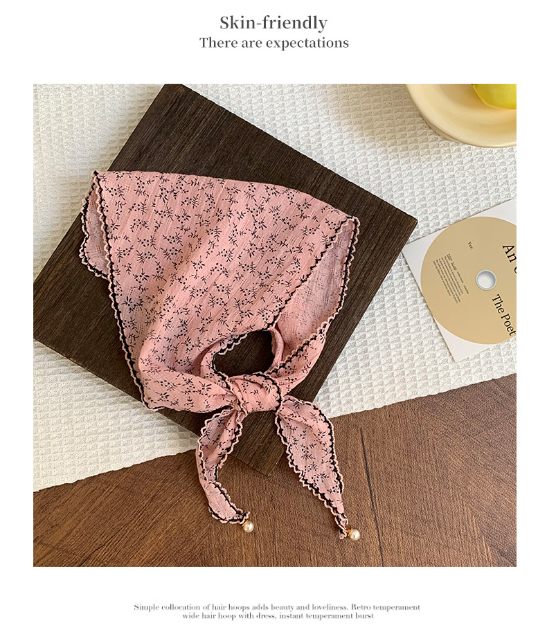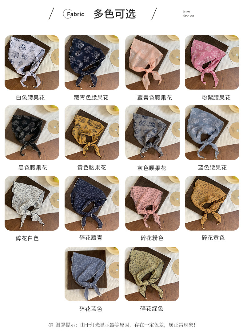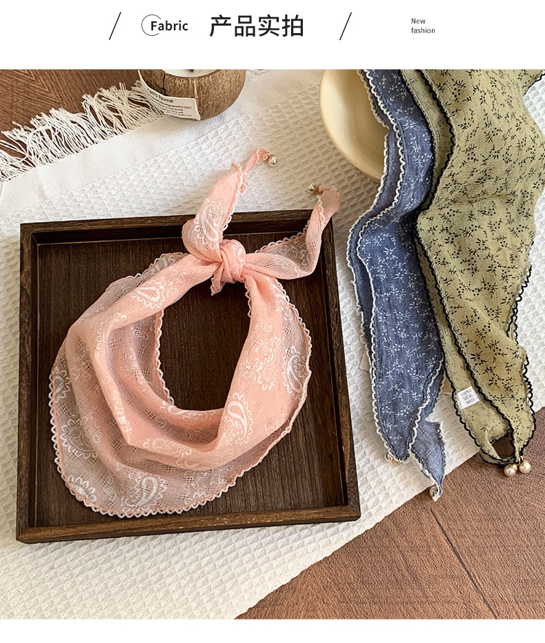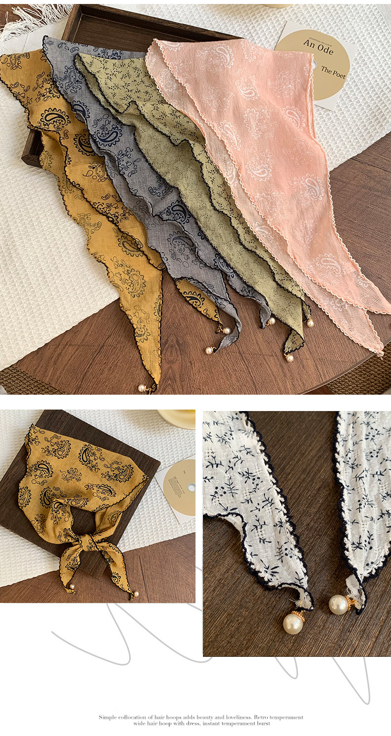 Bufanda triangular, cintura, nuevo estilo, protección para el cuello, bufanda pequeña, colgante de perlas, bufanda de seda, bolsa de flores con sentido avanzado, pañuelo en la cabeza, cinturón para el cabello al por mayor