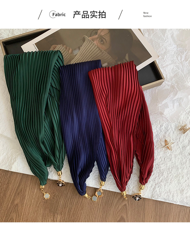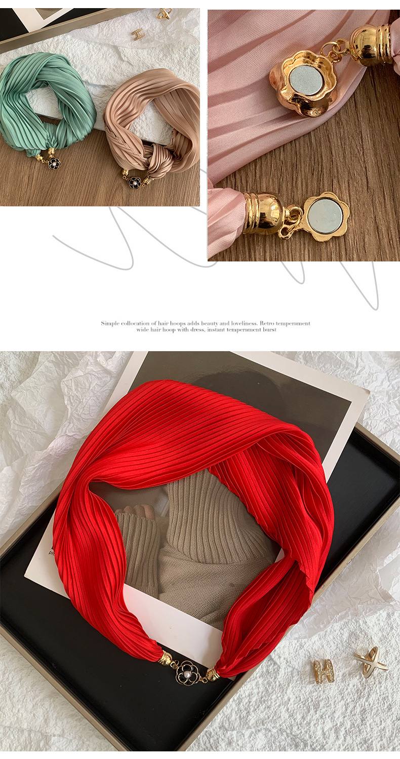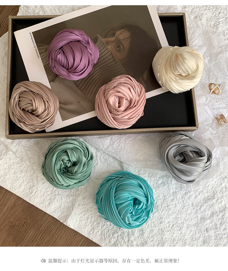 Pañuelo de seda arrugado de seda de imitación magnética con hebilla de rosa de color sólido de verano, protector solar, bufanda decorativa profesional ligera de todo fósforo
