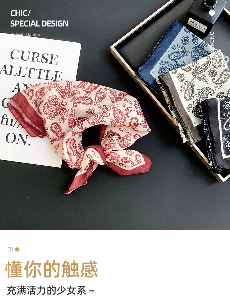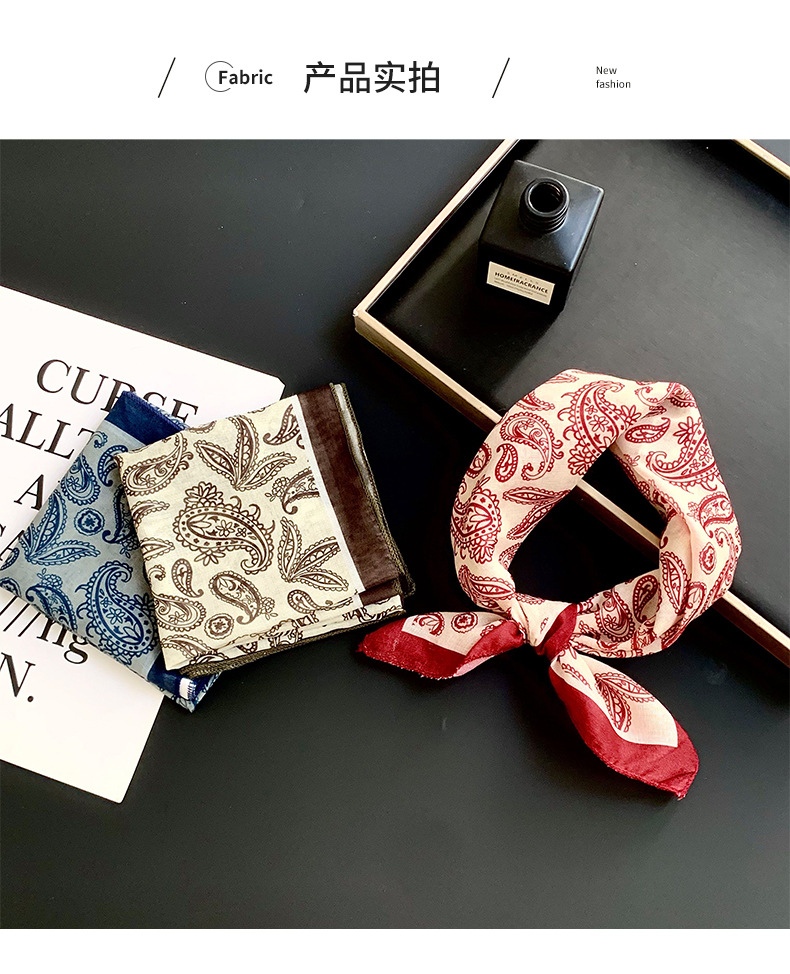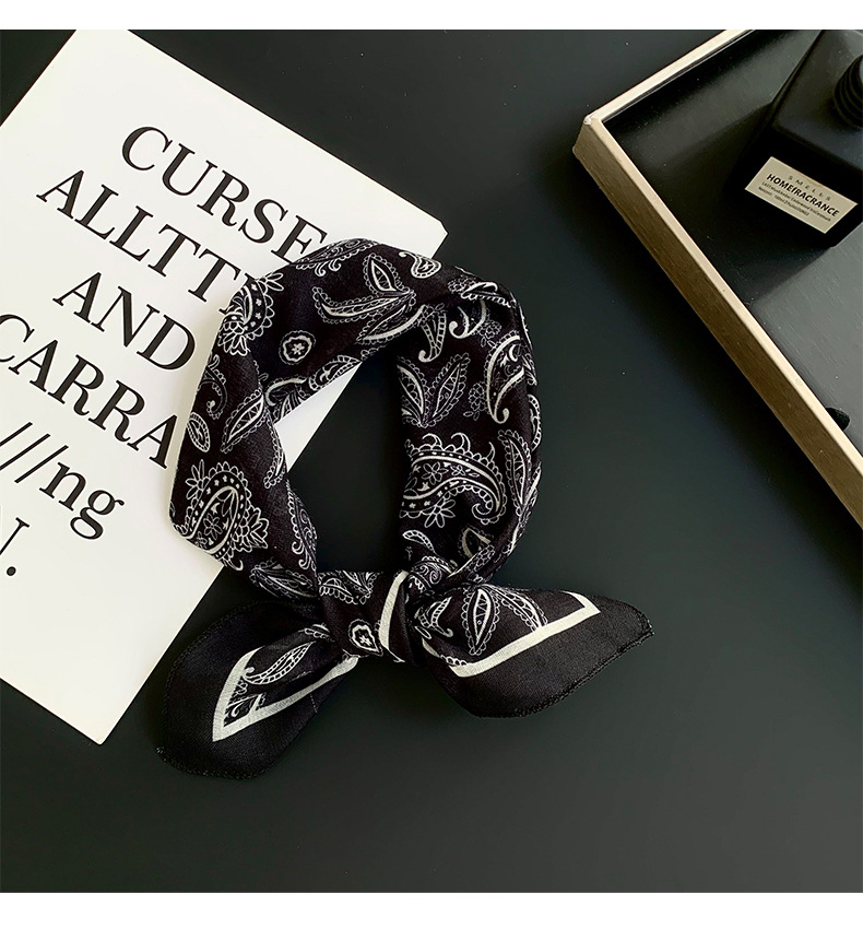 Pañuelo de seda de alta calidad, cuello de flor de anacardo negro, bufanda cuadrada pequeña, protección para el cuello, bufanda pequeña, correa para el cabello, cinta para el cabello, toalla de cintura decorativa