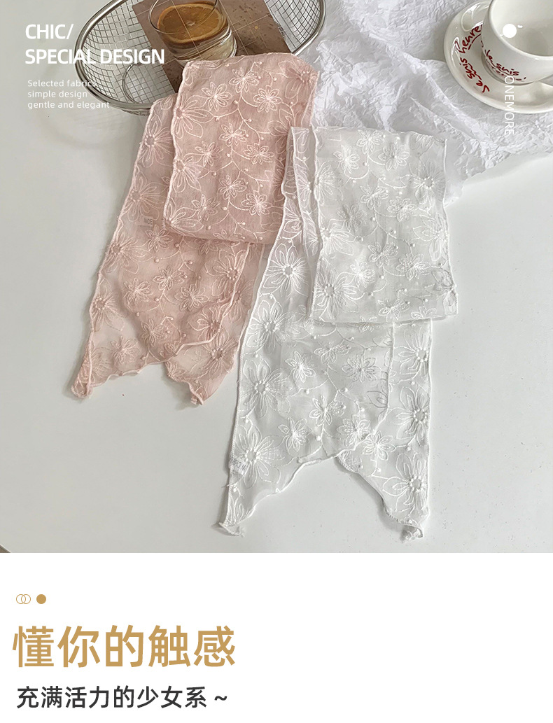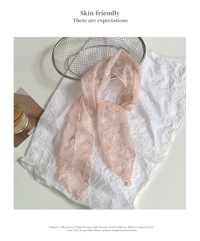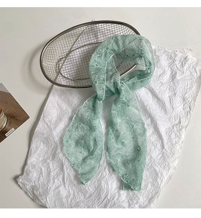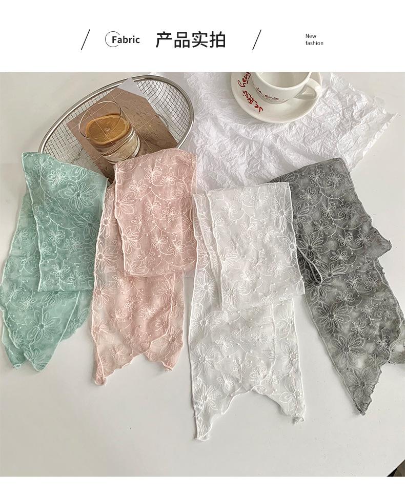 Pañuelo de seda de encaje, tira larga, sentido de alta gama, nueva primavera y verano, dulce cinta bordada, bufanda pequeña multiusos, cinta de bolsa atada