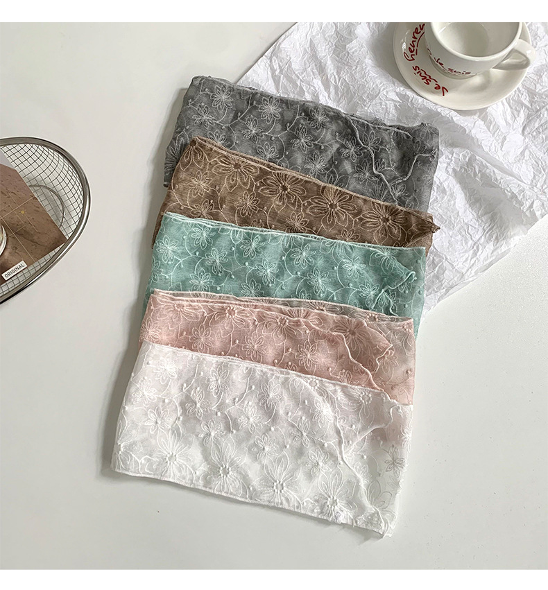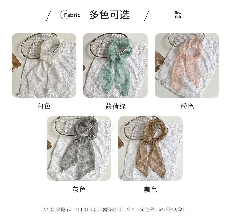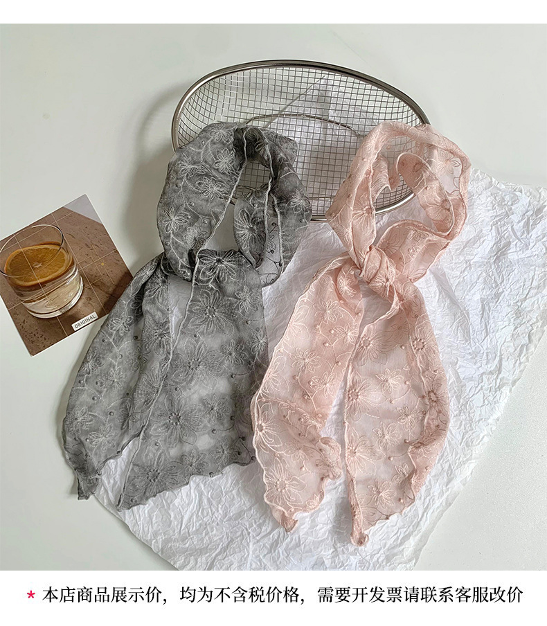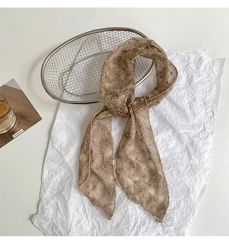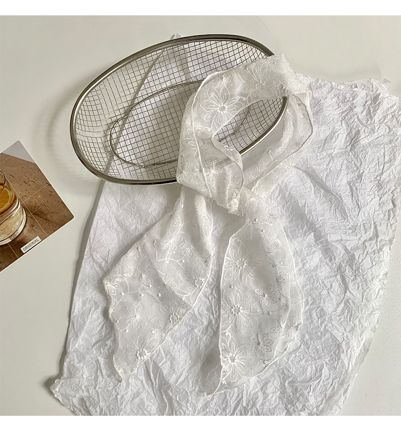 Pañuelo de seda de encaje, tira larga, sentido de alta gama, nueva primavera y verano, dulce cinta bordada, bufanda pequeña multiusos, cinta de bolsa atada