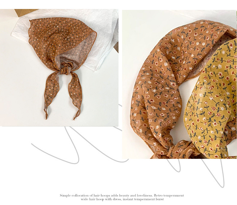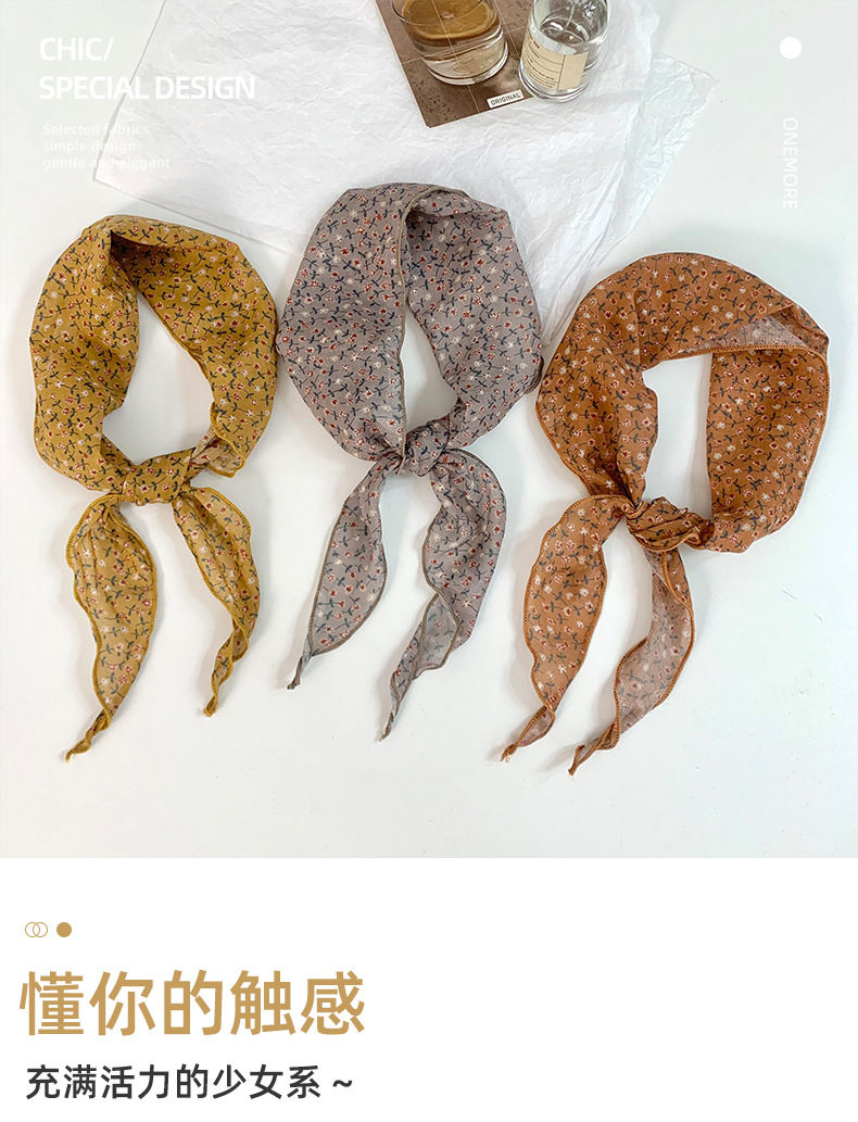 Bufanda triangular floral, bufanda, bufanda pequeña, nuevo estilo de verano, bufanda de seda de todo fósforo, pañuelo en la cabeza, diadema pastoral femenina de verano, accesorios para el cabello al por mayor