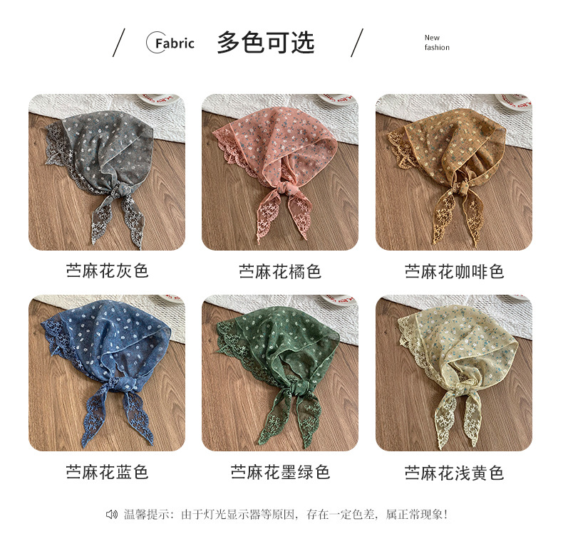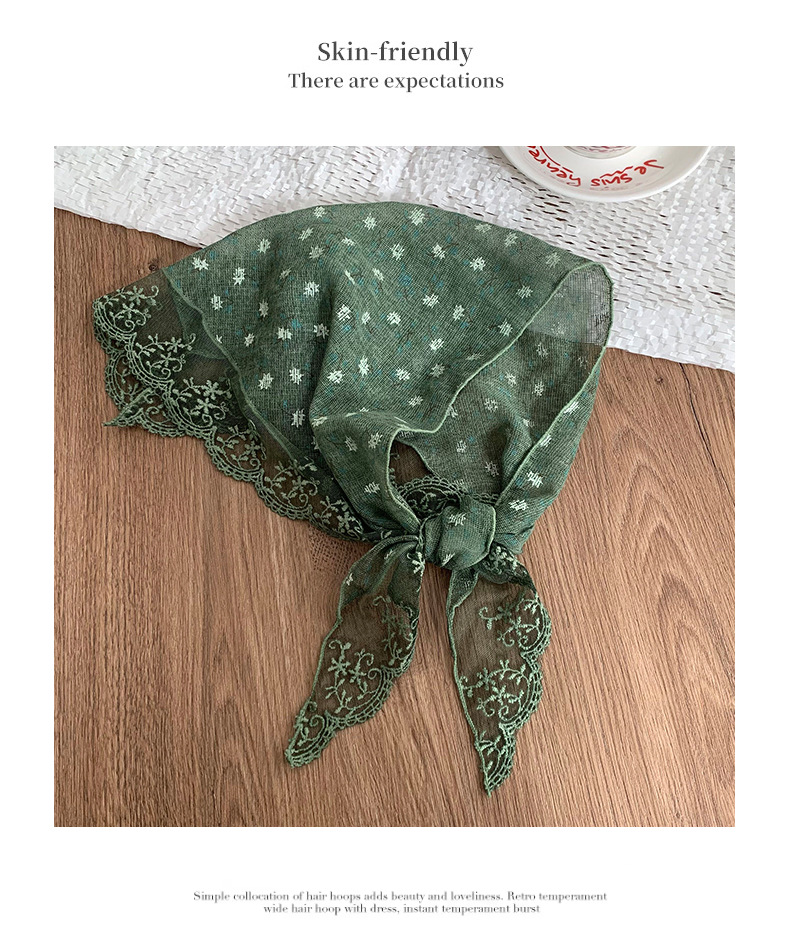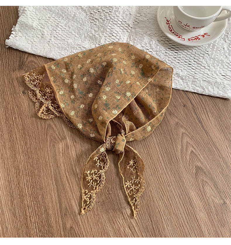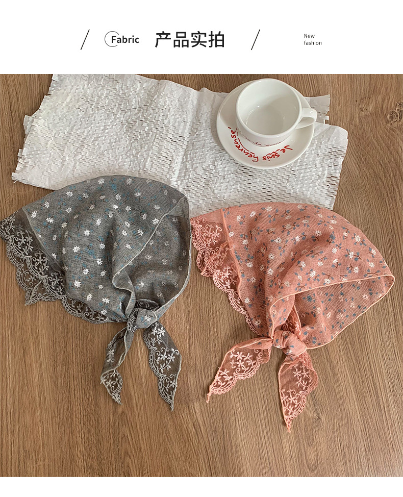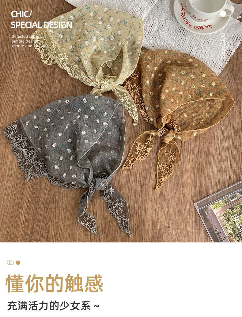 Bufanda triangular babero mujer primavera y verano nuevo estilo encaje borde floral cuello bufanda bufanda diadema pastoral femenina tocado accesorios para el cabello