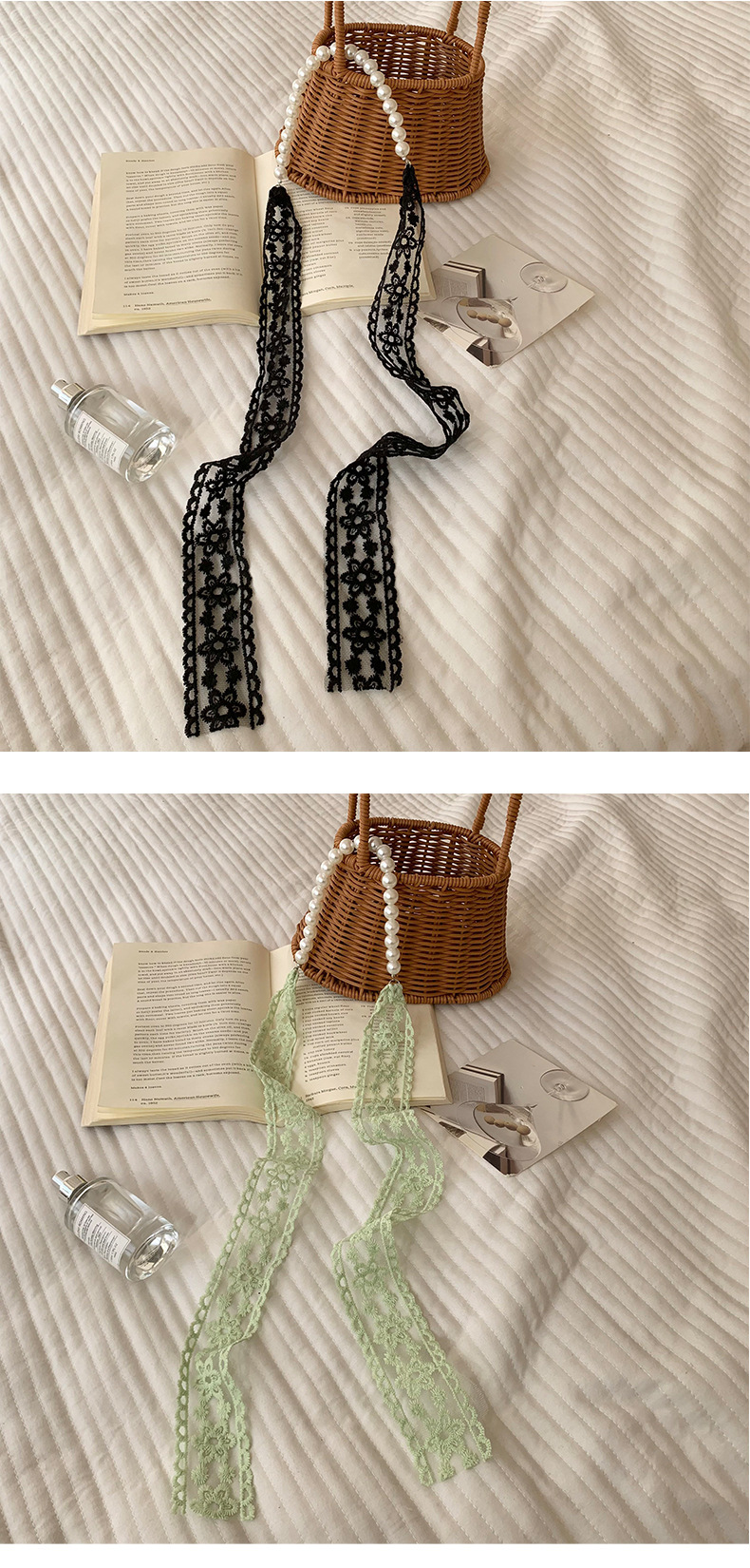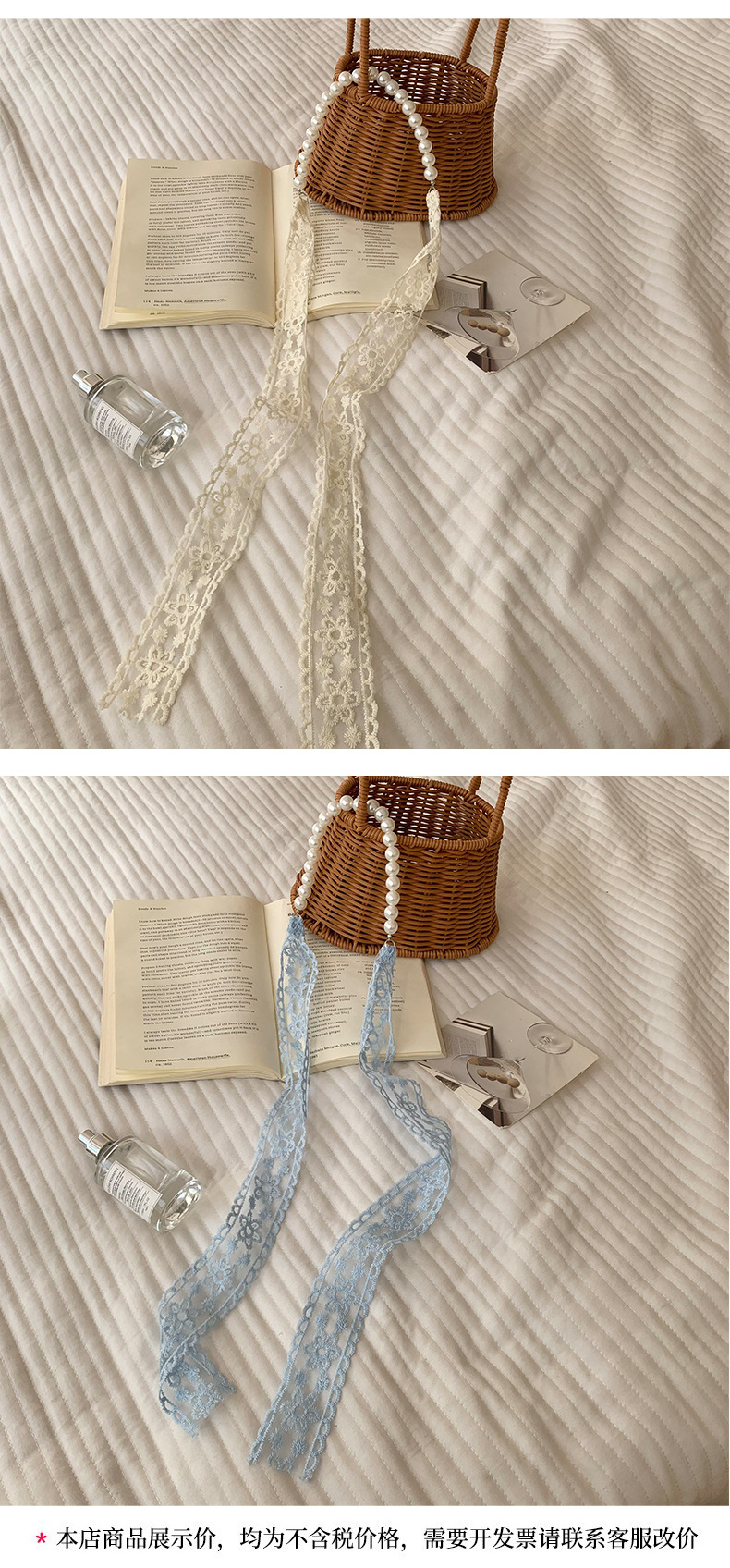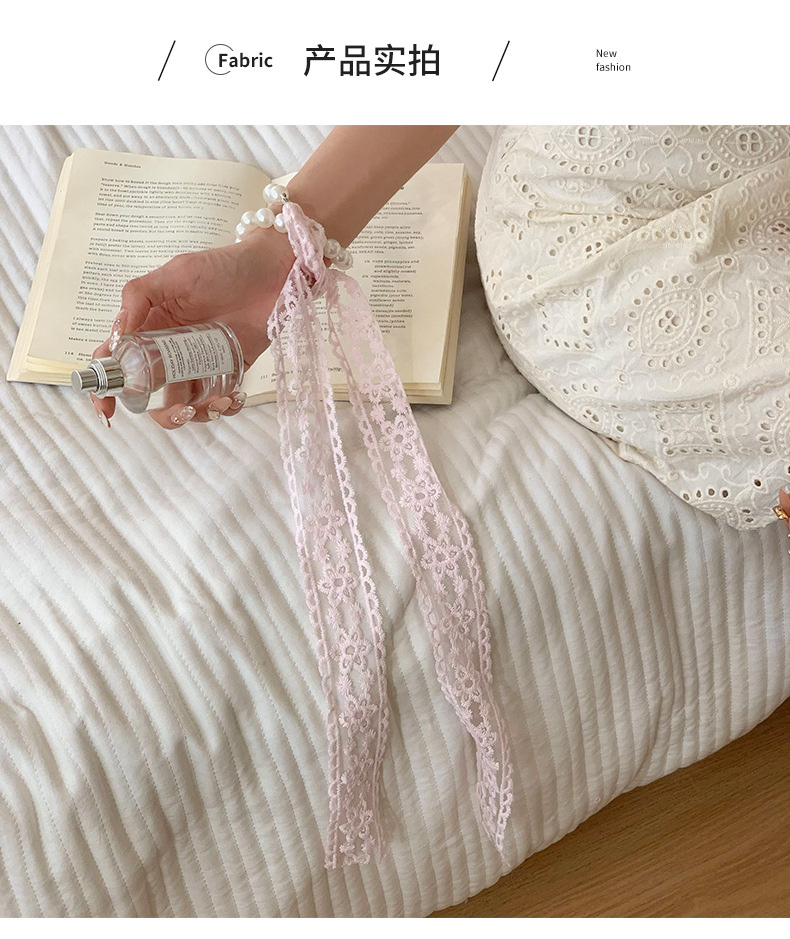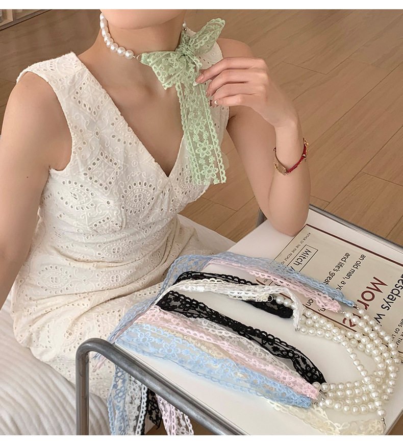 Pañuelo de seda de encaje, bolso tejido de alta calidad, regalo de mano de perlas, collar de perlas, bufanda de cadena de clavícula