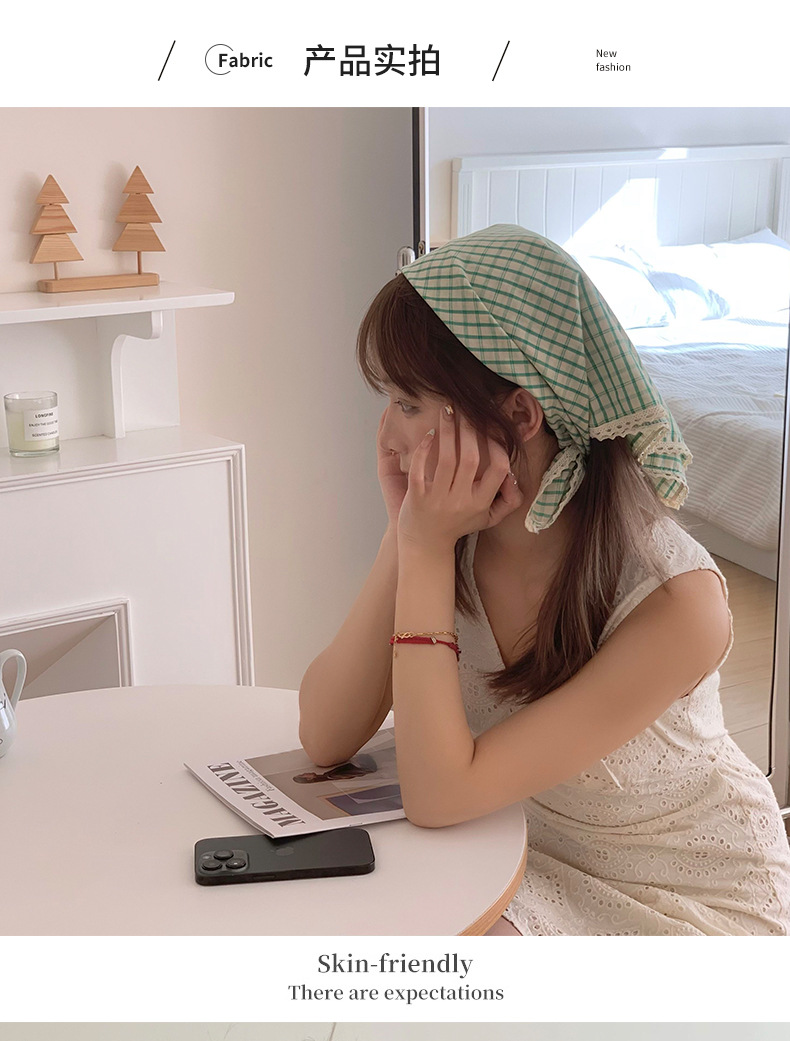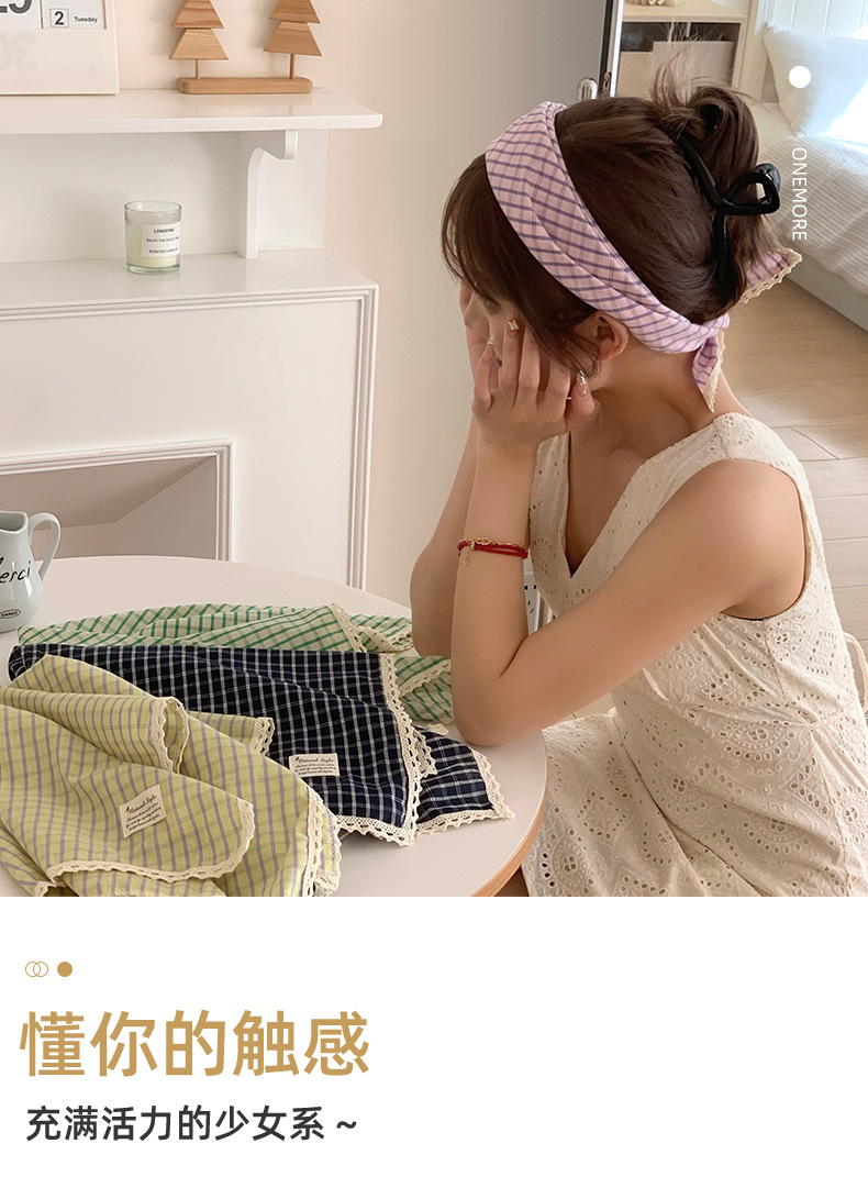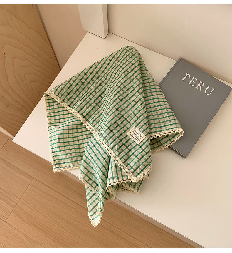 Pañuelo a cuadros, niña de verano, pastoral, nuevo estilo, bufanda de seda de lino y algodón fresco, bufanda cuadrada pequeña con cuello, bufanda decorativa para el cabello, bufanda al por mayor