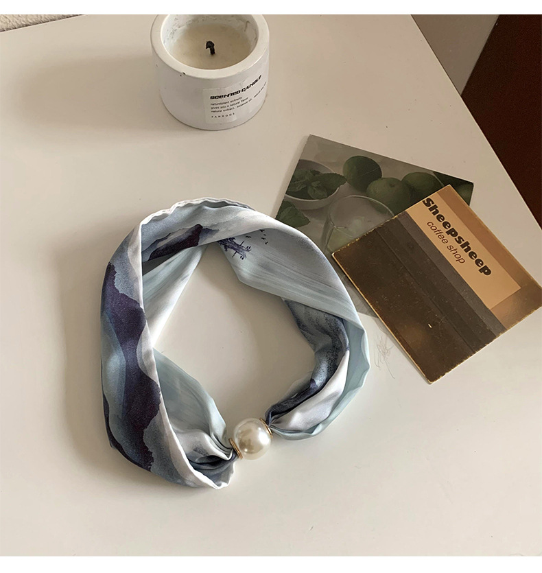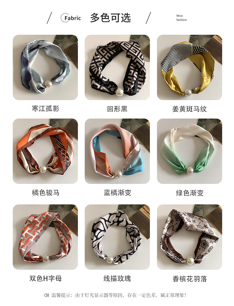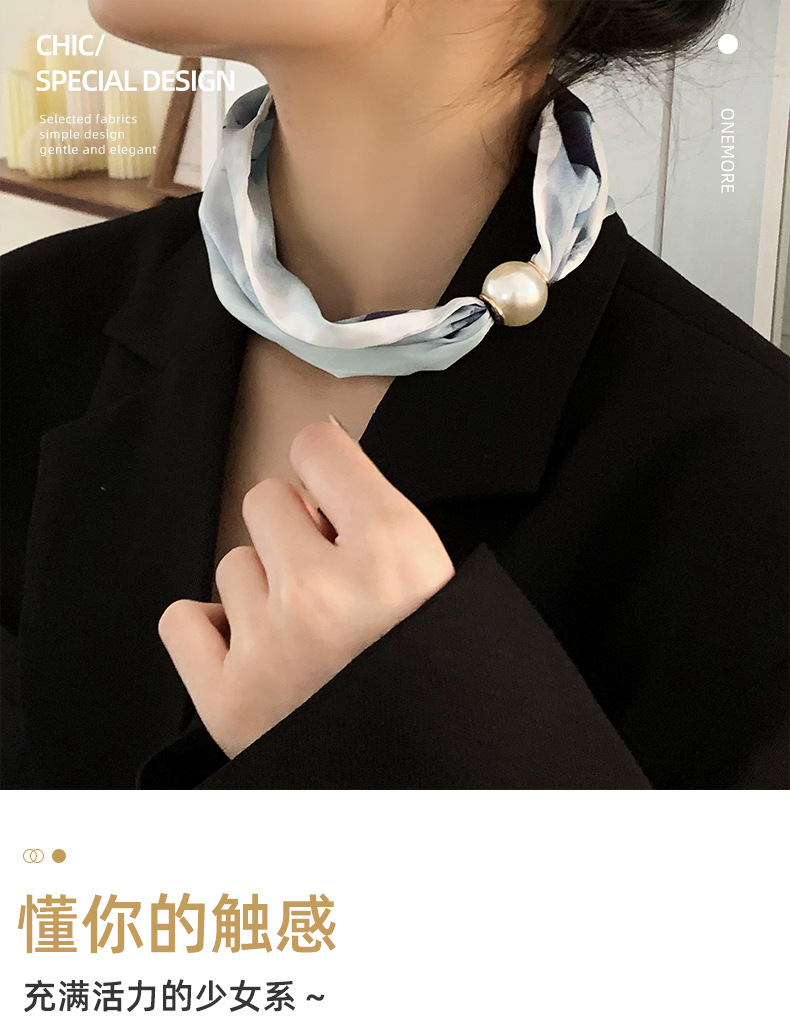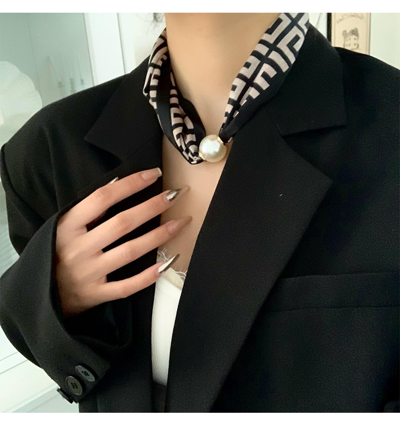 Bufanda de seda para mujer, sentido largo de alta calidad, primavera y verano, nueva versión coreana del collar de perlas de todo fósforo, bufanda de seda con hebilla magnética al por mayor