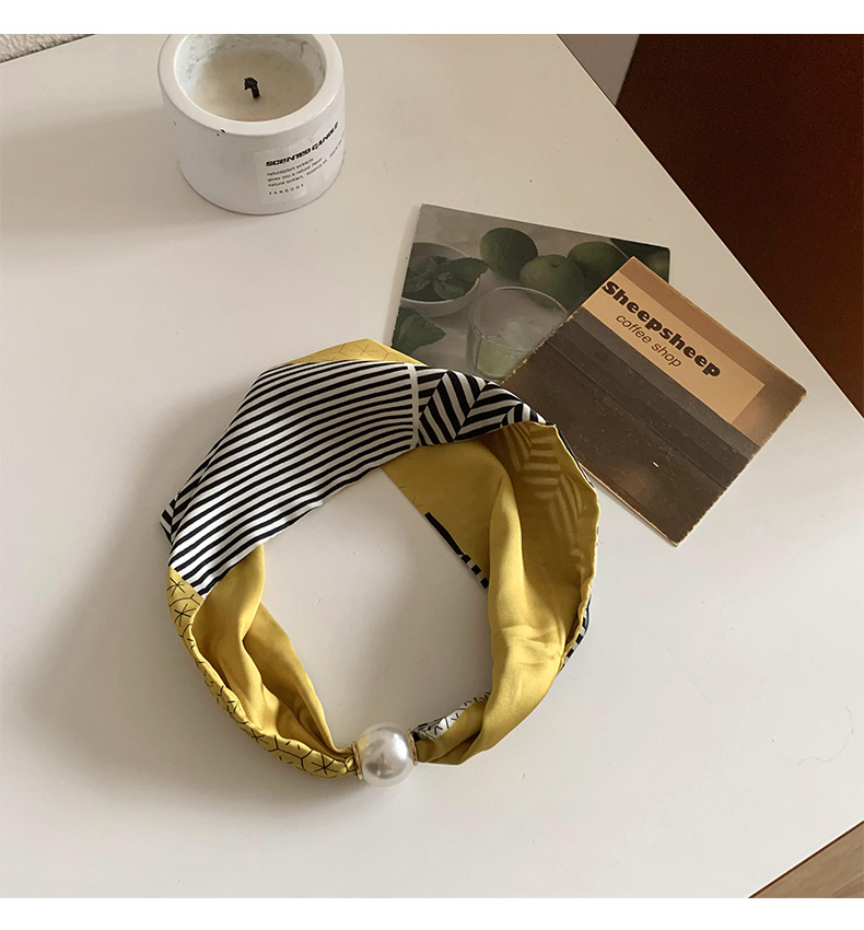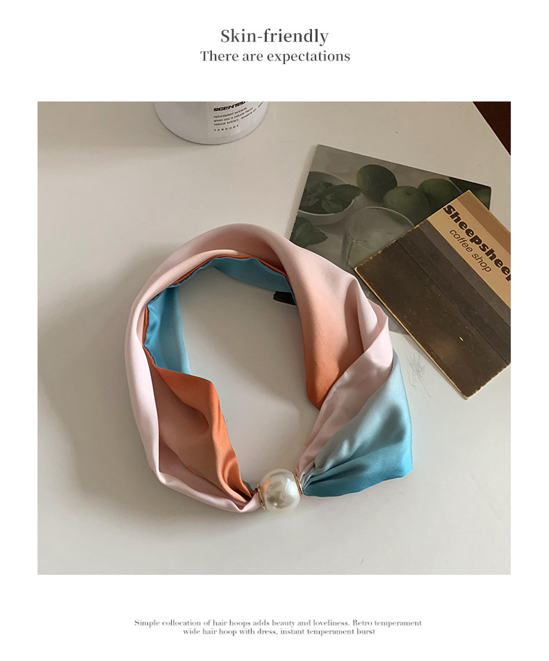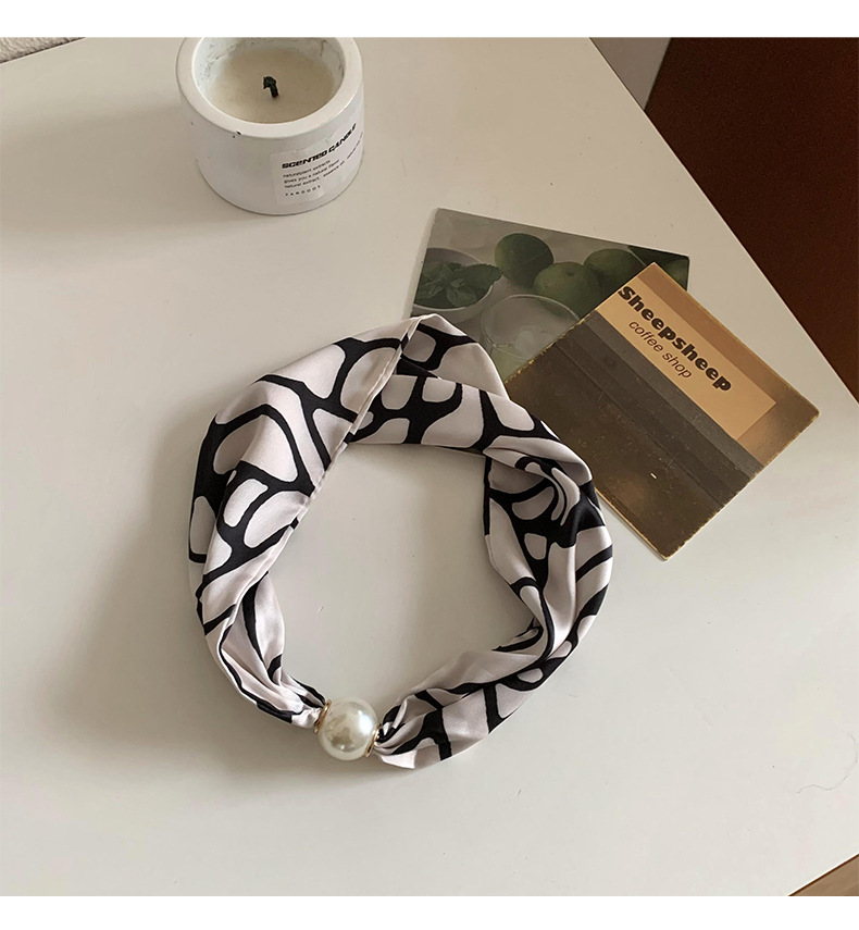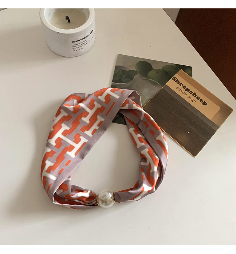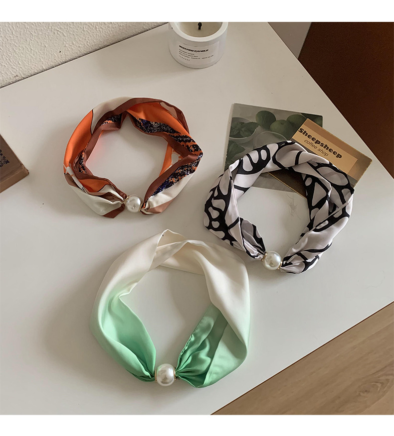 Bufanda de seda para mujer, sentido largo de alta calidad, primavera y verano, nueva versión coreana del collar de perlas de todo fósforo, bufanda de seda con hebilla magnética al por mayor