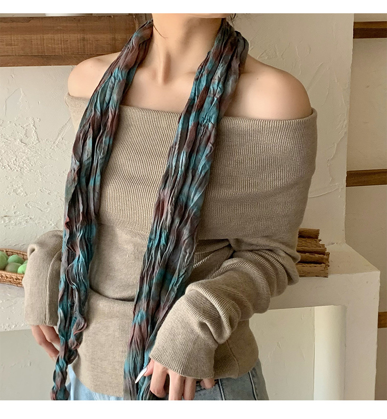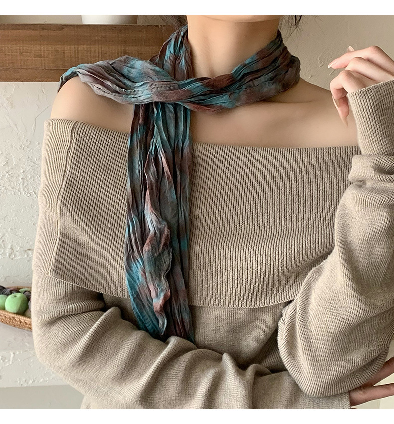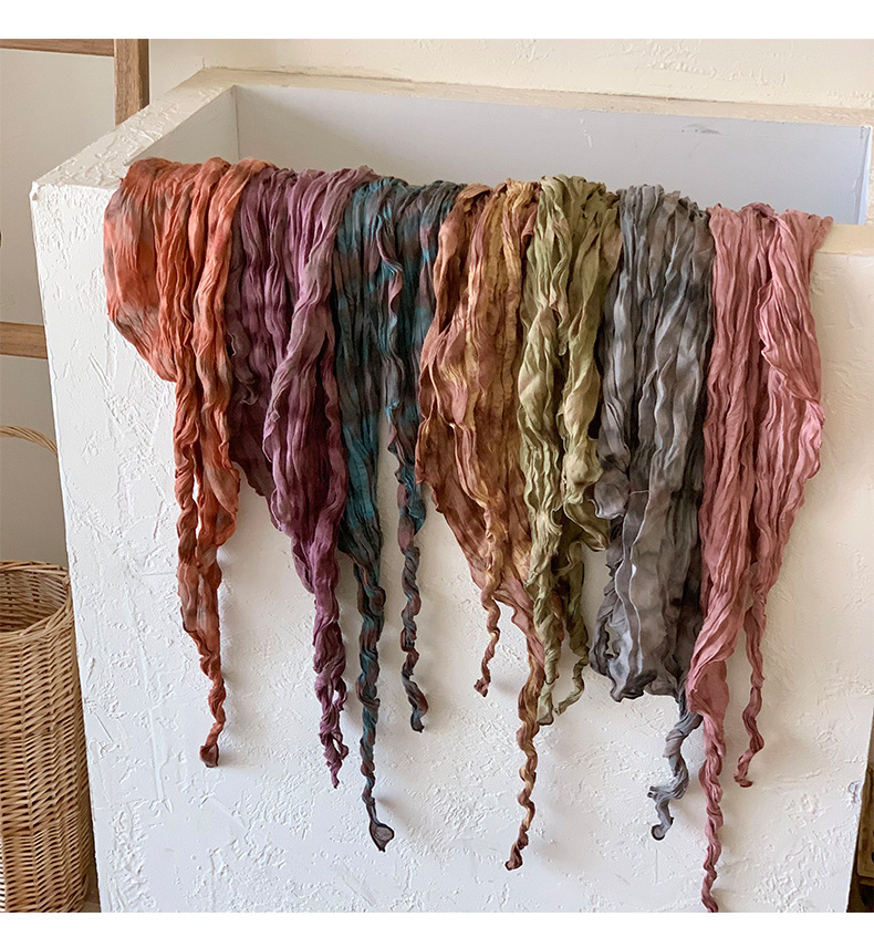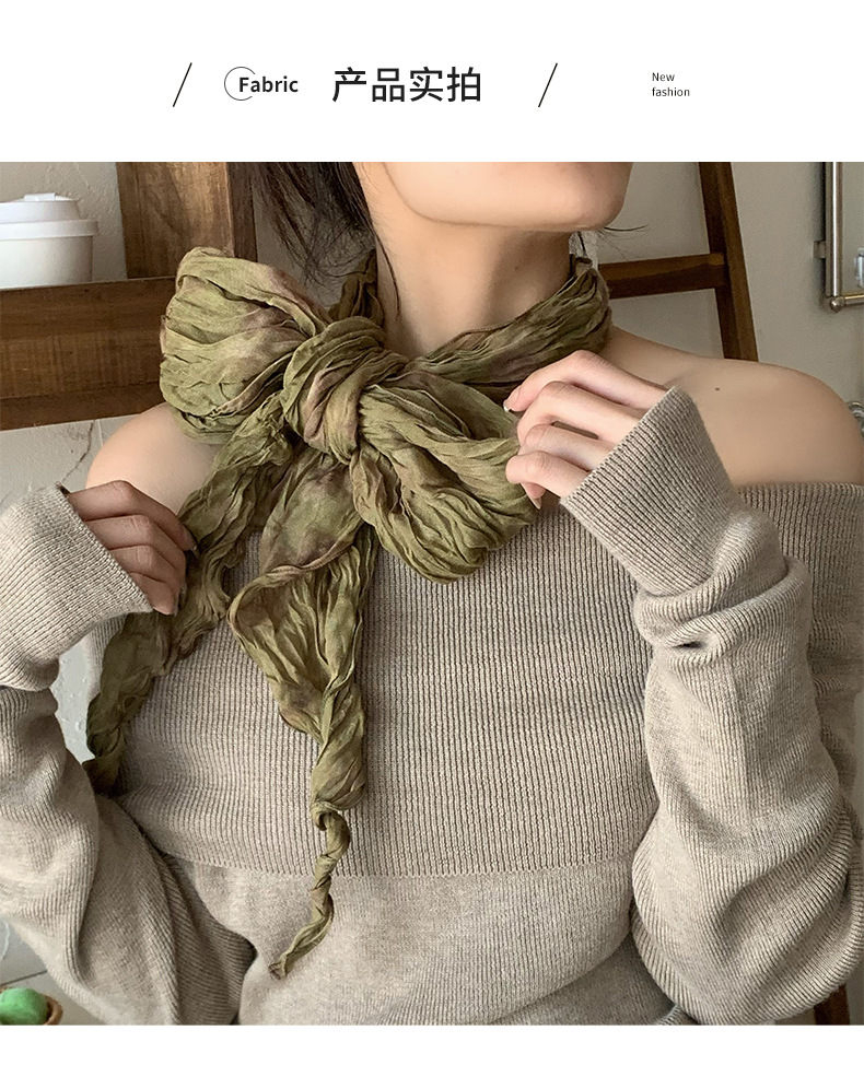 Bufanda de seda para mujer, lujo ligero, sentido de alta gama, arte japonés, color sólido, bufanda de seda plisada, bufanda de todo fósforo, bufanda de cuello