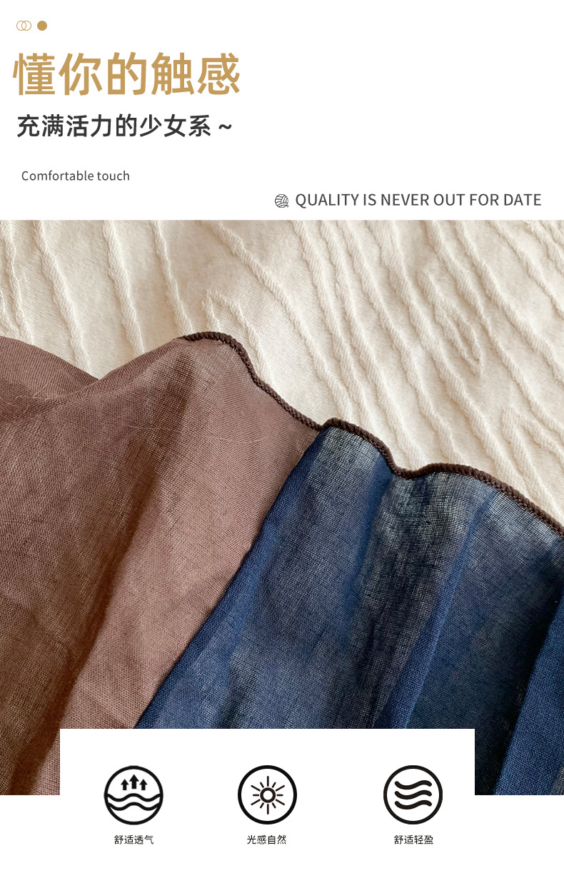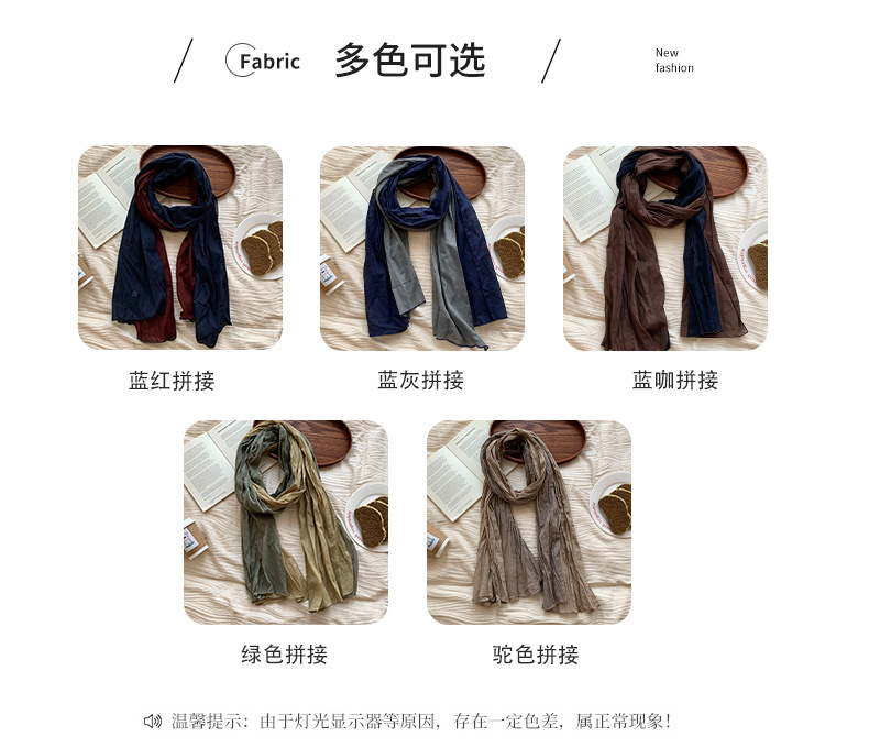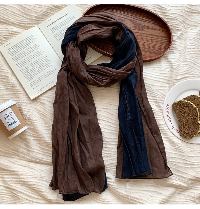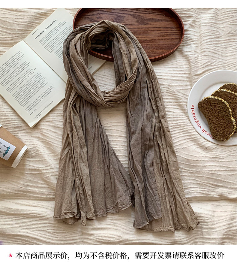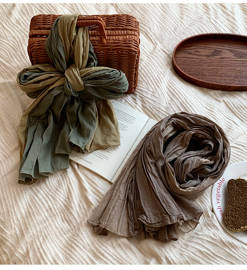 Pañuelo en la cabeza bufanda a juego de color de algodón puro primavera y verano nuevo estilo retro todo-fósforo bufanda de seda para damas bufanda plisada chal de punto al por mayor