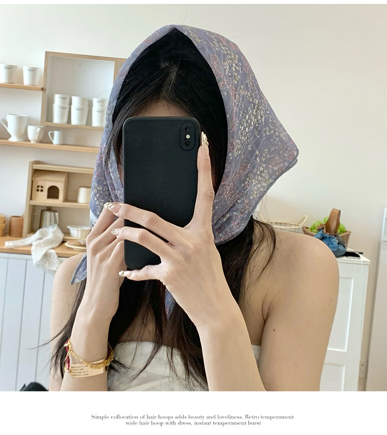 Buñuelo de seda de primavera y otoño nuevo buñuelo cuadrado de flores pequeñas buñuelo foto toque de cabeza pequeño cinturón de cabello fresco