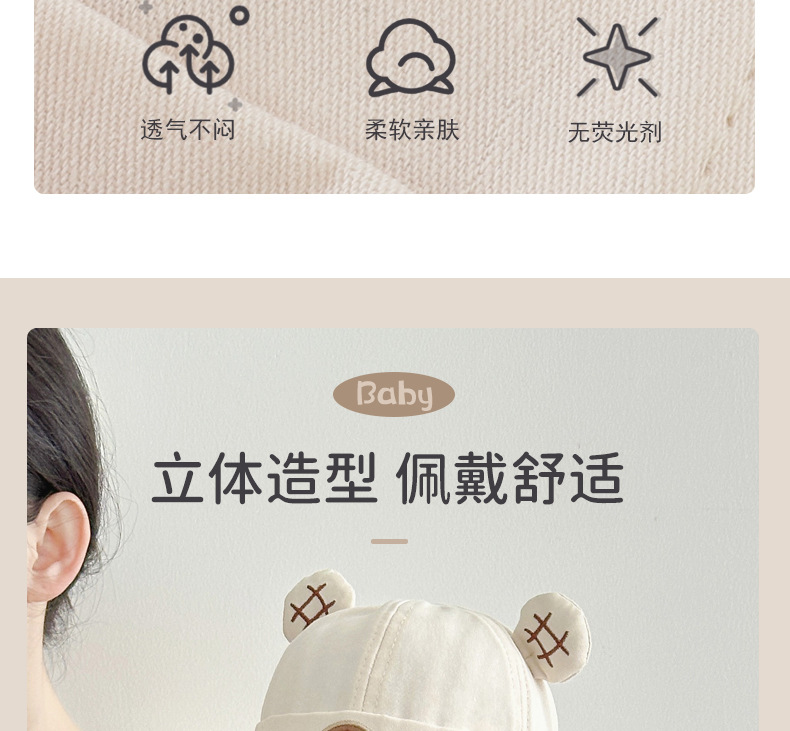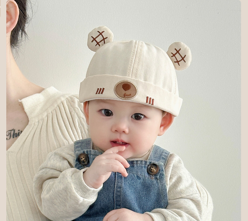 Sombrero para bebés primavera y otoño estilo coreano lindo oso algodón sombrero de primavera delgado bebé sombrero de piel de melón universal