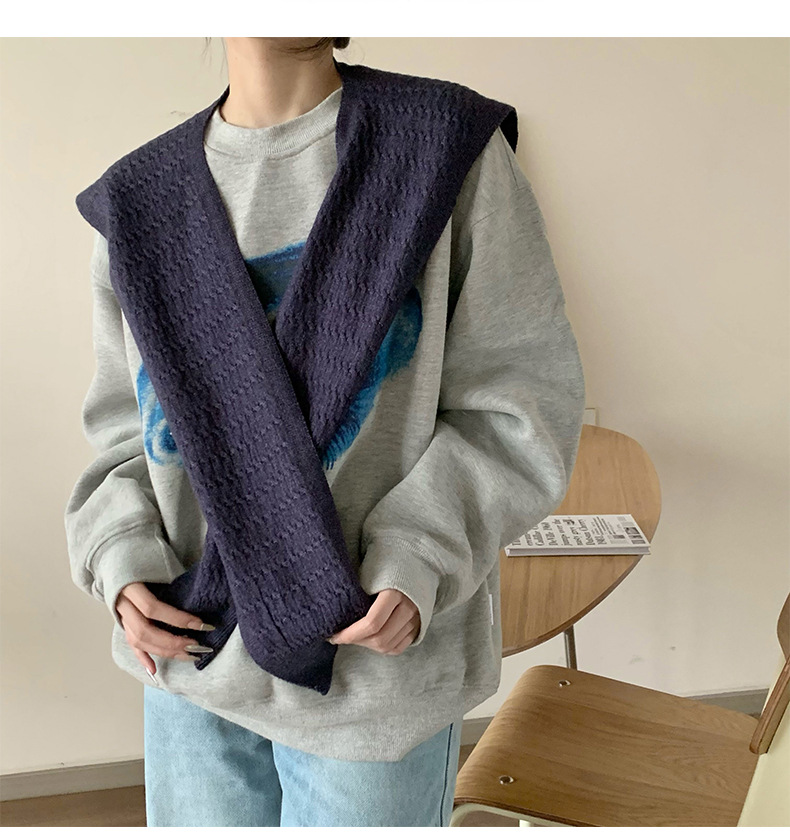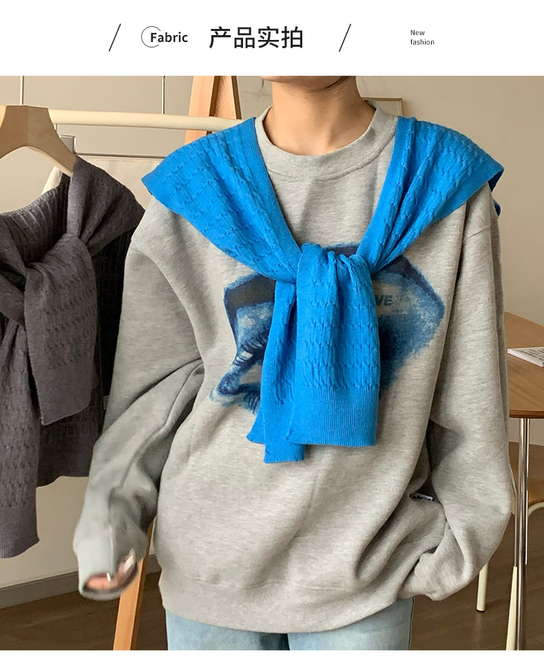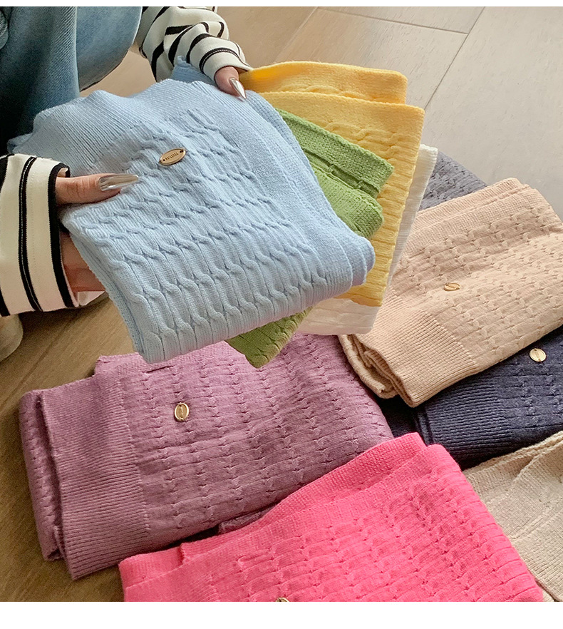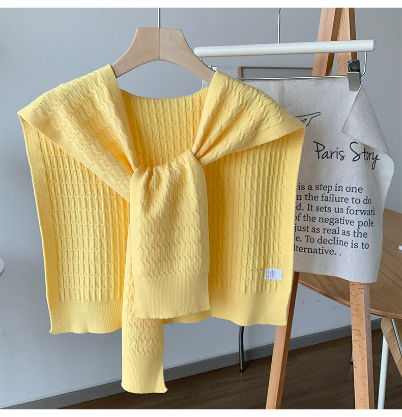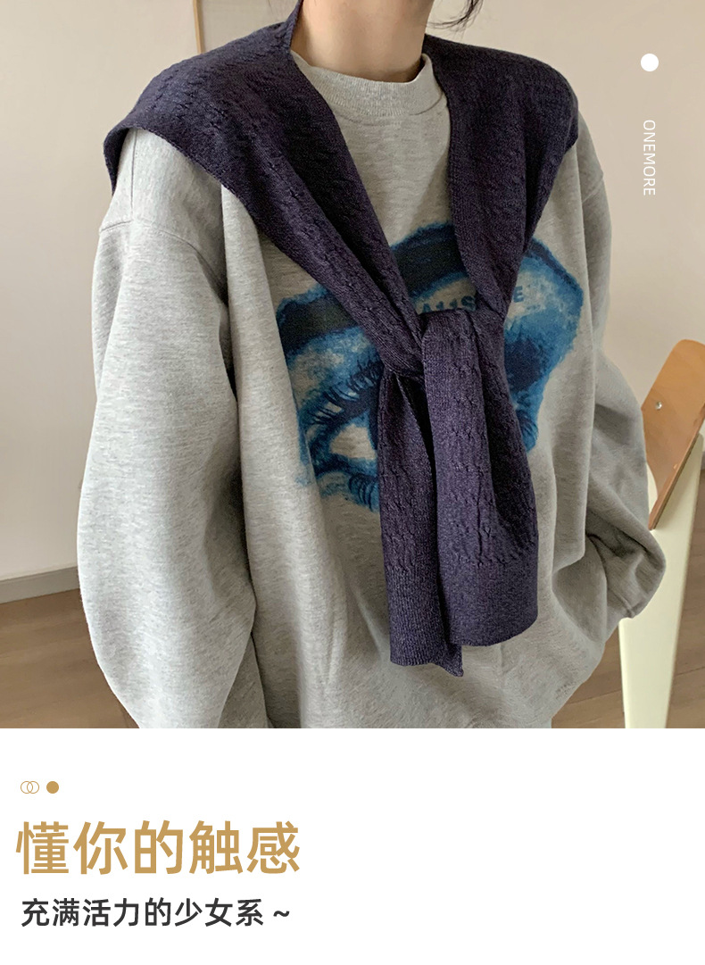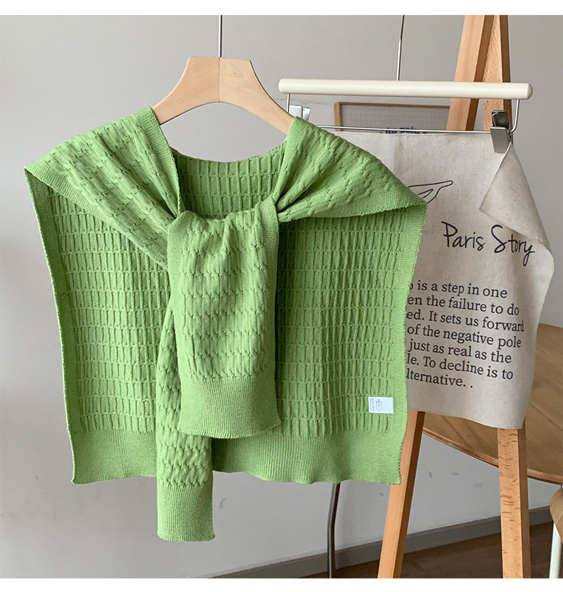 Sopa de punto de alta sensación de color sólido primavera y verano nuevo tipo de aire acondicionado cuello de protección texturizado sopa de pequeño hombro