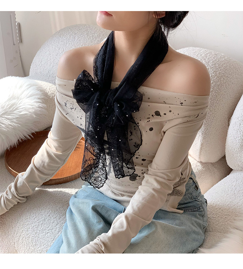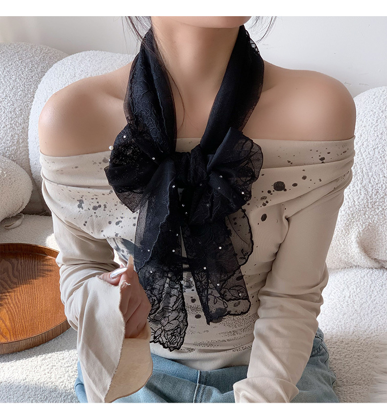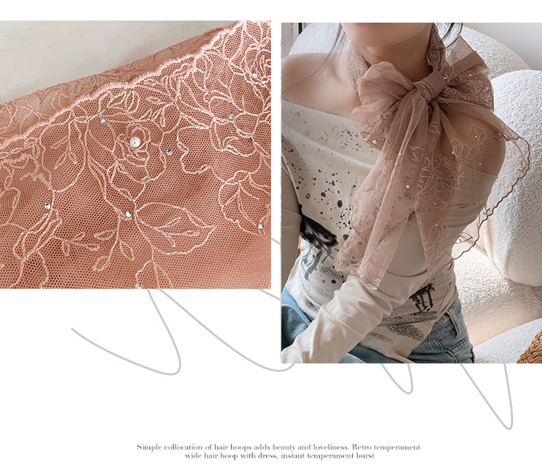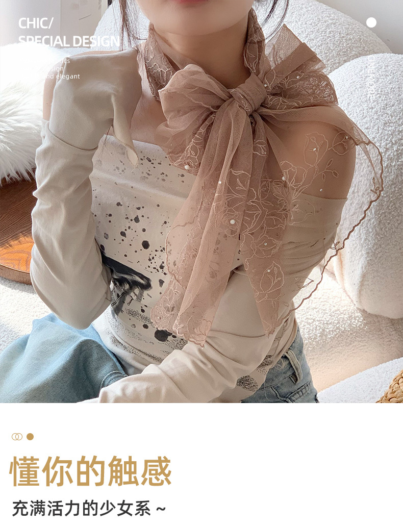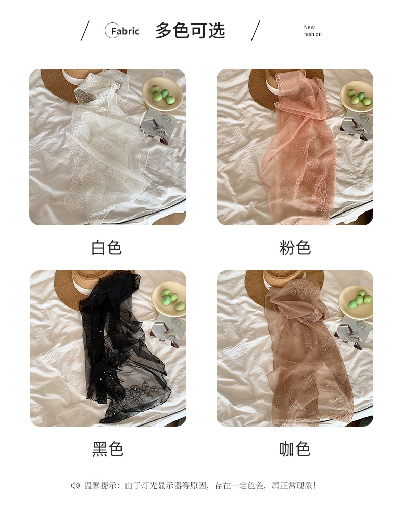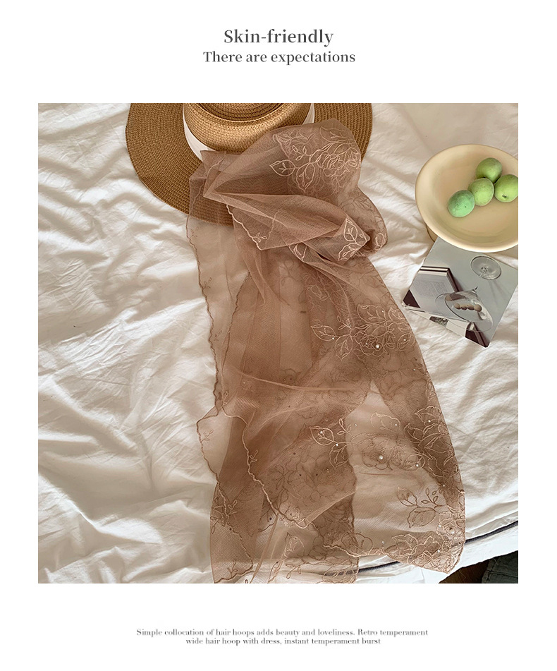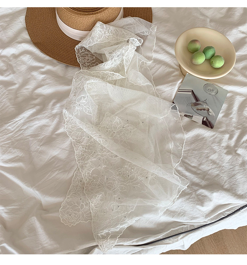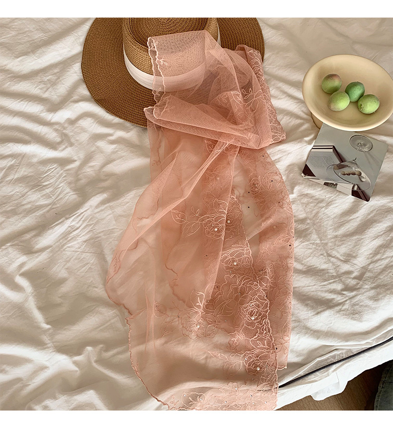 Bufandas de seda de alta calidad primavera y verano encaje clavos perlas bufandas de seda gancho flores bordadas bufandas de diseño