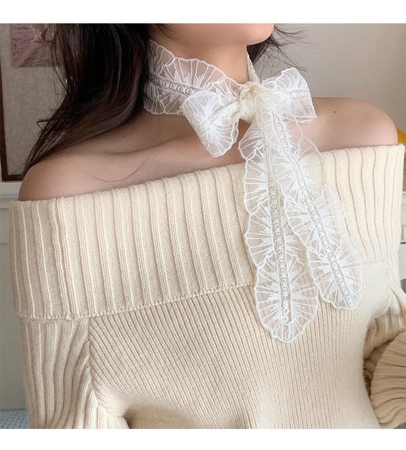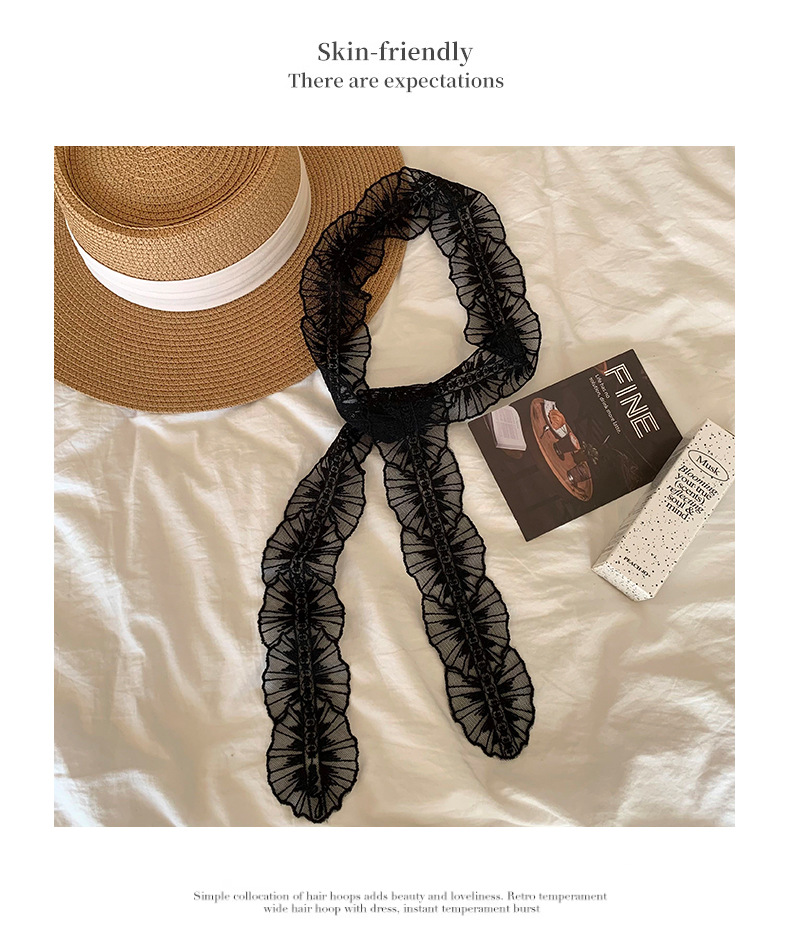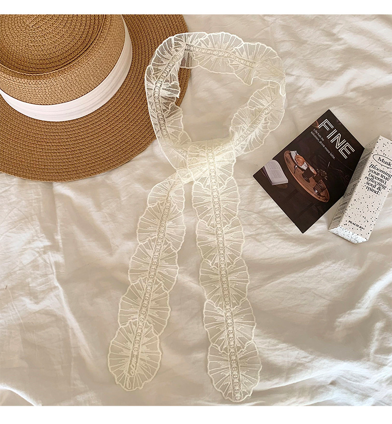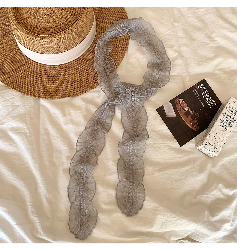 Bufandas de seda de alta calidad coreana bufandas de encaje de encaje de la atmósfera del bosque de la sensación de correa de cabello atado bufandas de seda
