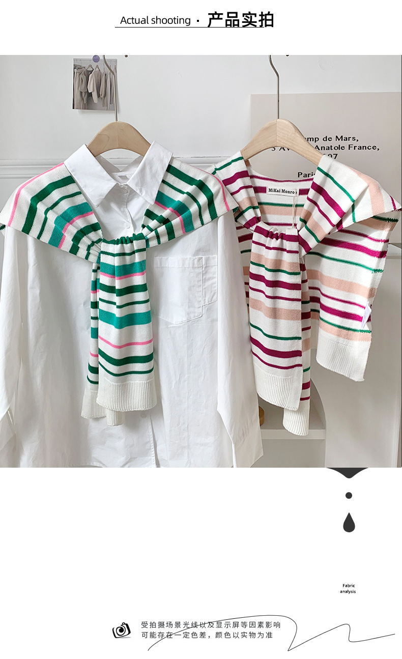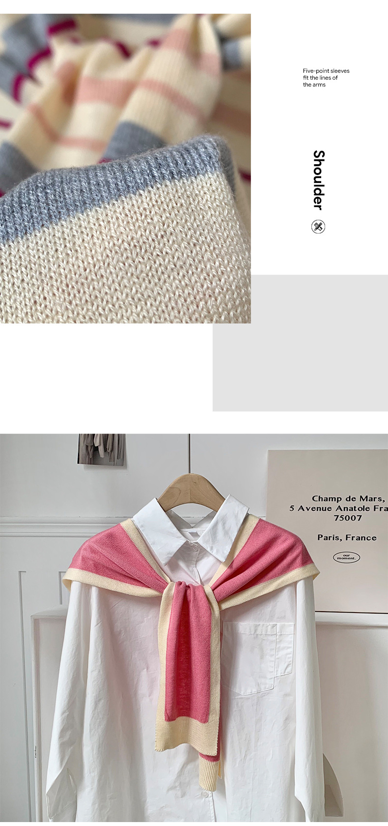 Pequeño chal de punto de primavera, otoño, invierno y verano con falda de red sala de aire acondicionado de moda a rayas de aire exterior
