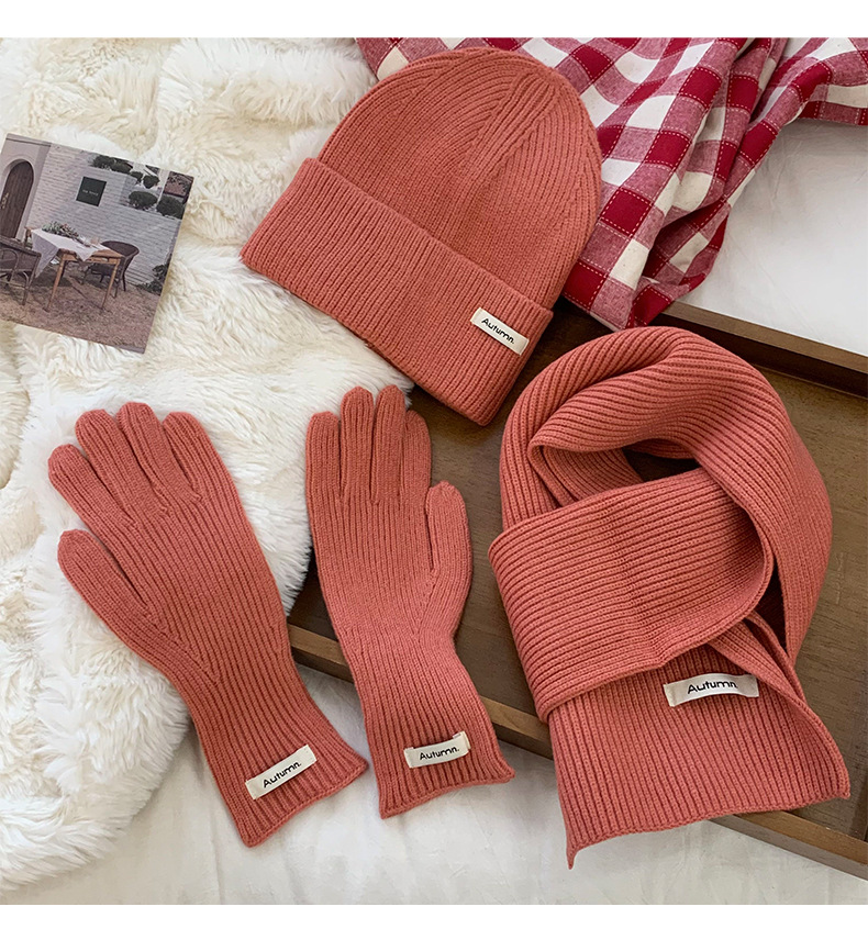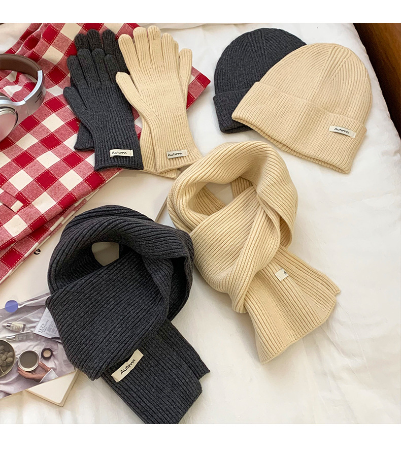 Bufandas guantes de sombrero de tres piezas de invierno nuevas parejas estudiantes de cabina guantes de sombrero bufandas de punto calientes