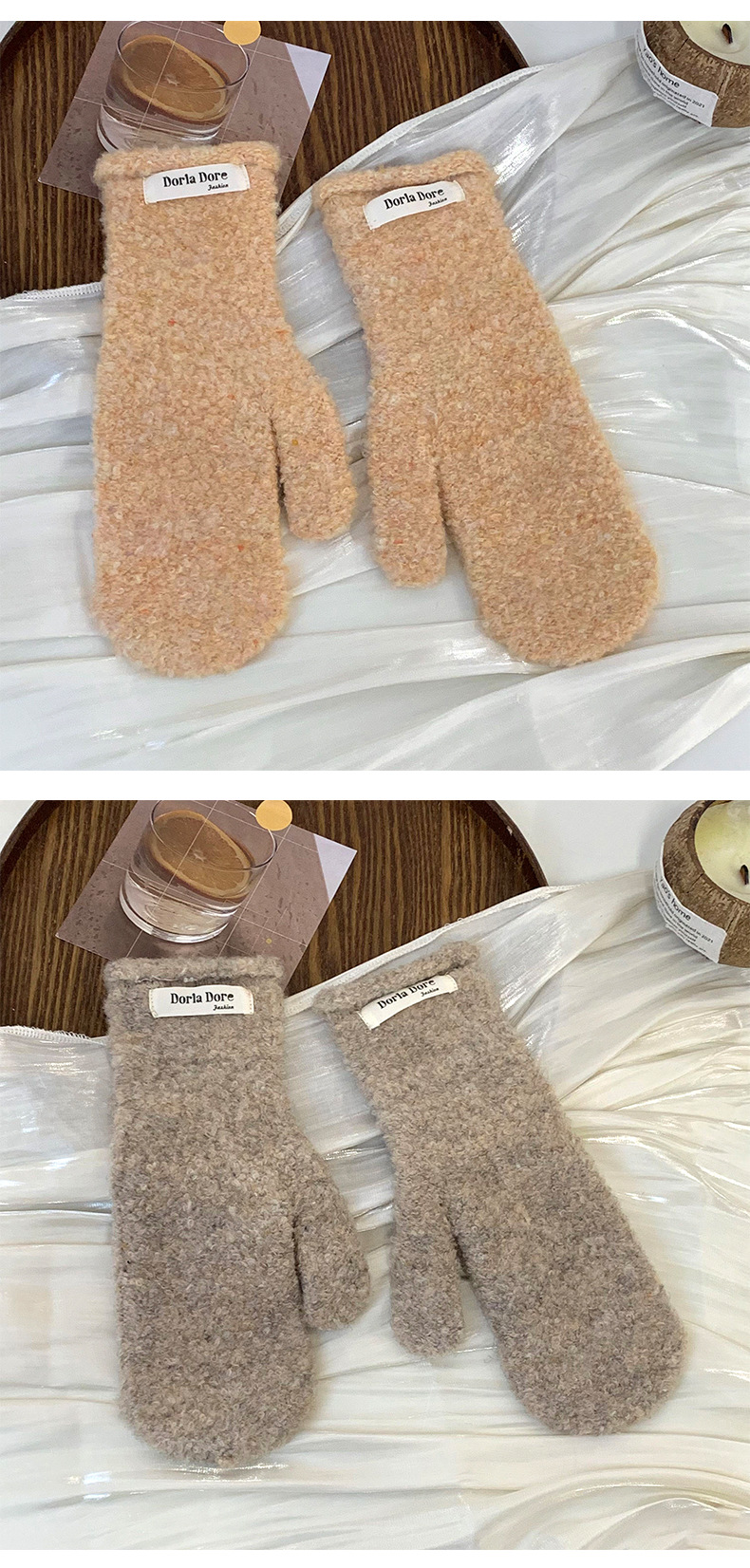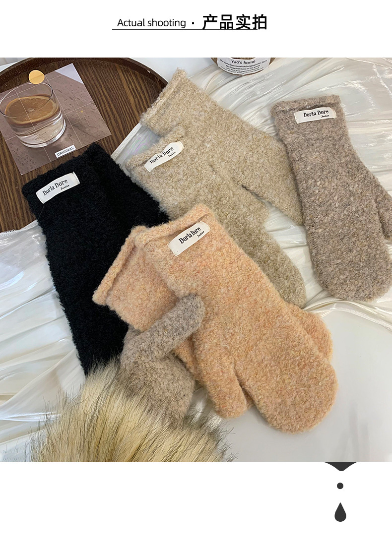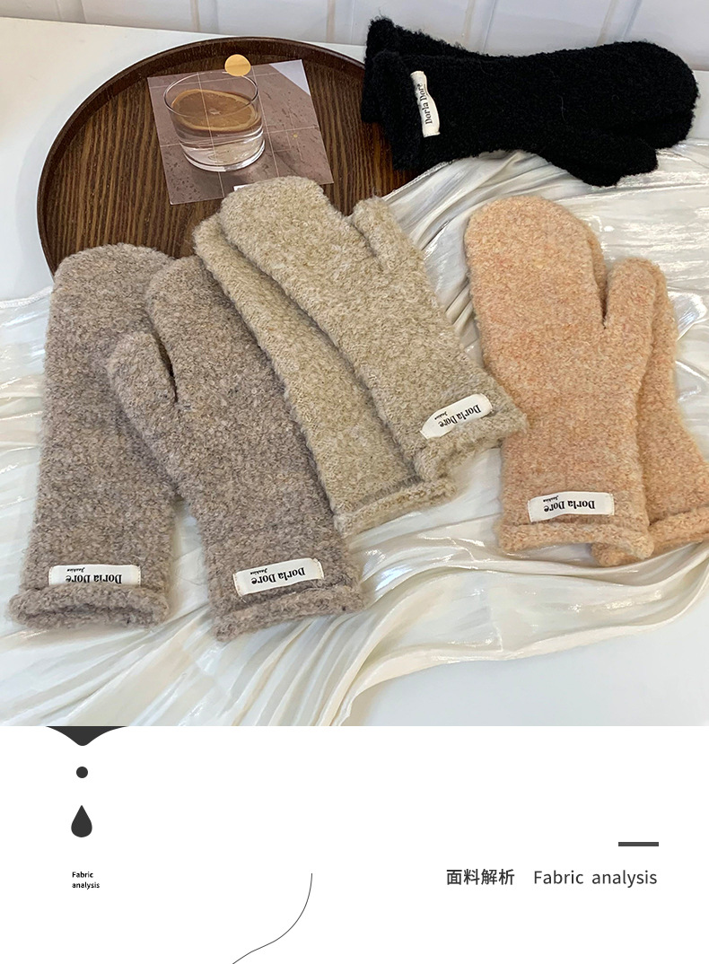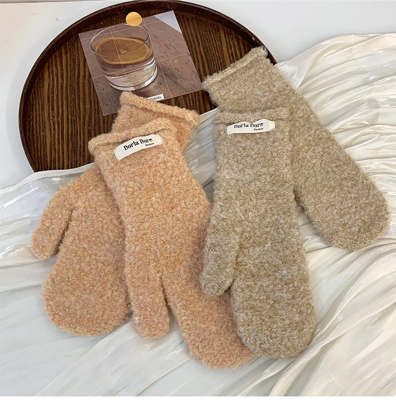 Guantes de dedo de invierno nuevos guantes de peluche cálidos de color sólido personales cómodos de impresión de tejido gruesos